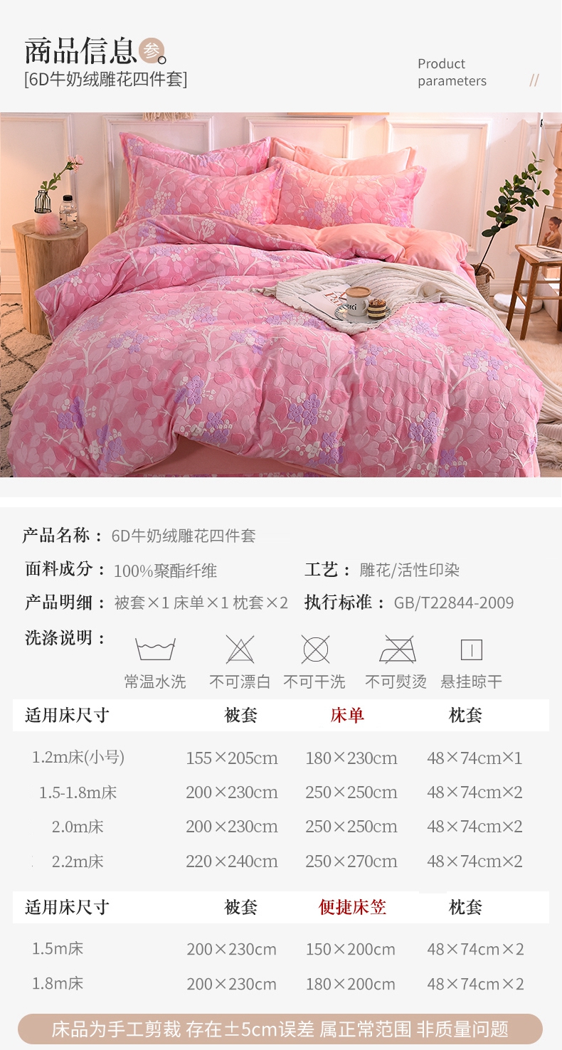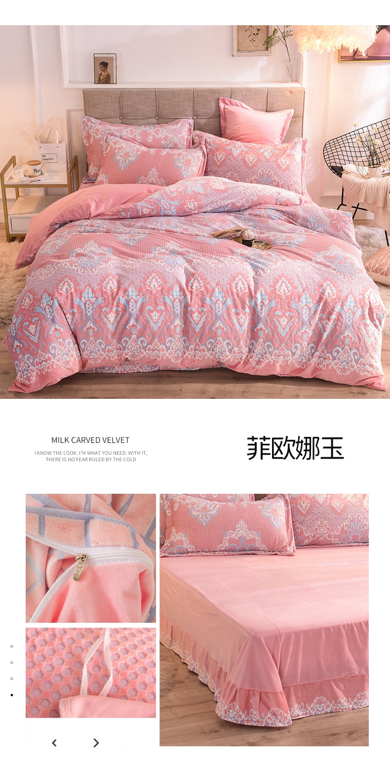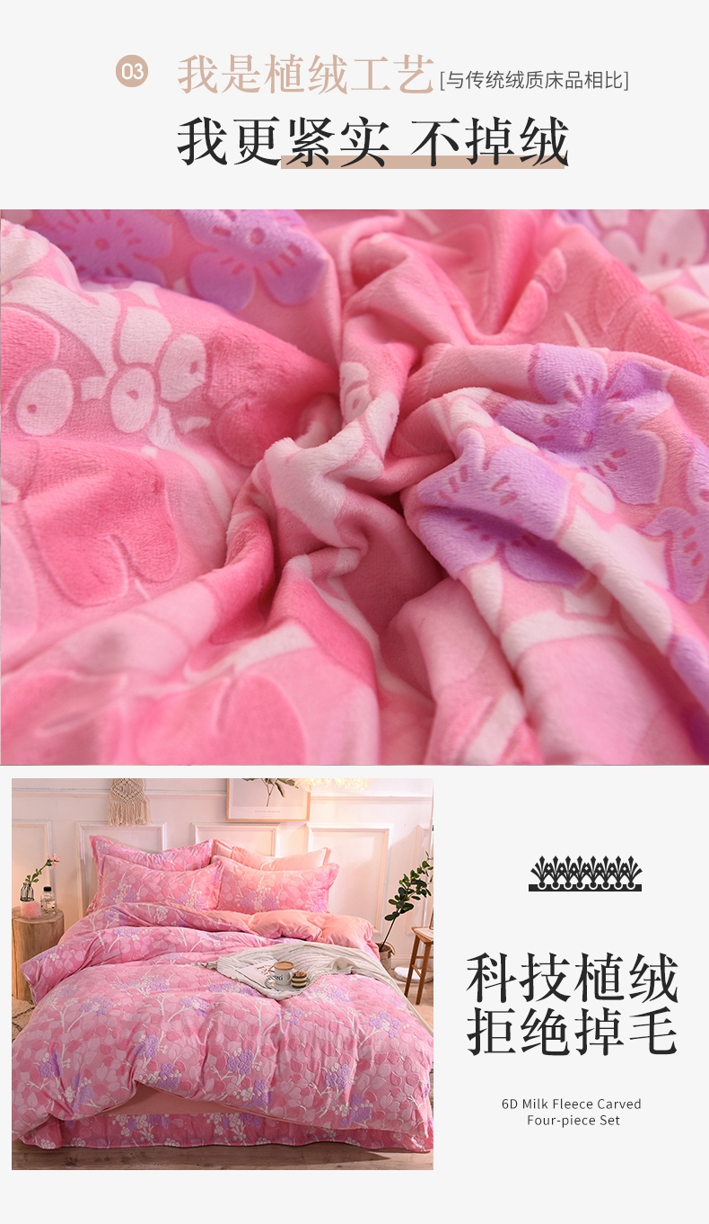 【全尺寸统一价】6D雕花绒四件套加厚保暖,特别是冬天,快准备上6D雕花绒4件套,高颜值,活性印染,细腻做工,优选面料,亲肤透气,享受品质睡眠生活,让你睡得暖和睡得香【赠运费险】