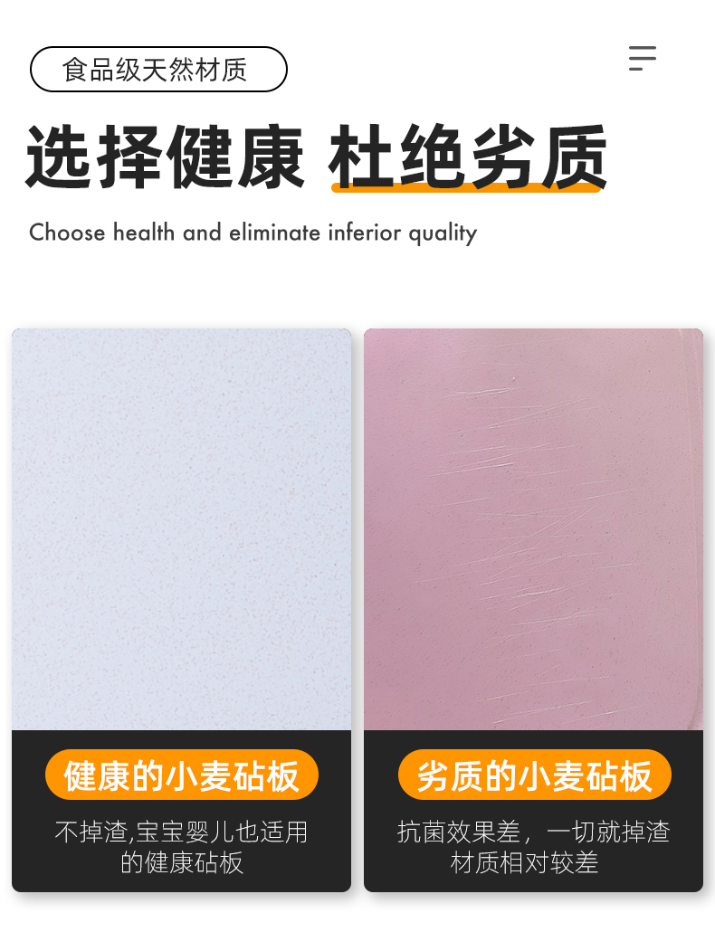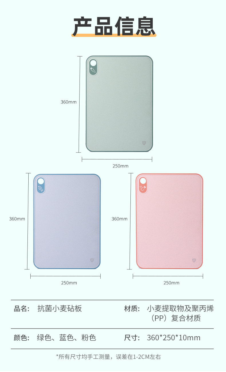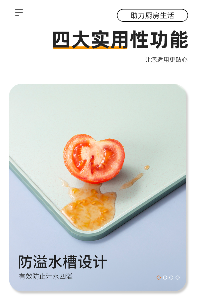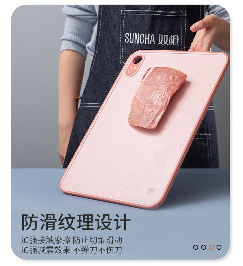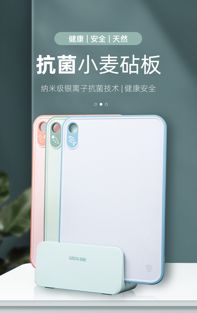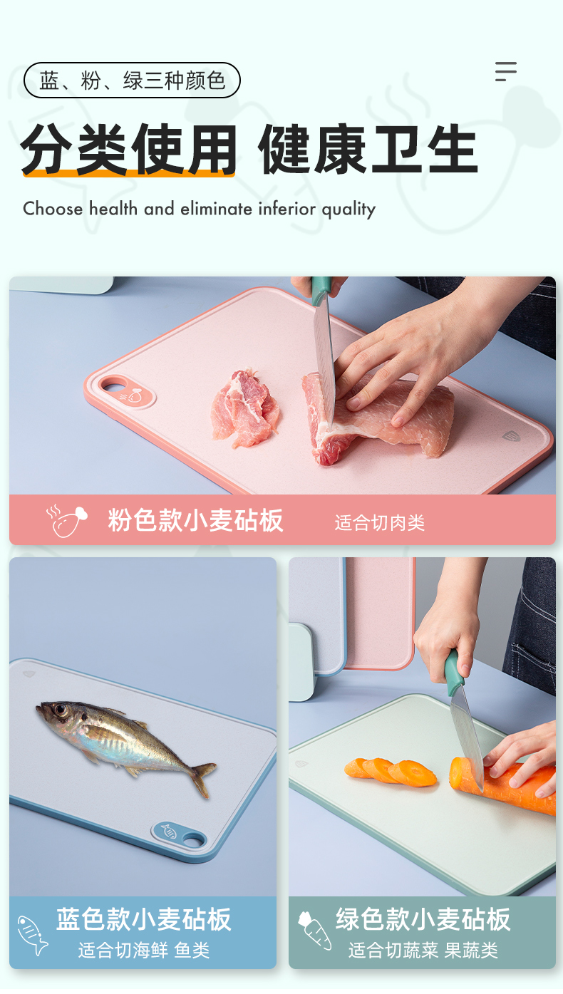 加厚双用砧板,去腥味,不发霉,不开裂。谷物纤维面,防止食物打滑,贴心研磨设计。纳米级银离子抗菌技术,让家人吃的更放心。