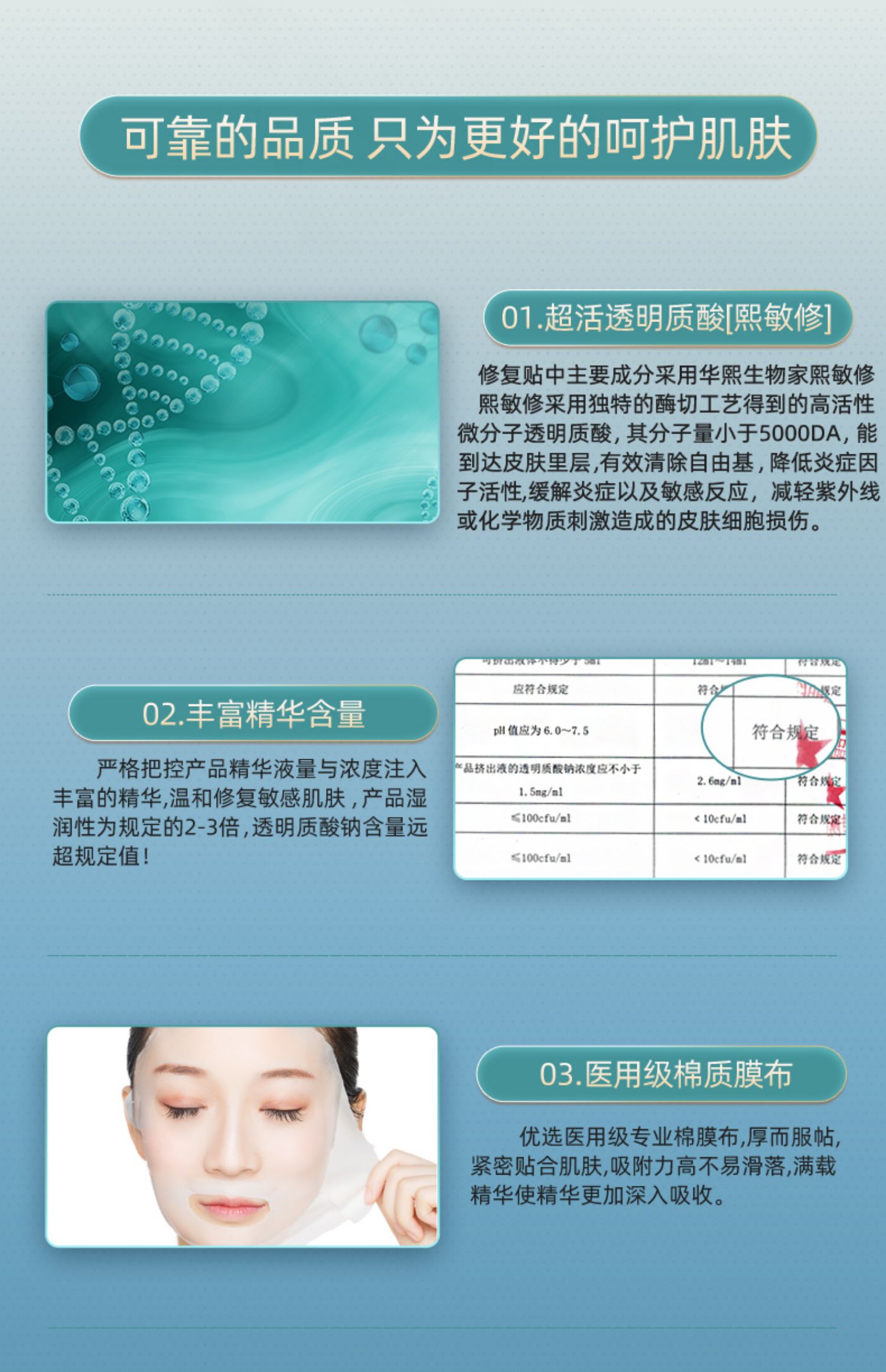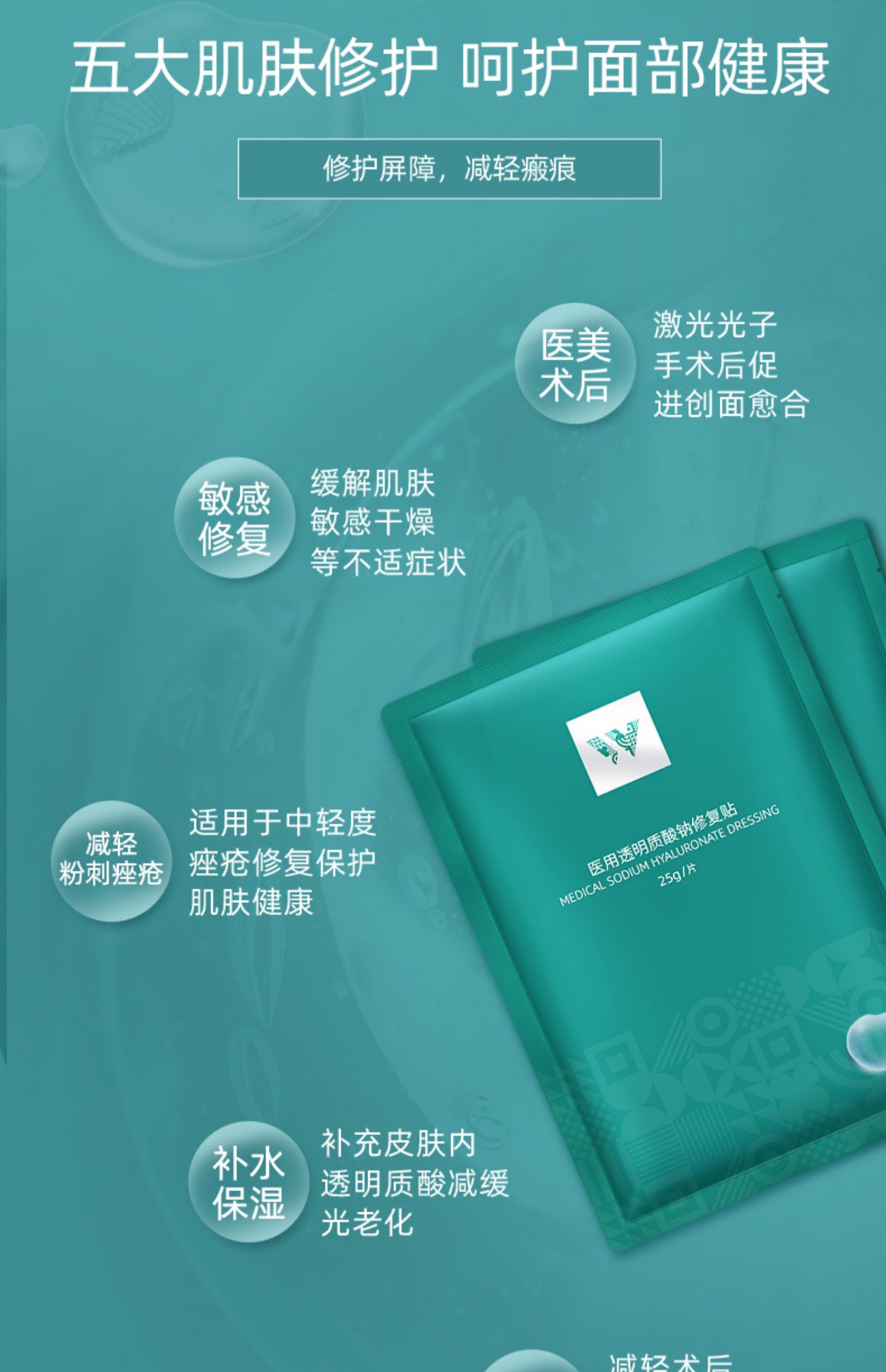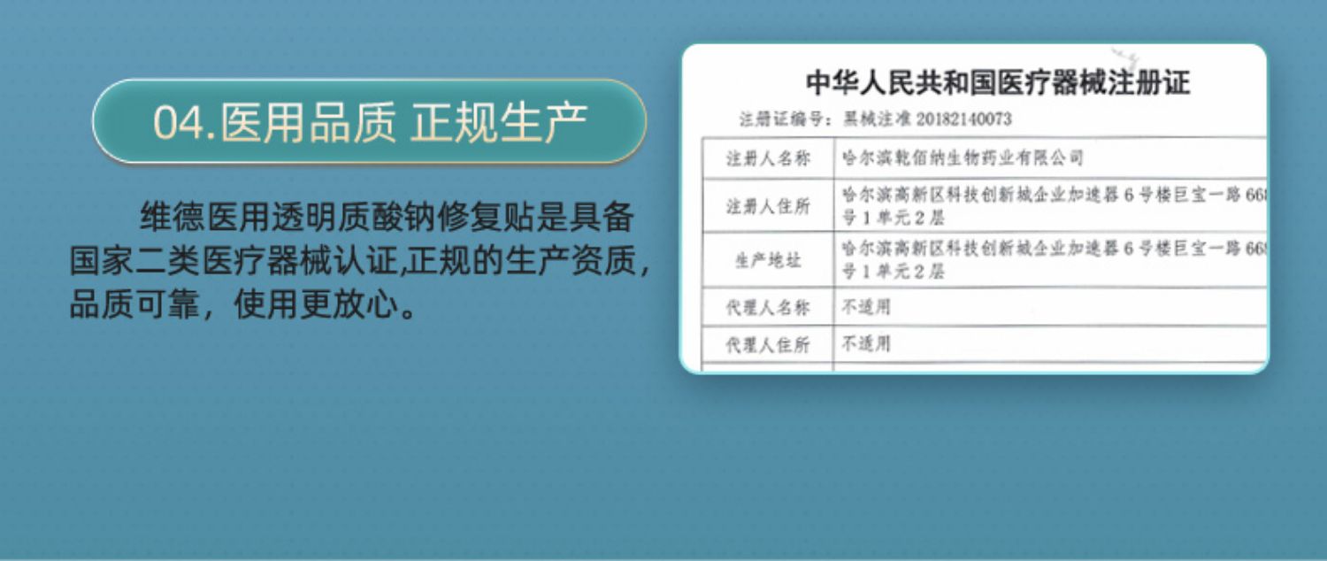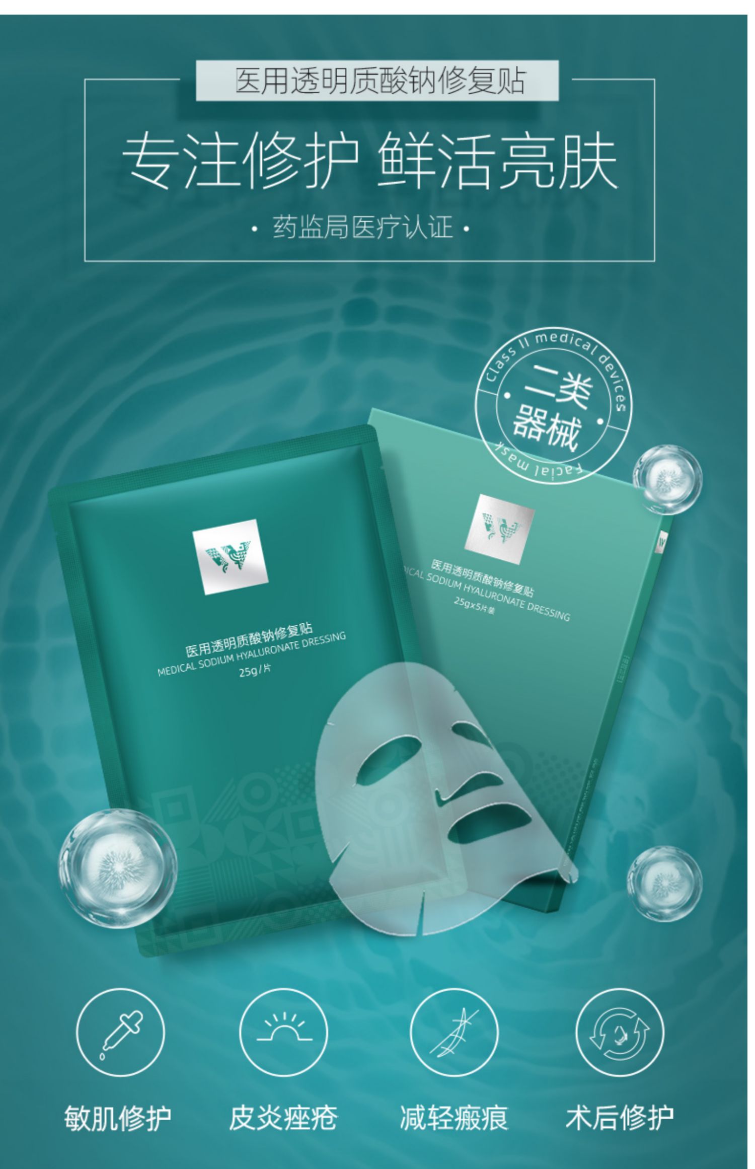 维德医用透明质酸钠修复贴,专注修护,鲜活亮肤,五大肌肤修护,呵护面部健康;药监局医疗认证,二类医疗器械~