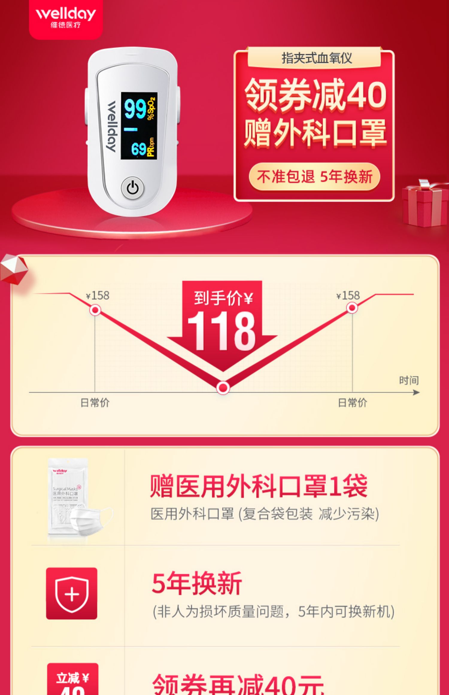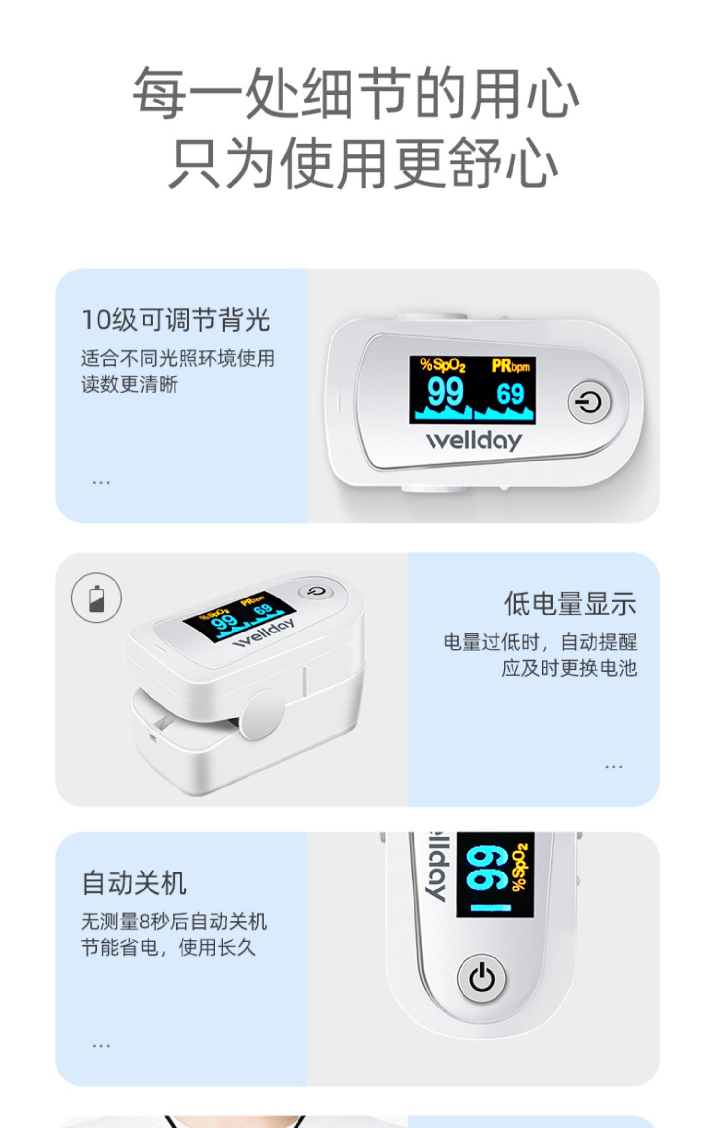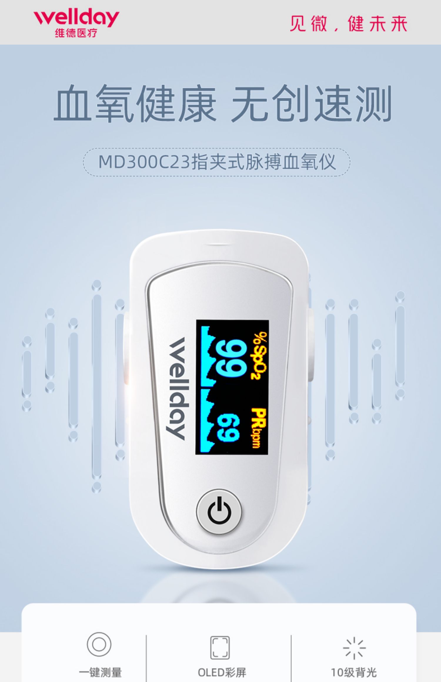 【赠电池2节+口罩10只!】维德医疗,医院院同款指甲式脉搏血氧仪,简单易用,准确测量,小巧便携,时刻关注血氧饱和度和心率!【赠送运费险】
