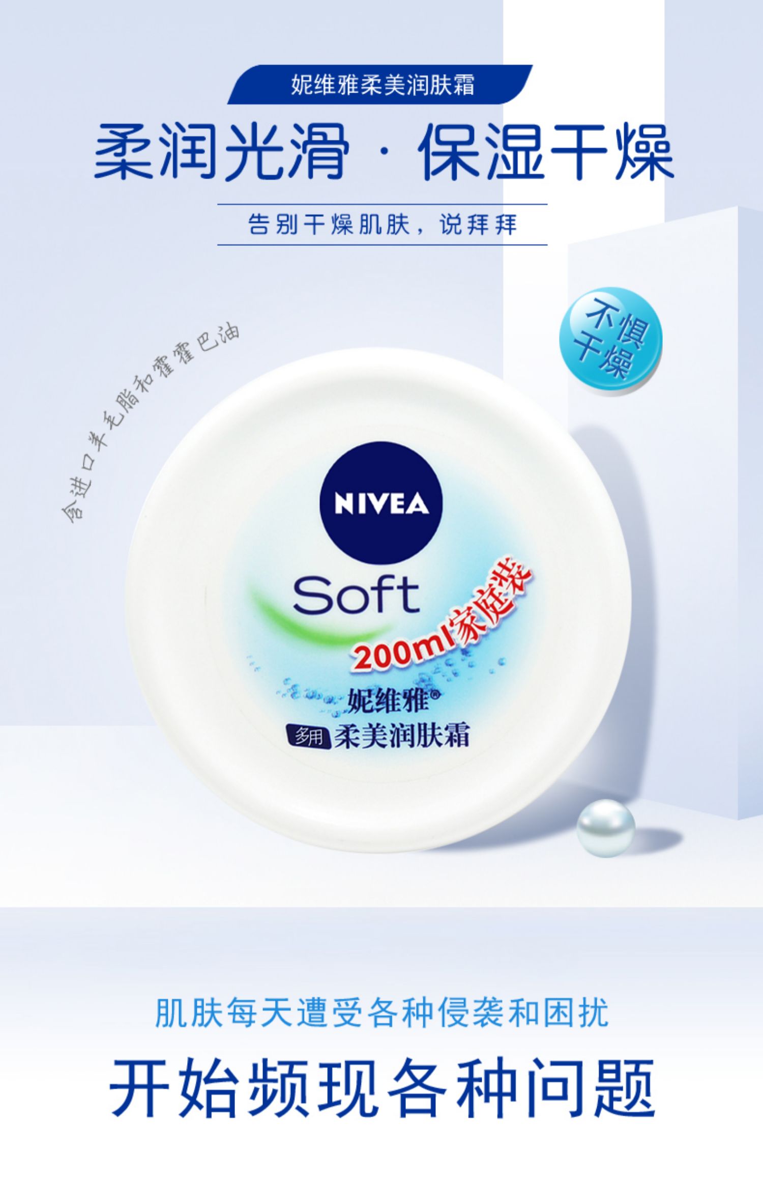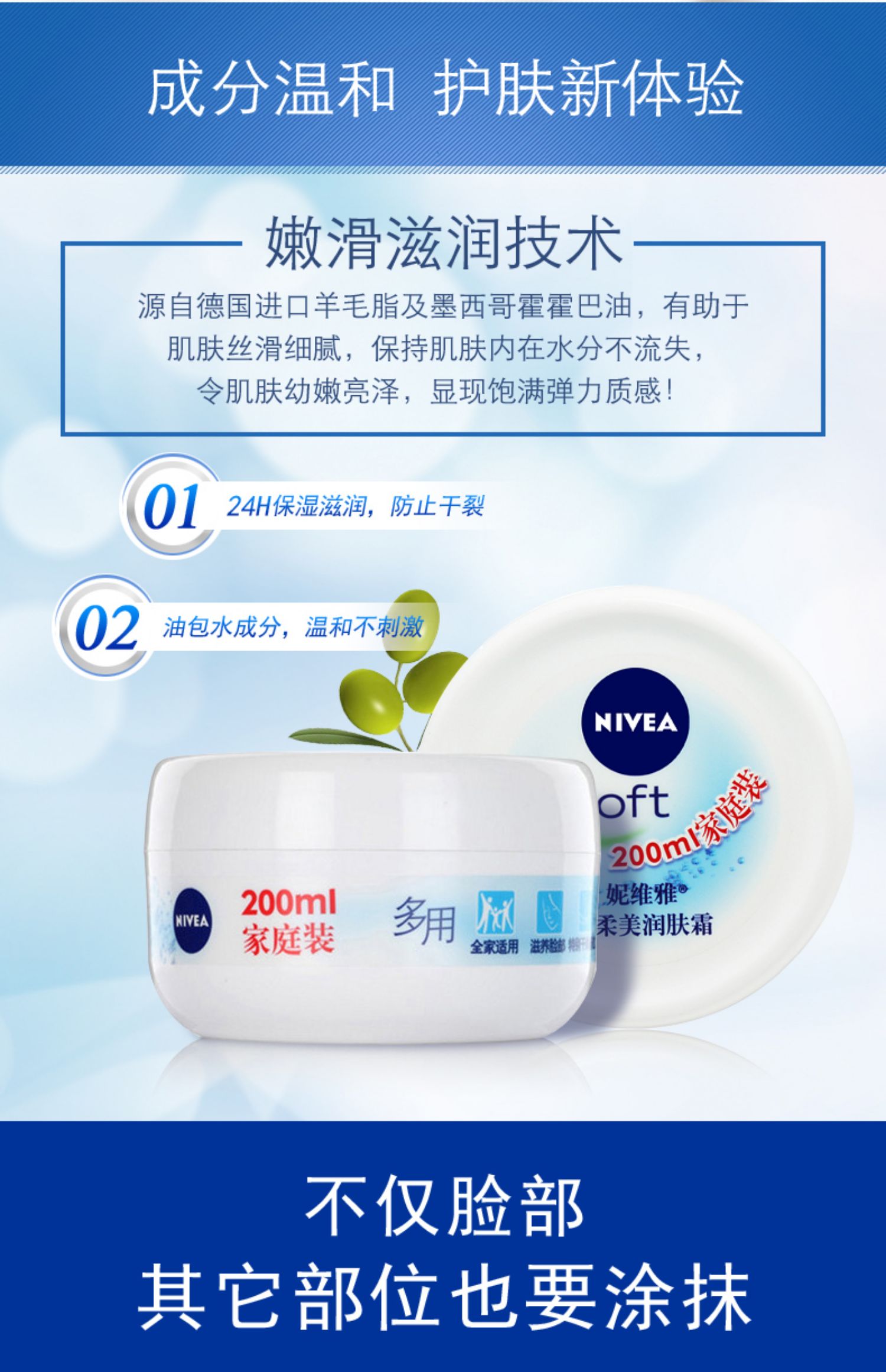 【妮维雅】柔美绵羊油,保湿补水,多重呵护,温和滋养,长效保湿,一瓶多重效果,全家适用,200ml家庭加量装!