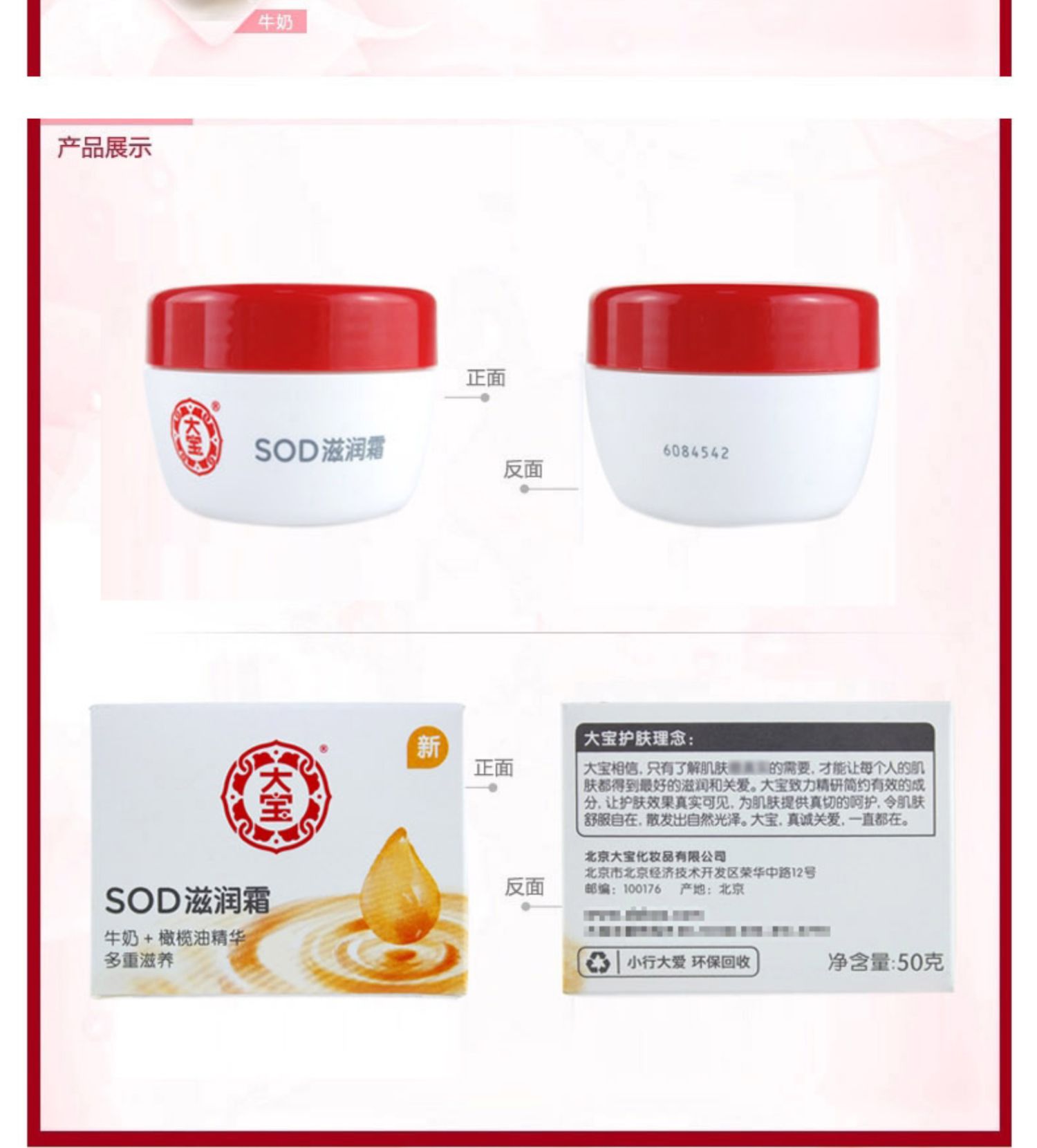 大宝SOD滋润霜,添加润肤成分橄榄油和牛奶精华,富含保湿锁水和多种营养成分。滋润不油腻,容易吸收,能在肌肤表面形在锁水保护膜,男女老少全家适用!