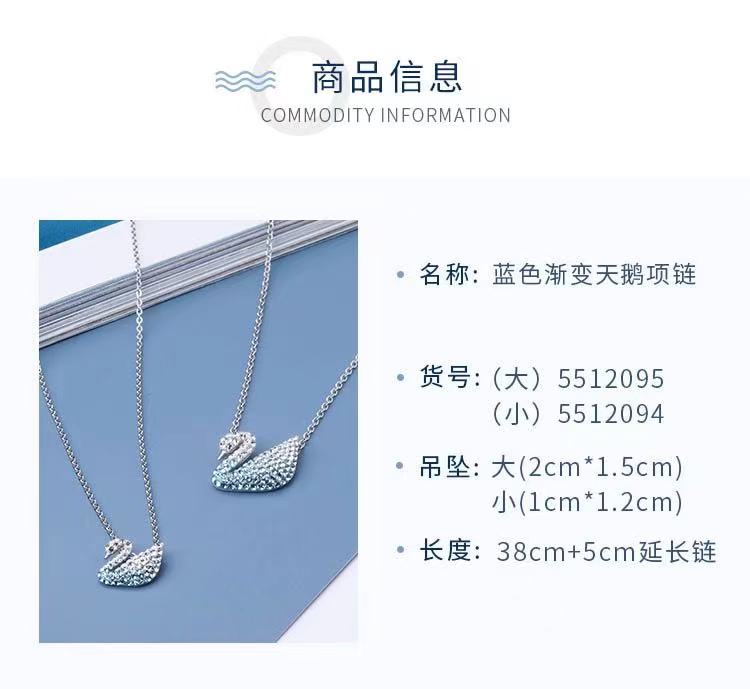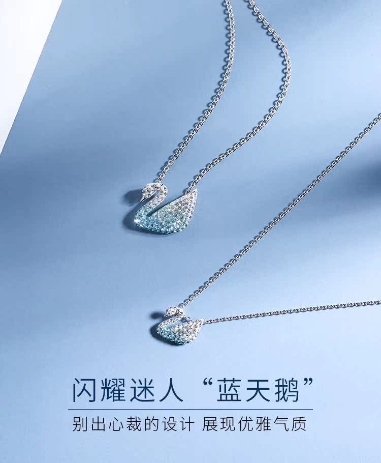 迷人独立的象征,也代表着忠贞不渝的爱情和一生只爱一人的执着。这款闪耀的渐变蓝天鹅链坠,为您的日间装扮,注入璀璨悦目点缀。
