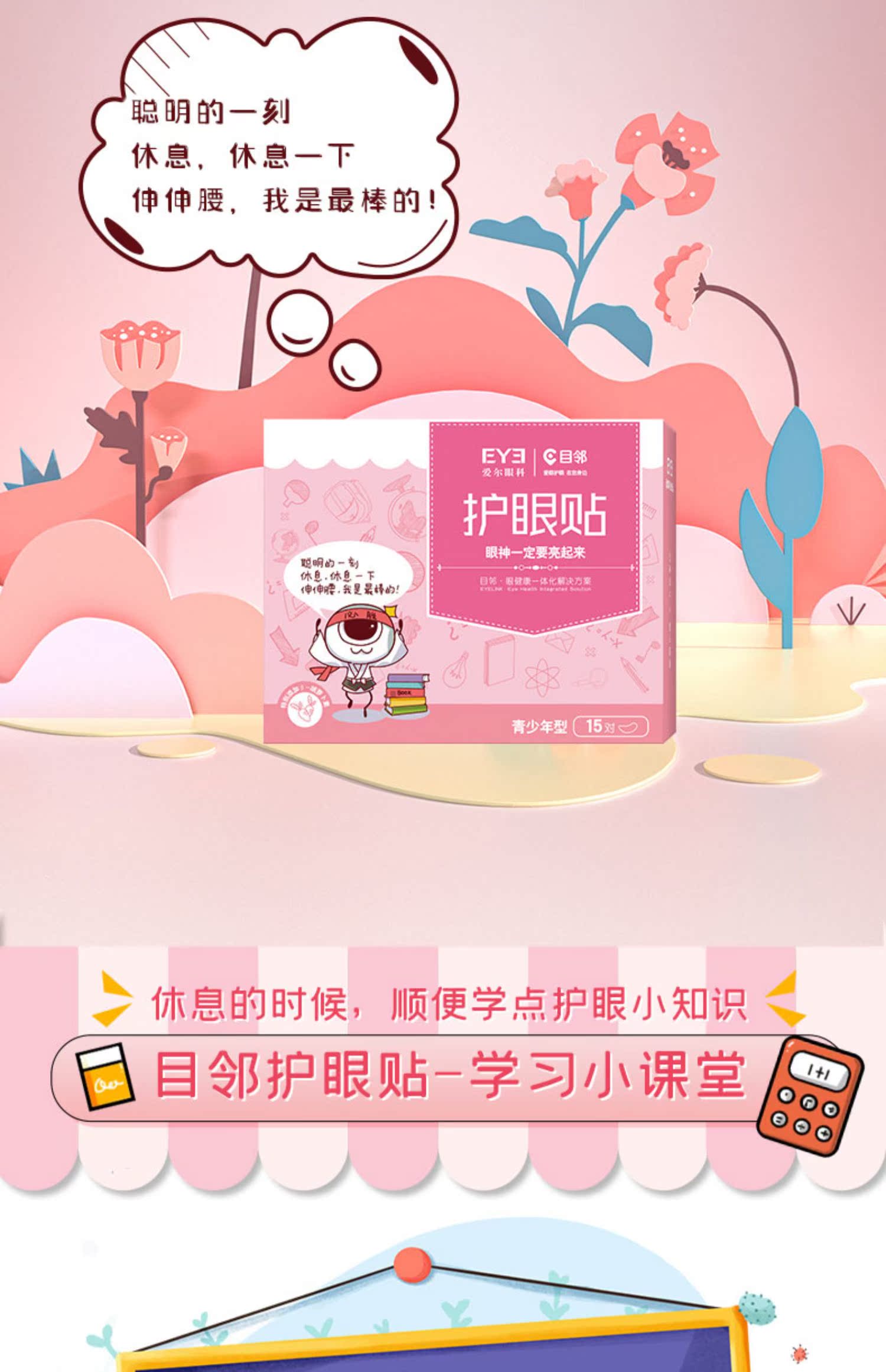 目邻护眼贴,国内眼科上市公司爱尔眼科出品!中药护眼成分,科学配方,植萃滋养,有效缓解疲劳,保护视力。独立小包装,随时随地给眼睛充值,还你迷人水润大双眼~【正品保证】