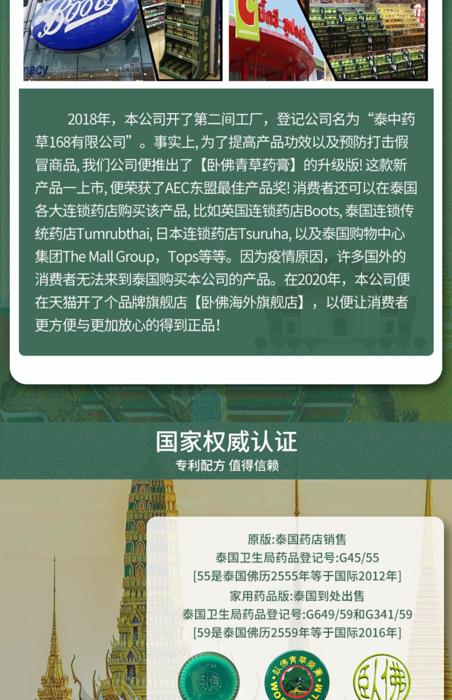 泰国卧佛牌青草膏正品50*3+20g ❤【券后价】50元 快速止痒轻松舒肿,蚊虫叮咬,中暑晕车,舒缓铁打受损,提神醒脑,头晕脑闷,缓解烫伤灼热气味清香不刺鼻,居家和旅行必备,大人小孩皆可用!