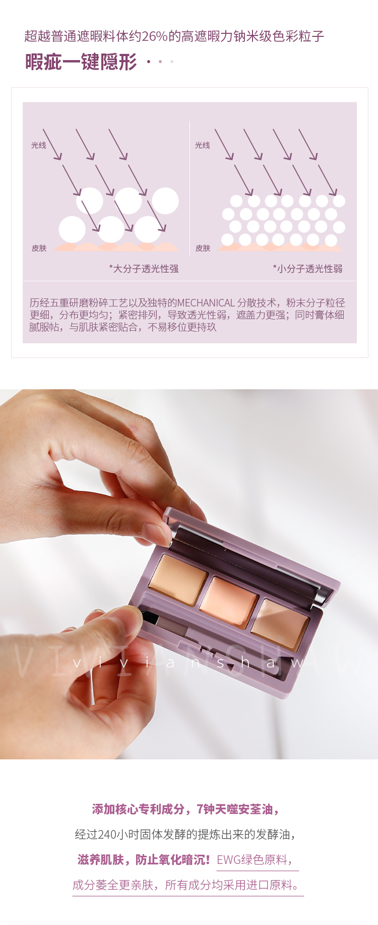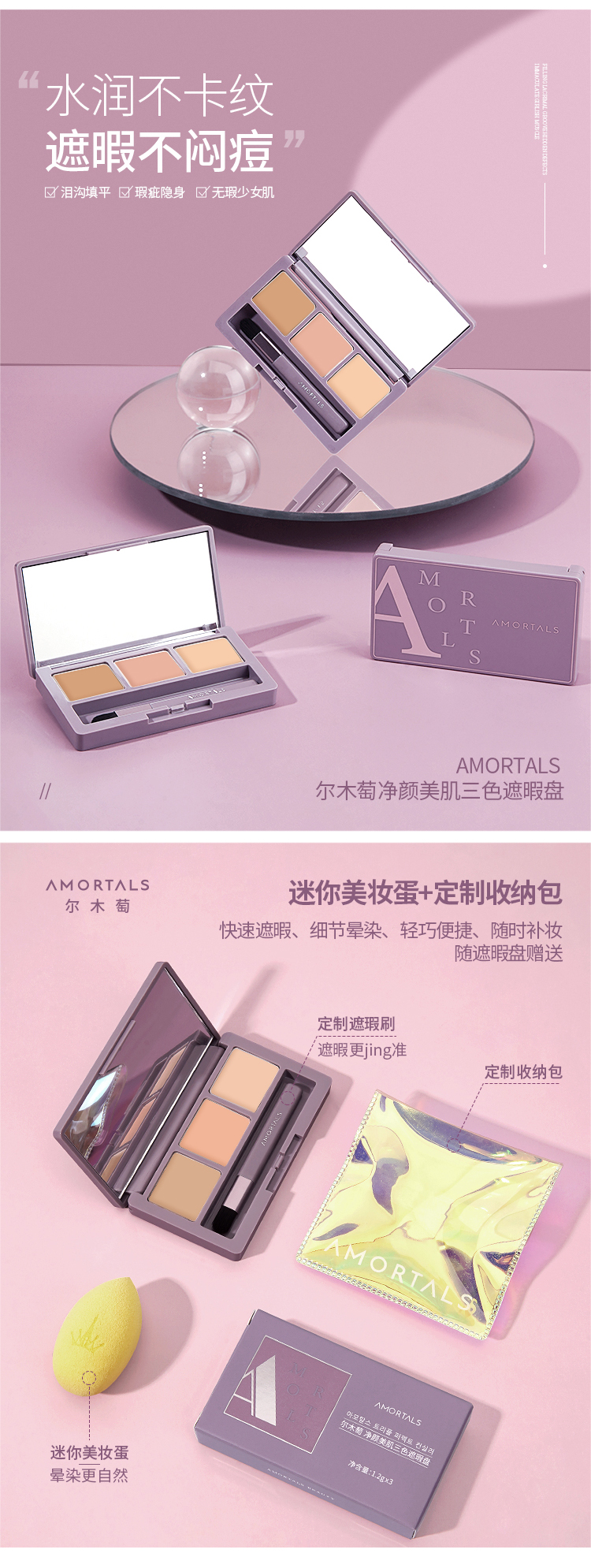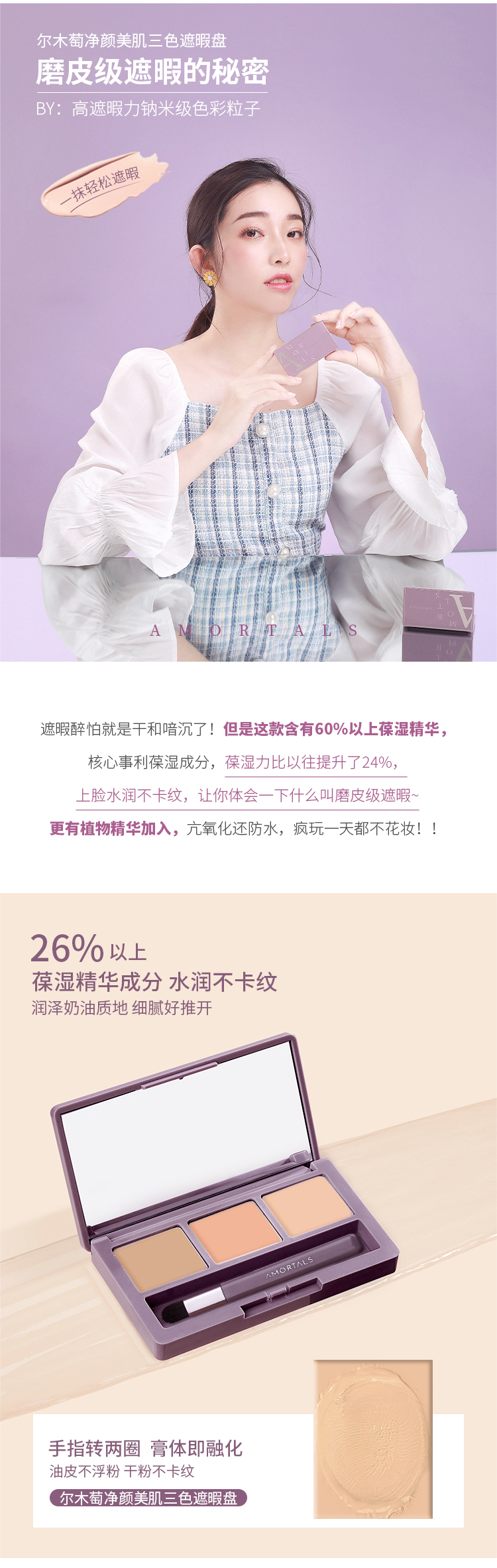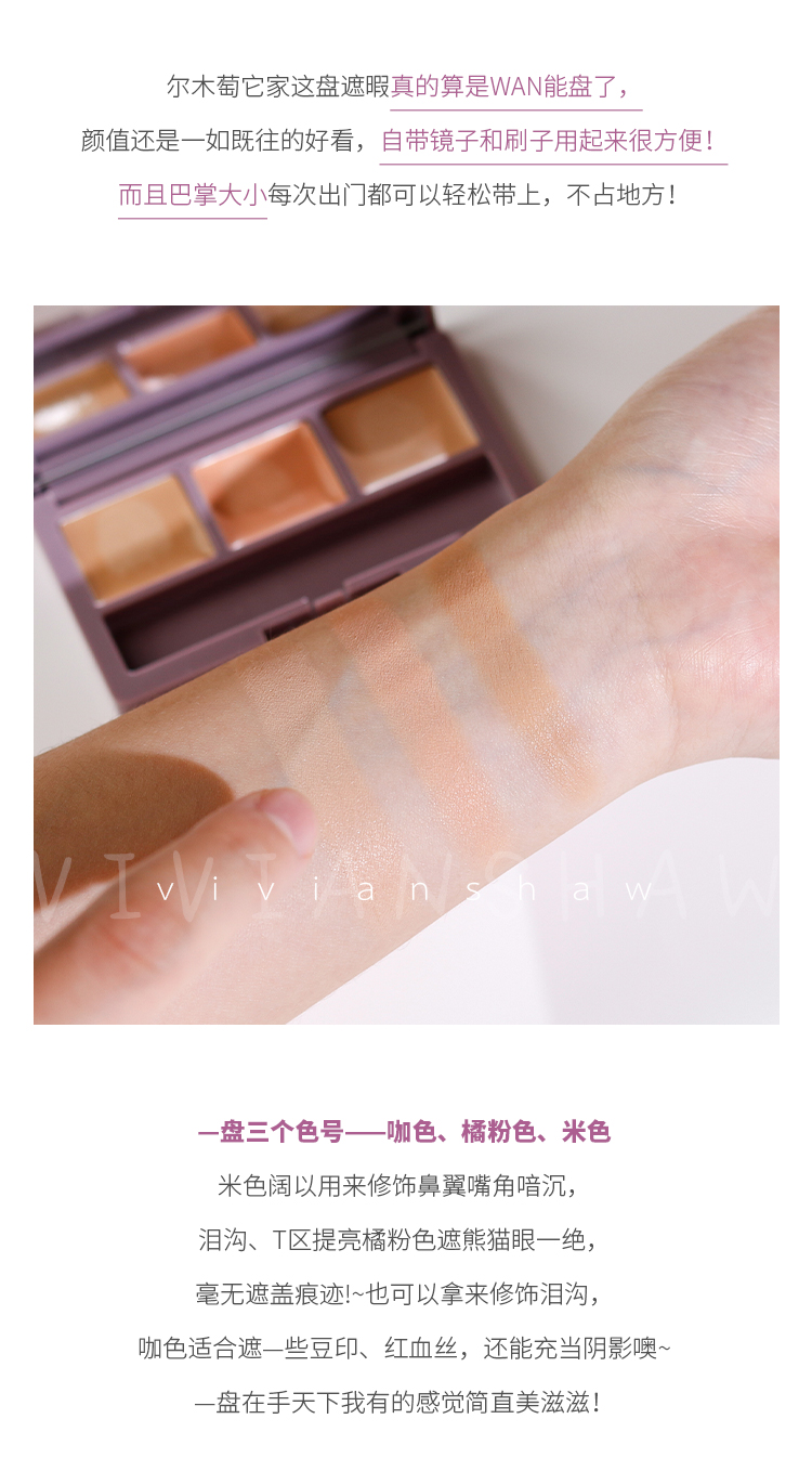 尔木萄三色遮瑕膏巨遮暇液,水润不卡纹,遮瑕不闷痘,一盘多用。