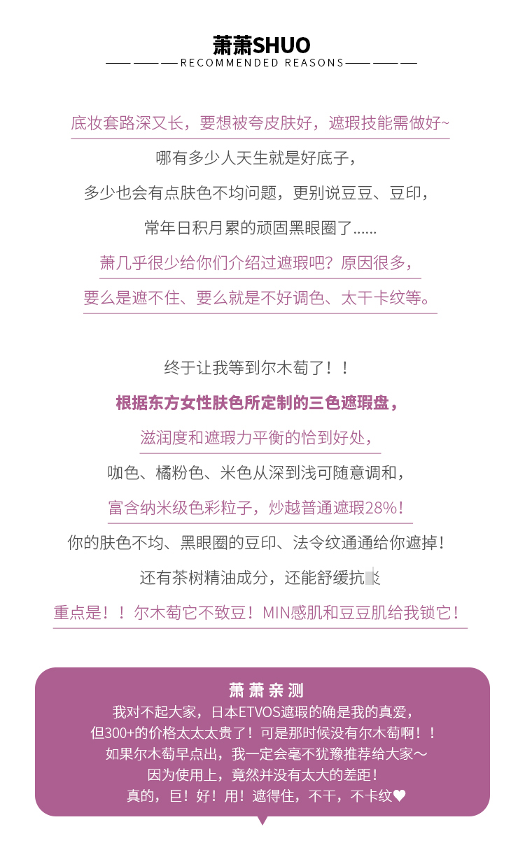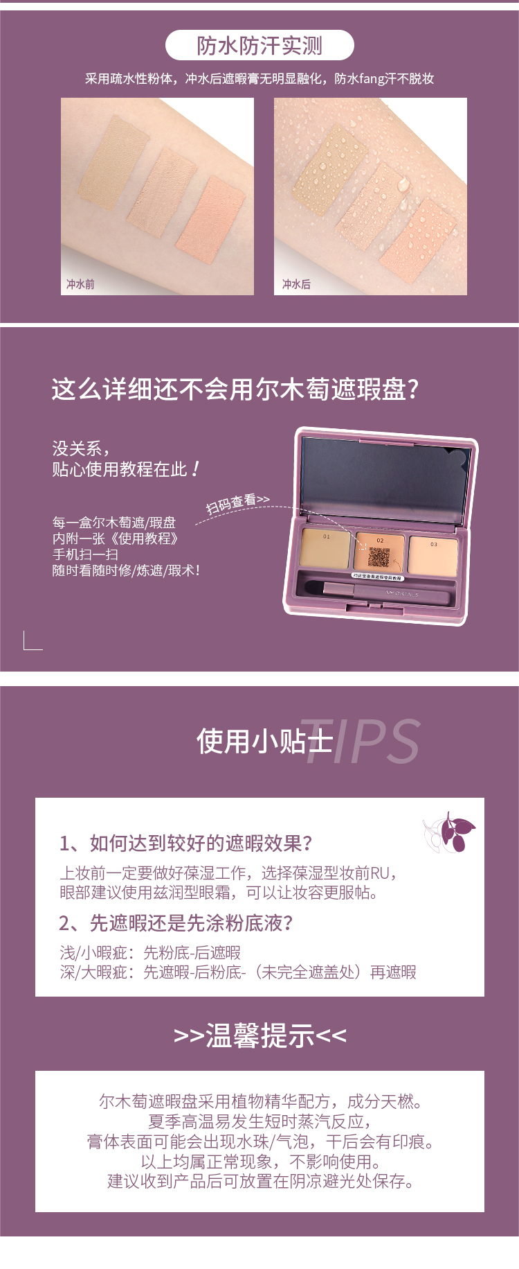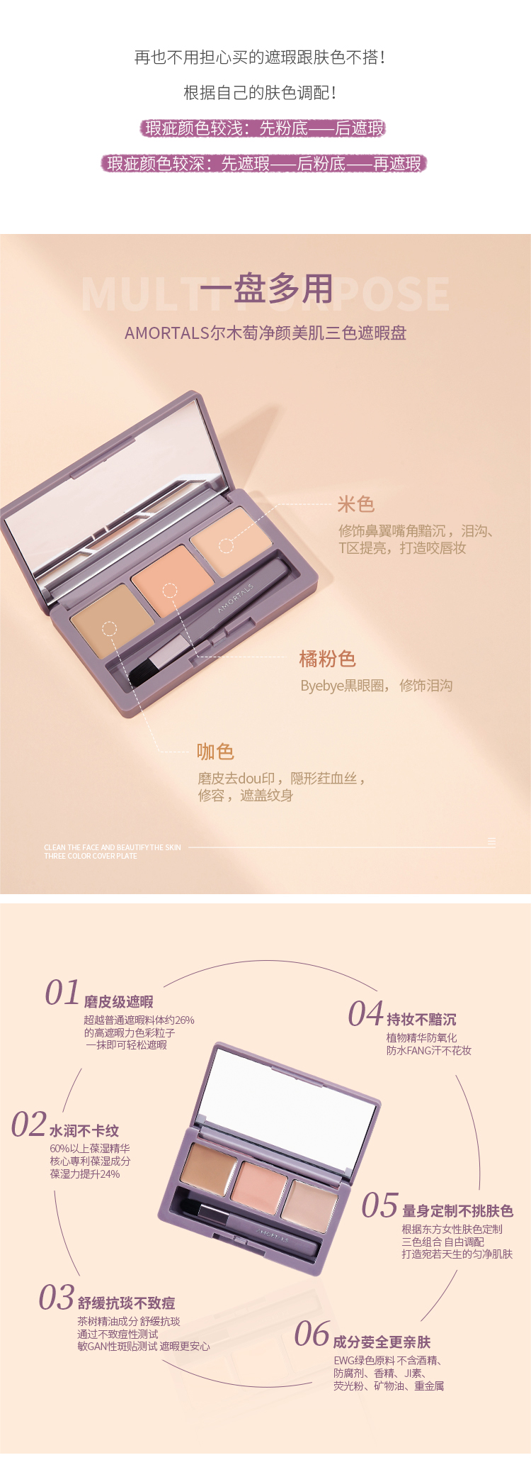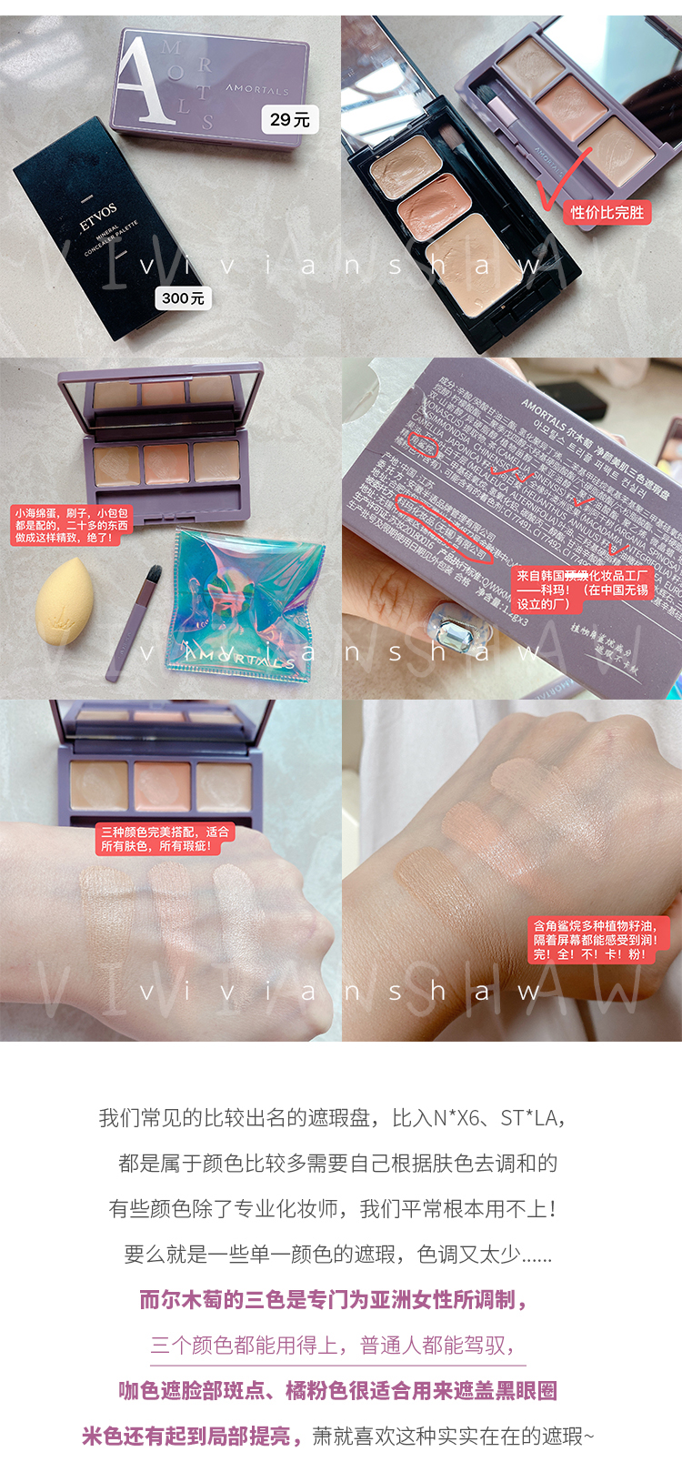 尔木萄三色遮瑕膏巨遮暇液,水润不卡纹,遮瑕不闷痘,一盘多用。