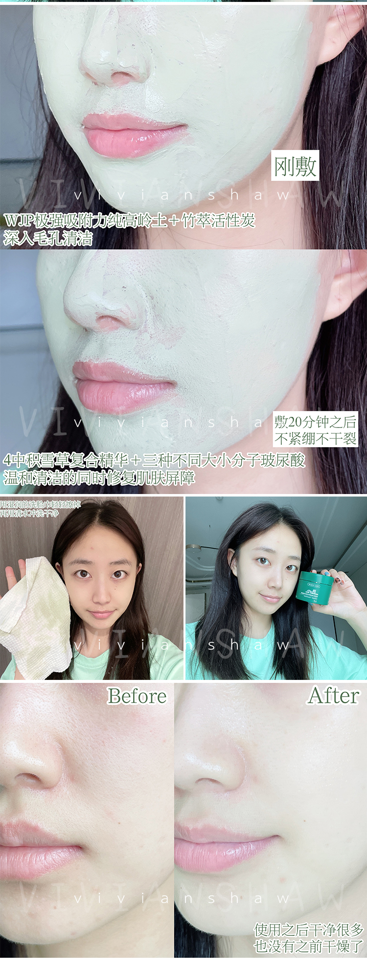 富含积雪草天然精华,温和舒缓,修复肌肤,绿茶粉成分,肌肤敷后不紧绷,深层清洁去角质,和泥垢肌肤说拜拜~