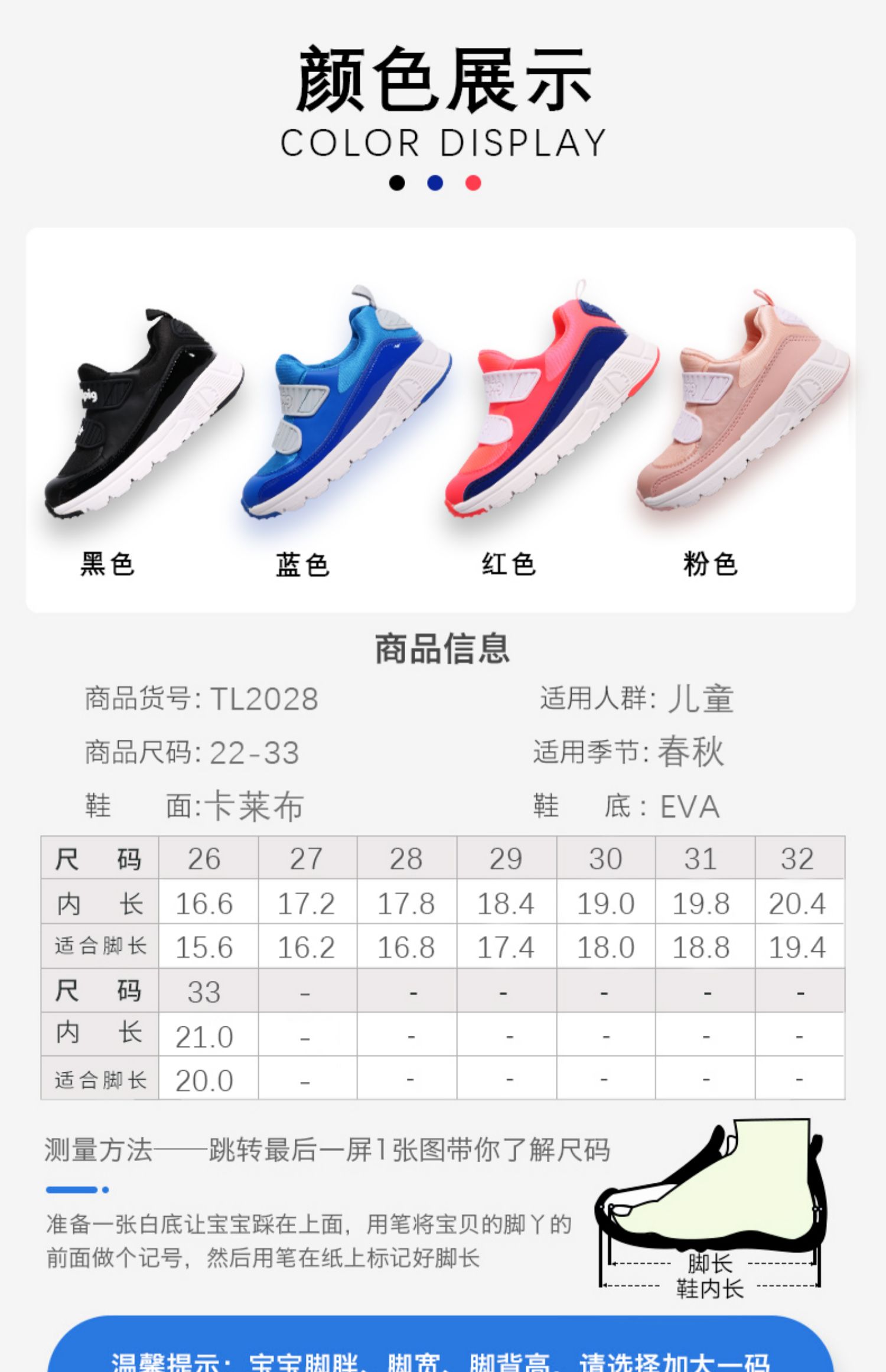 【赠运费险】秋冬新品,加绒里,保暖性能佳,让宝宝肆意玩转冬天,活性炭鞋垫,净化空气,预防发霉,防滑设计、柔软耐磨,一脚蹬穿脱方便,妈妈更省心,网布鞋面,轻盈透气,给宝贝带来舒适的脚感。