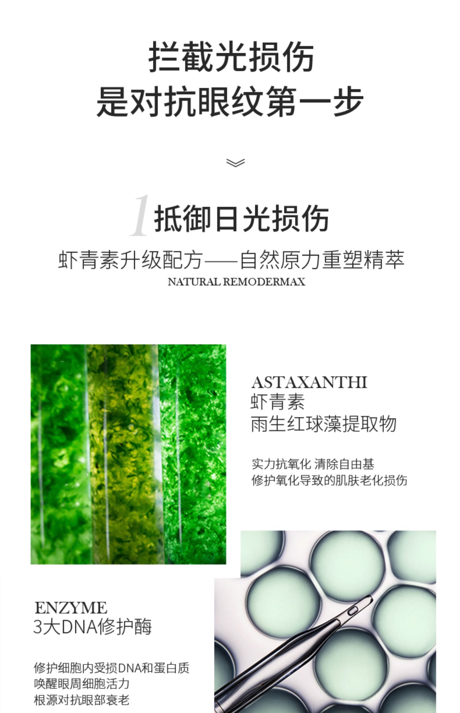 【全方位提速淡纹】虾青素升级配方。实力抗氧化抵御日光损伤,3大DNA修护酶唤醒眼周细胞活力~独特亲肤咖喱质地,一抹即化,瞬时吸收!质地清爽不油腻,不易产生脂肪粒【送运费险】