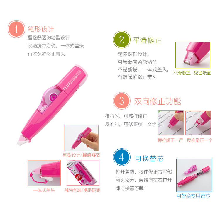 实惠装修改带,韩国创意男初中生女可爱少女心图改正改字带,学习文具小型,多色通用替芯五只装,型号齐全,更加优惠