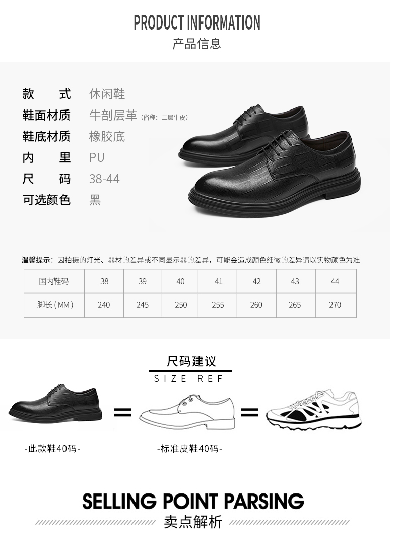 舒适商务休闲皮鞋,每个成功的男士都需要一双.简约休闲鞋,经典耐看更好诠释休休闲格调,真皮选材,匠心制作、皮质质感超高大尚.橡胶鞋底防滑超耐磨,行走自如.【退货运费险】【七天无理由退换】
