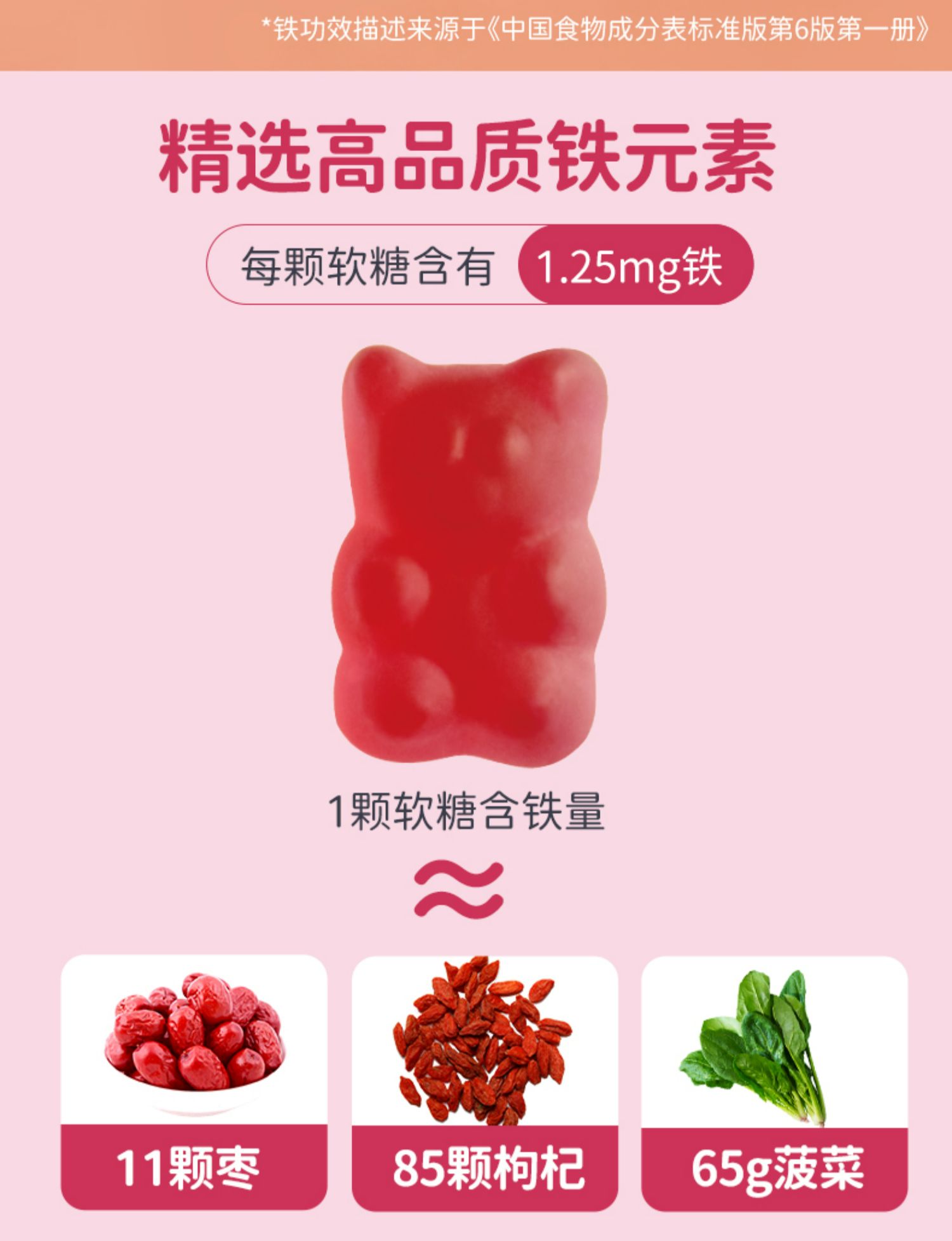 【李佳琦推荐品牌,2件8.5折】元气补给系列,0糖0负担,无添加,补充铁、叶黄素酯、维生素C满足日常基础营养需求,软萌小熊造型,软糯弹韧口感让人爱不释口!