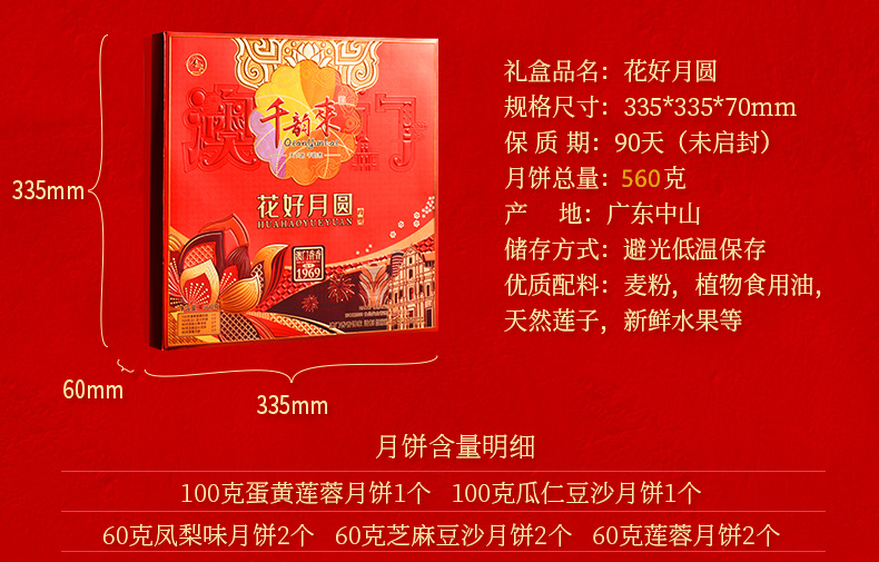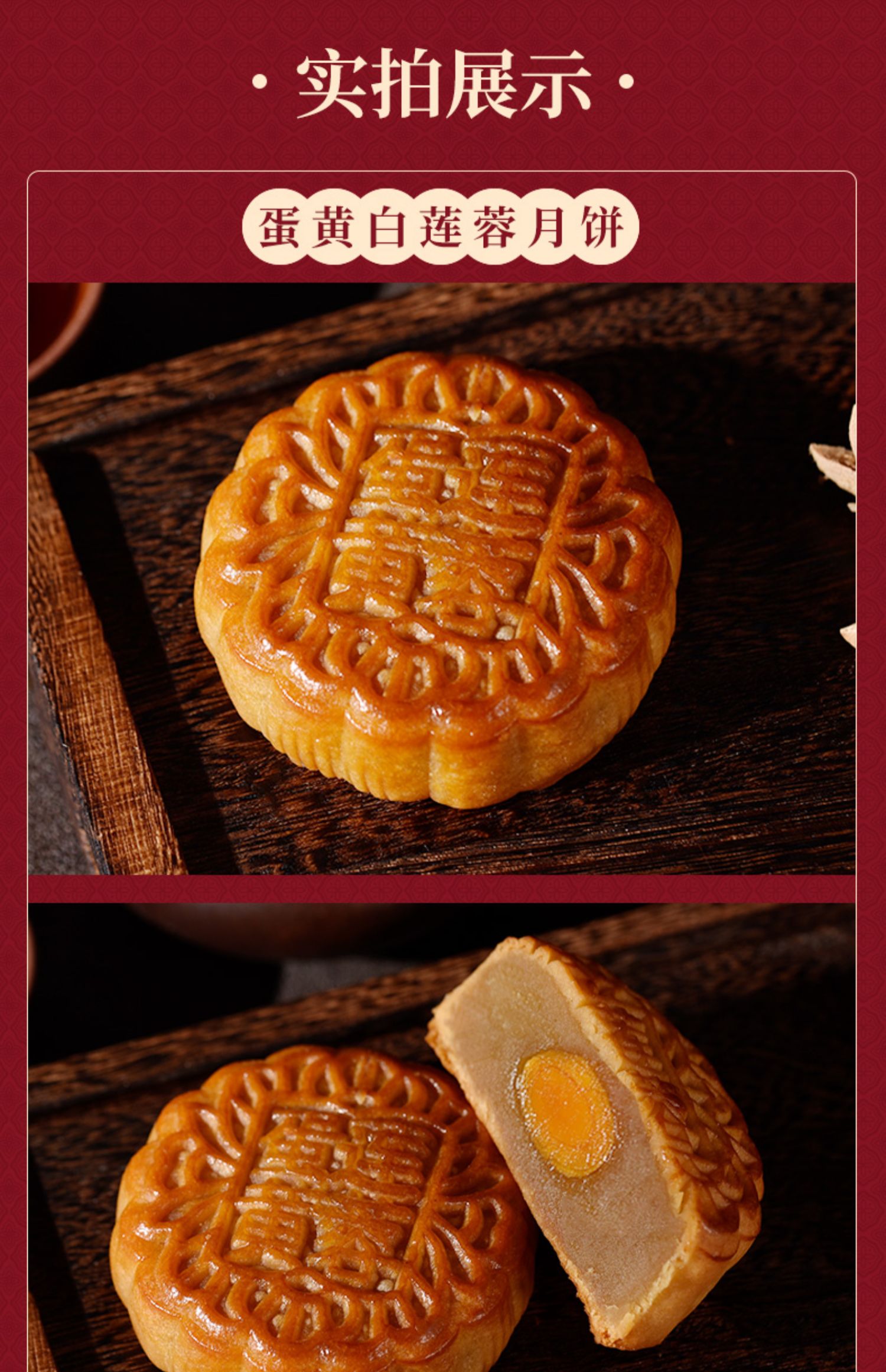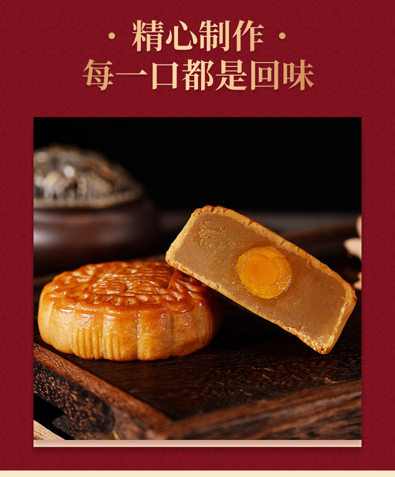 精选上等原料,莲蓉蛋黄多种口味,口感细腻,皮薄馅多,烘烤后金黄晶亮,回味无穷,独立礼盒包装,送人自用都非常实惠!