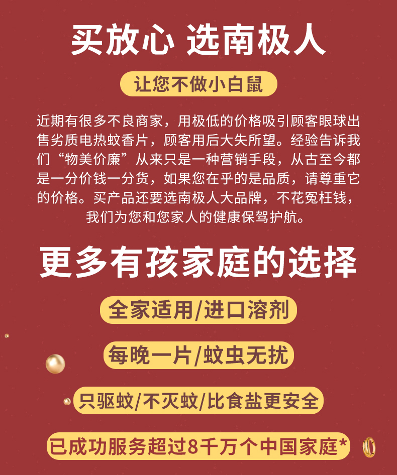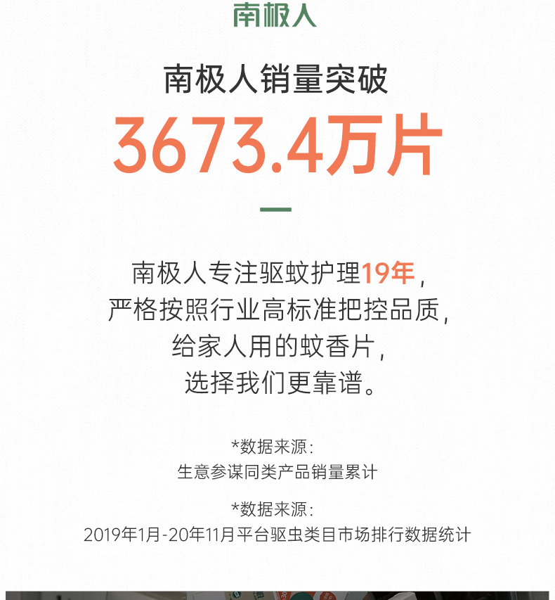19年专业驱蚊~累计销售3673.4万片!南极人电热蚊香片!无香温和配方,不添加避蚊胺,无烟无灰,家里有老人小孩也能放心用!每晚1片,蚊子去无踪,安睡一整晚!90片1器,只要9.9!