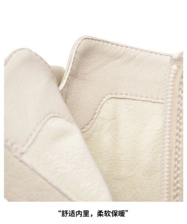 卓诗尼厚绒款圆头粗跟中性短筒骑士靴