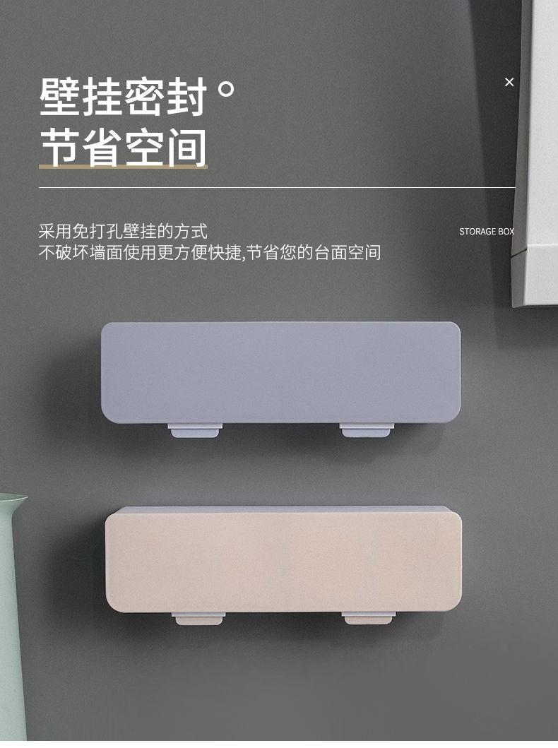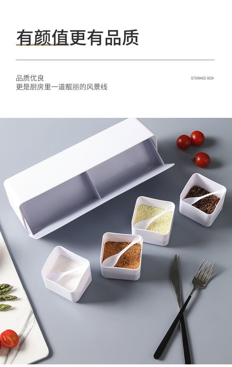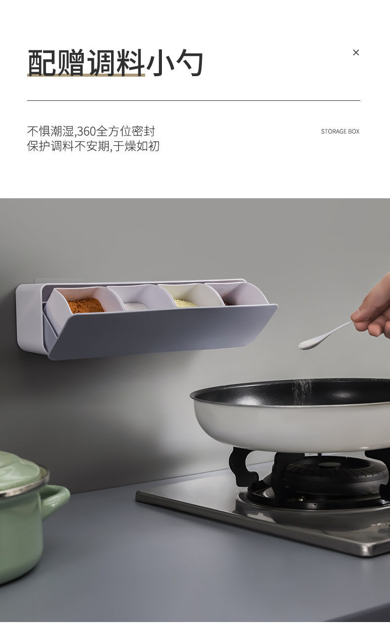免打孔安装简易,不破坏墙面,环保材质健康无味,壁挂节省空间,翻盖设计防水防油,一格一味不串味!【七天无理由退换】