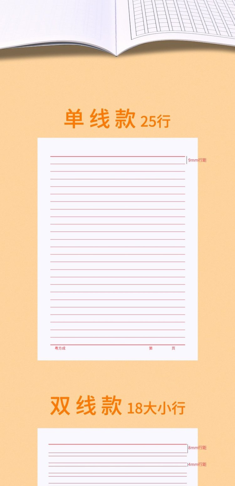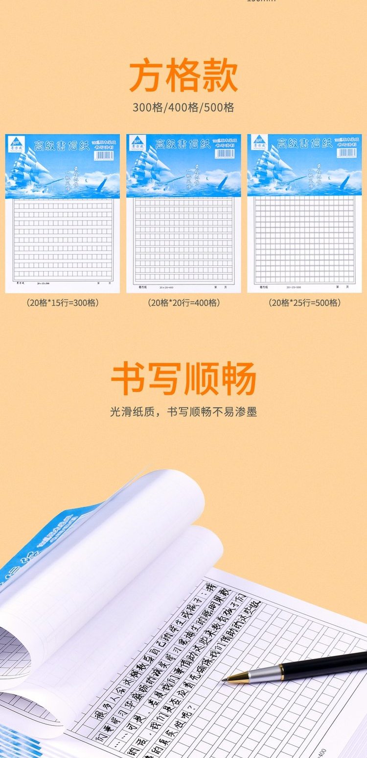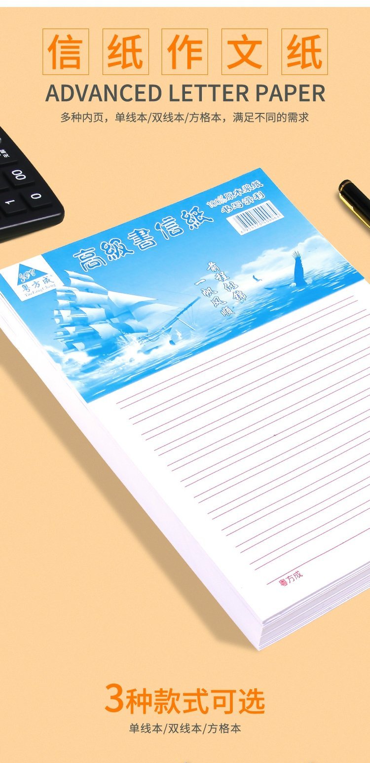 高级信纸作文纸,多种内页,单线本双线本方格本,3种款式可选,光滑纸质,书写顺畅,加厚纸张,书写不易渗墨,胶装设计,易撕取~
