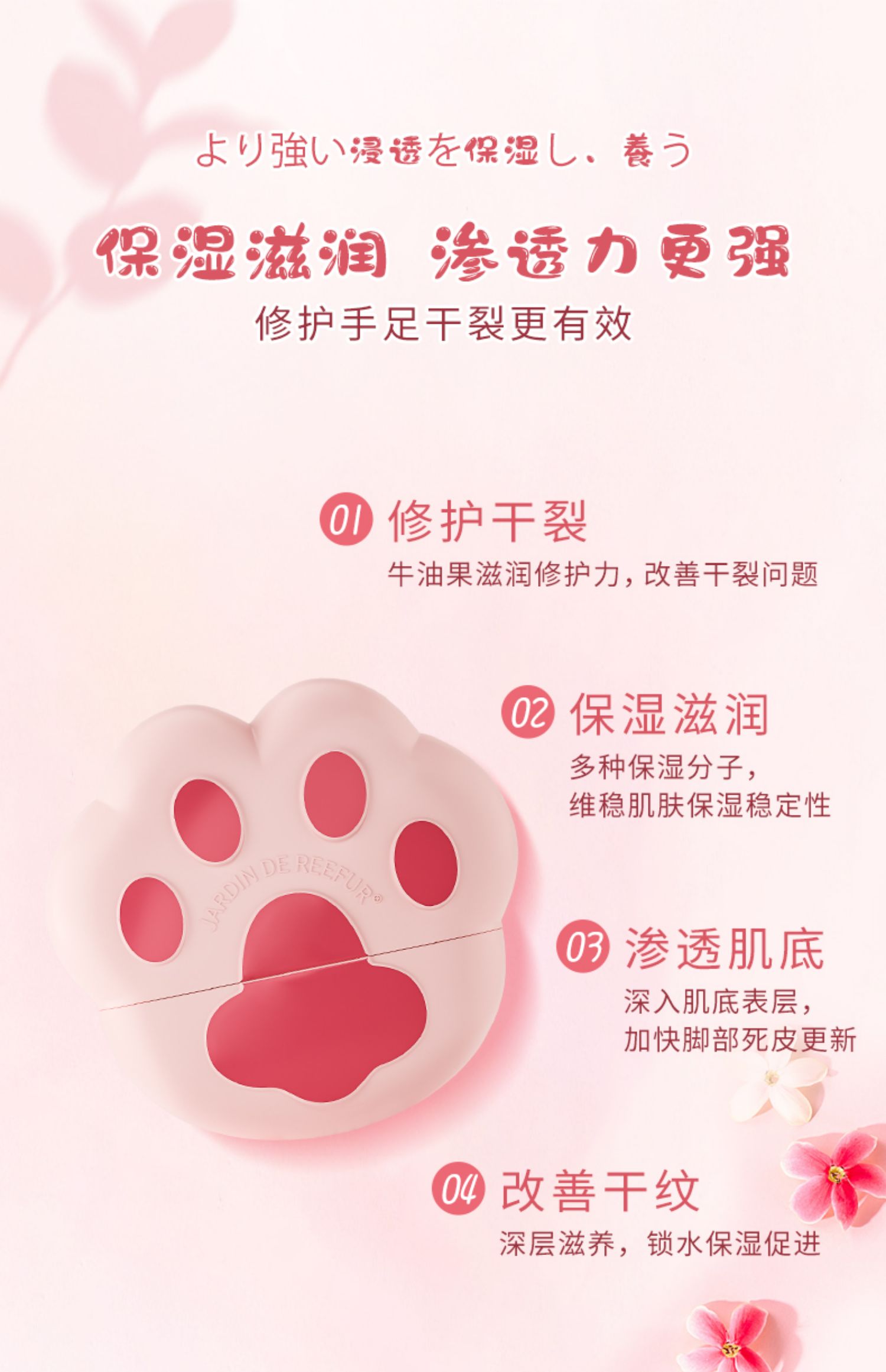 拍2【JardinDeReefur旗舰店】猫爪弹滑嫩肤手足膏。小仙女必须拥有!猫爪造型,超级小巧可爱~成分天然!完全可以放心用,一年四季都可。质地清爽好推开,滋润不油腻,还有淡淡的香味,干皮一定要用!