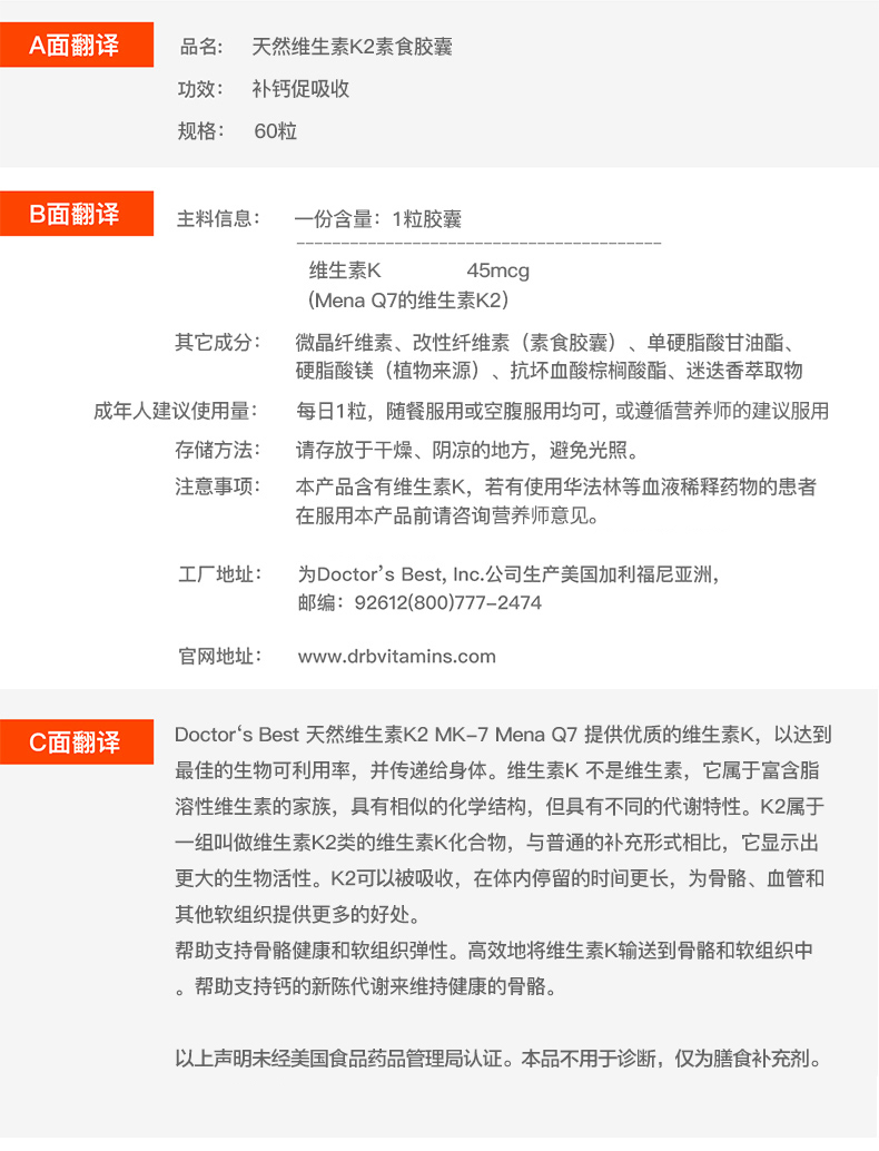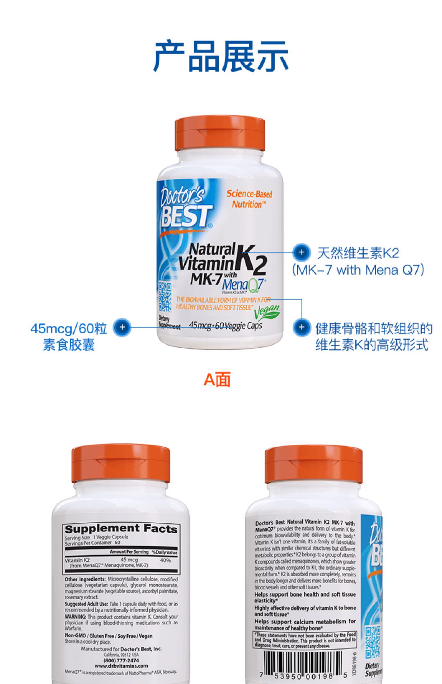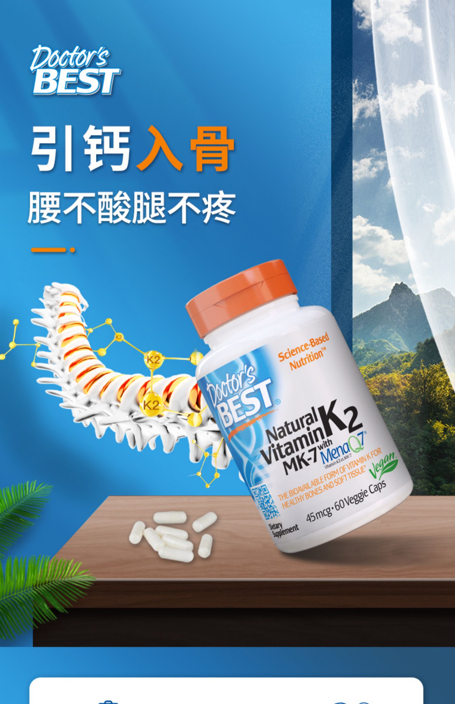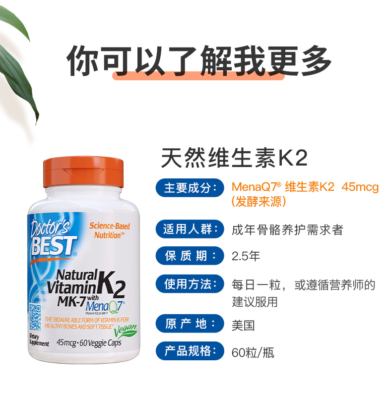 多特倍斯天然维生素K2,保护心血管健康,补钙好搭档,骨骼健康全家享!