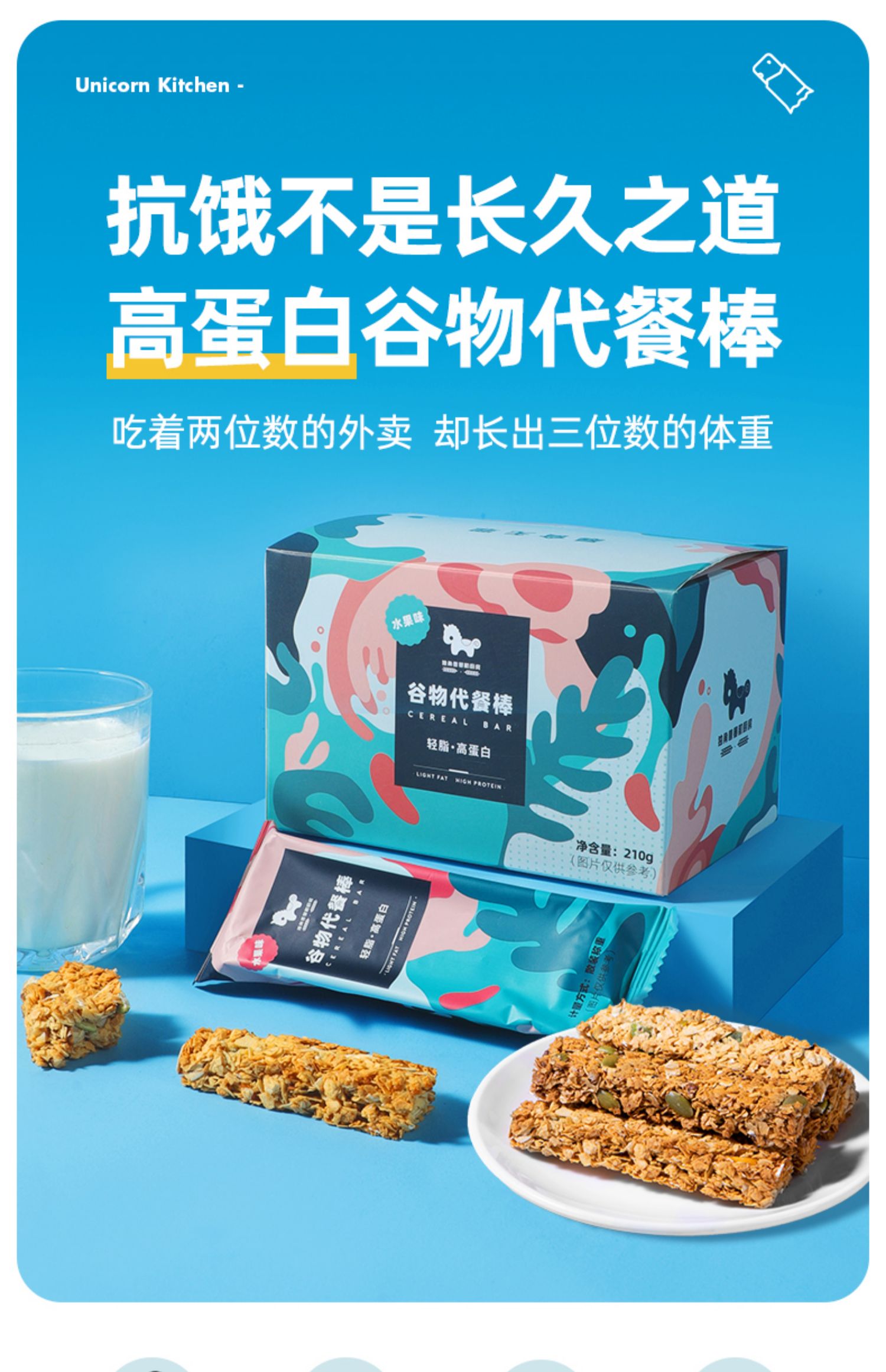【第三件0元】【独角兽爆肌厨房】坚果燕麦代餐棒,无糖精,脂肪低,零热量零食,解馋饱腹谷物能量棒,独立包装,高蛋白谷物代餐棒。【赠运费险】