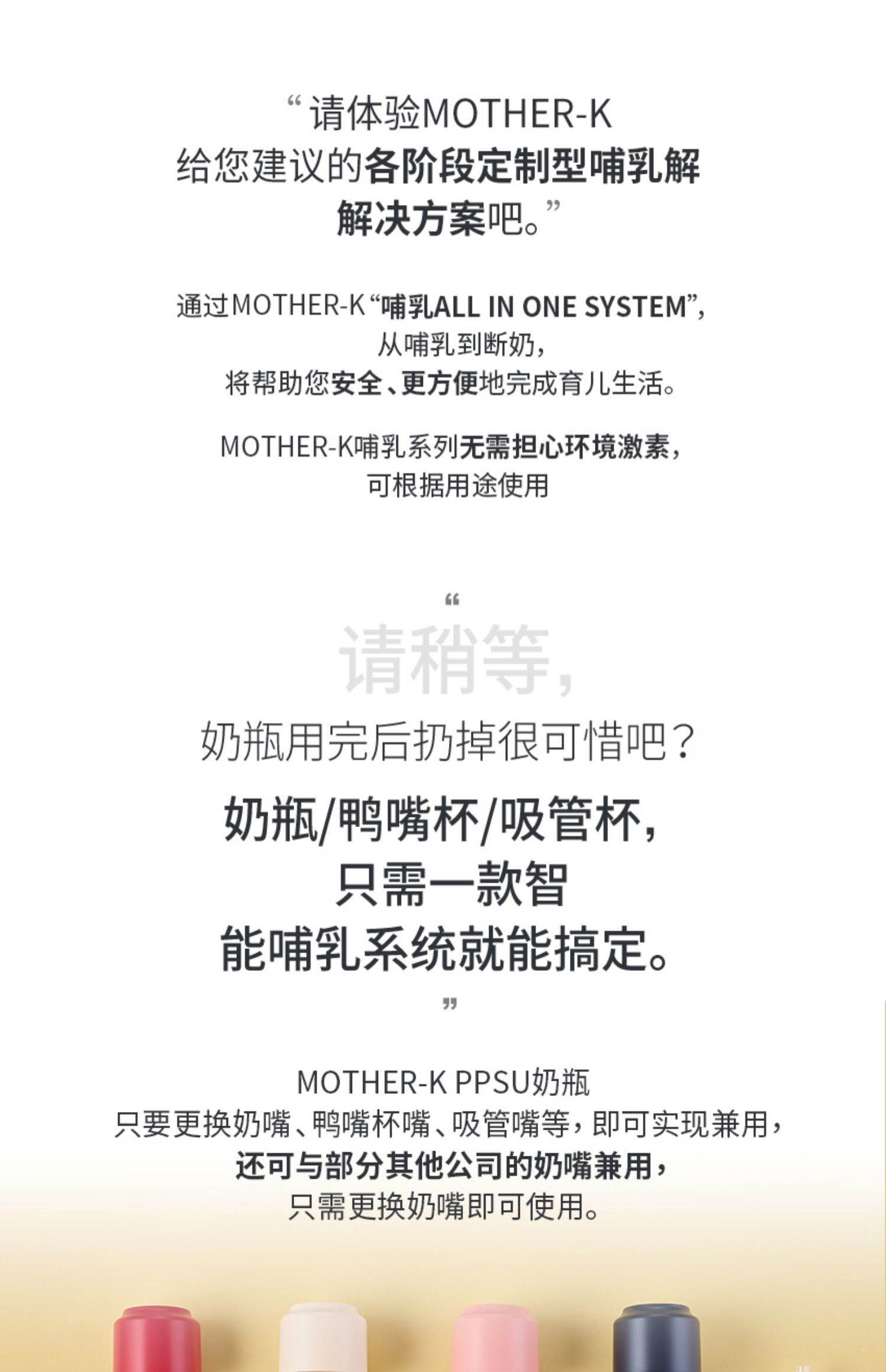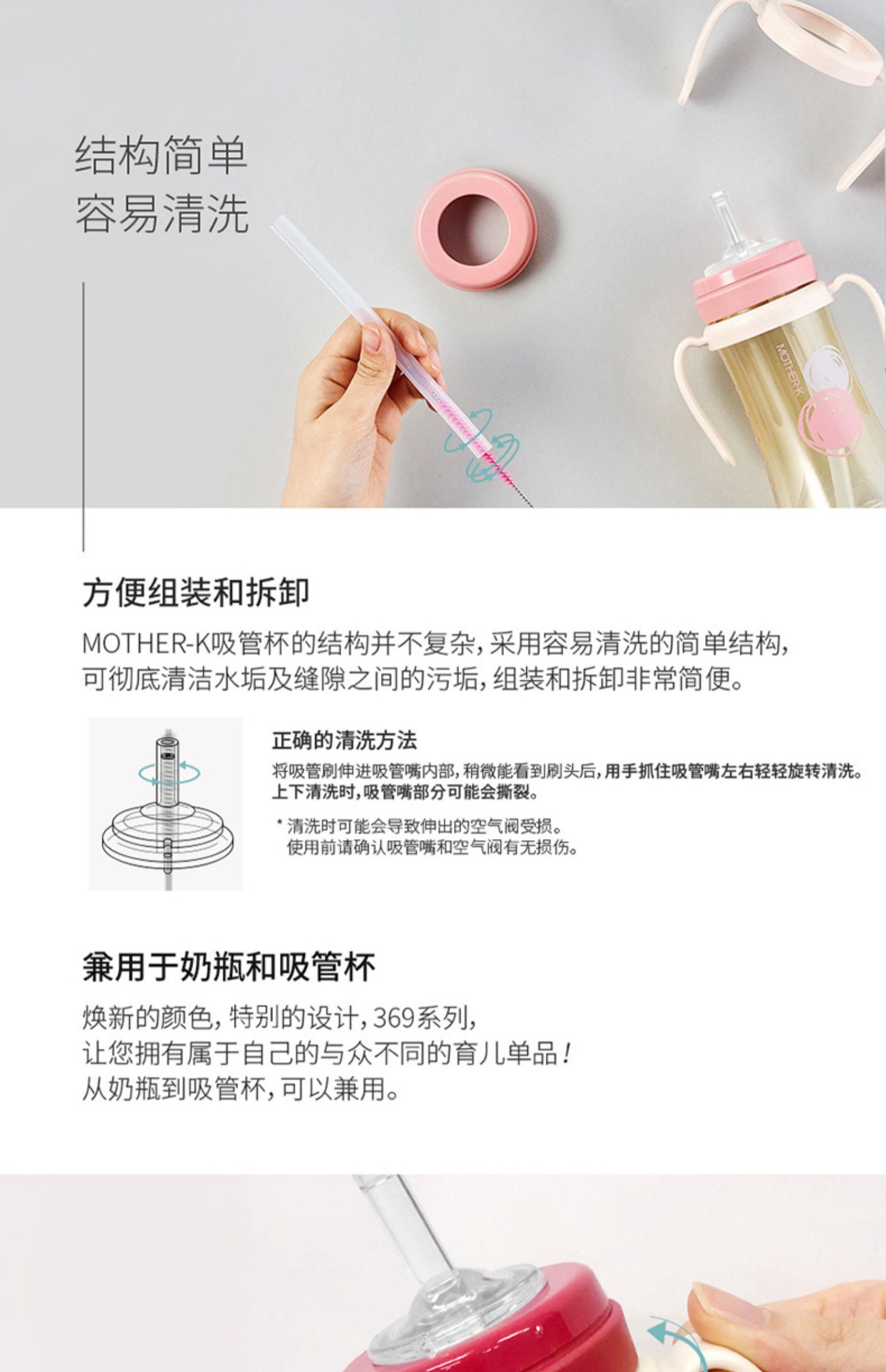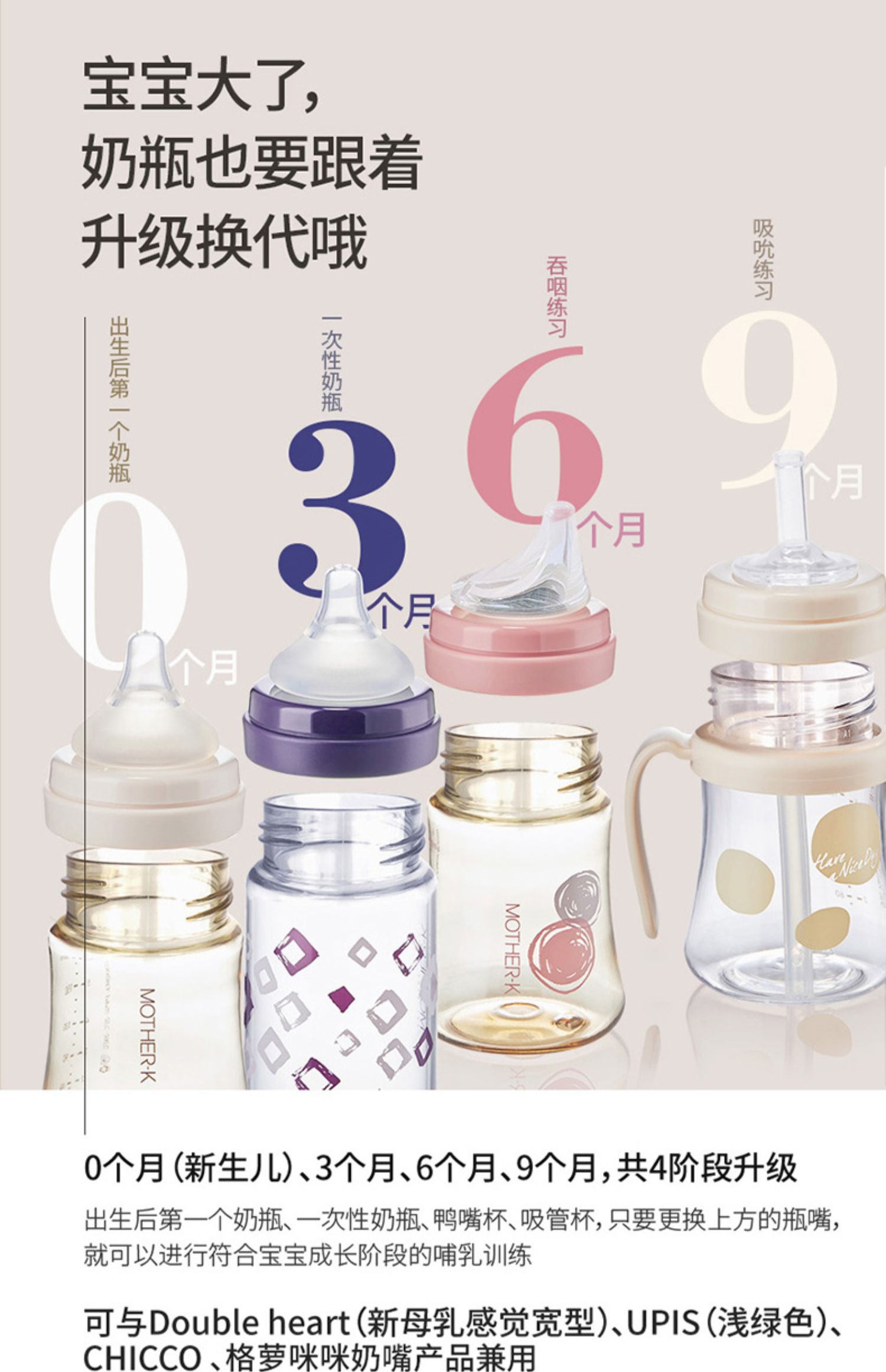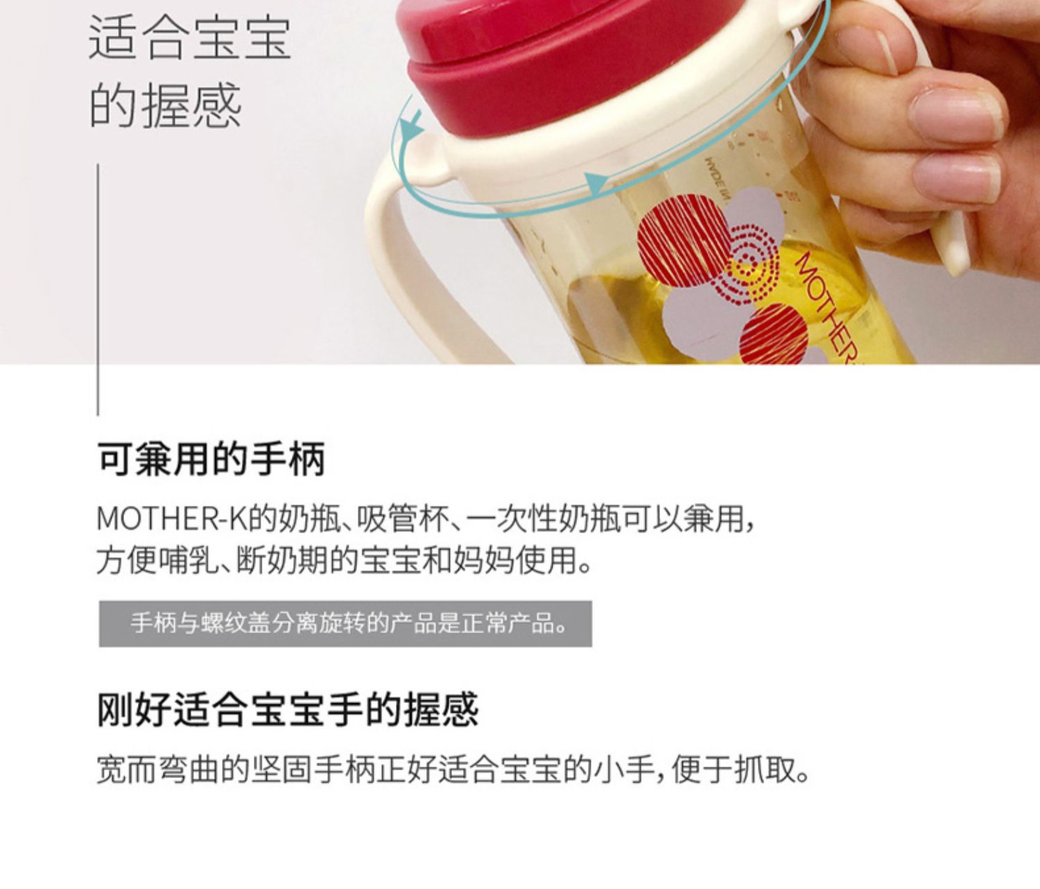 MOTHER-K酷乐萌多韩国原装进口宝宝水杯防摔防烫婴童奶瓶,奶瓶只要更换奶嘴、鸭嘴杯嘴、吸管嘴等,即可实现兼用,还可与部分其他公司的奶嘴兼用,只需更换奶嘴即可使用。
