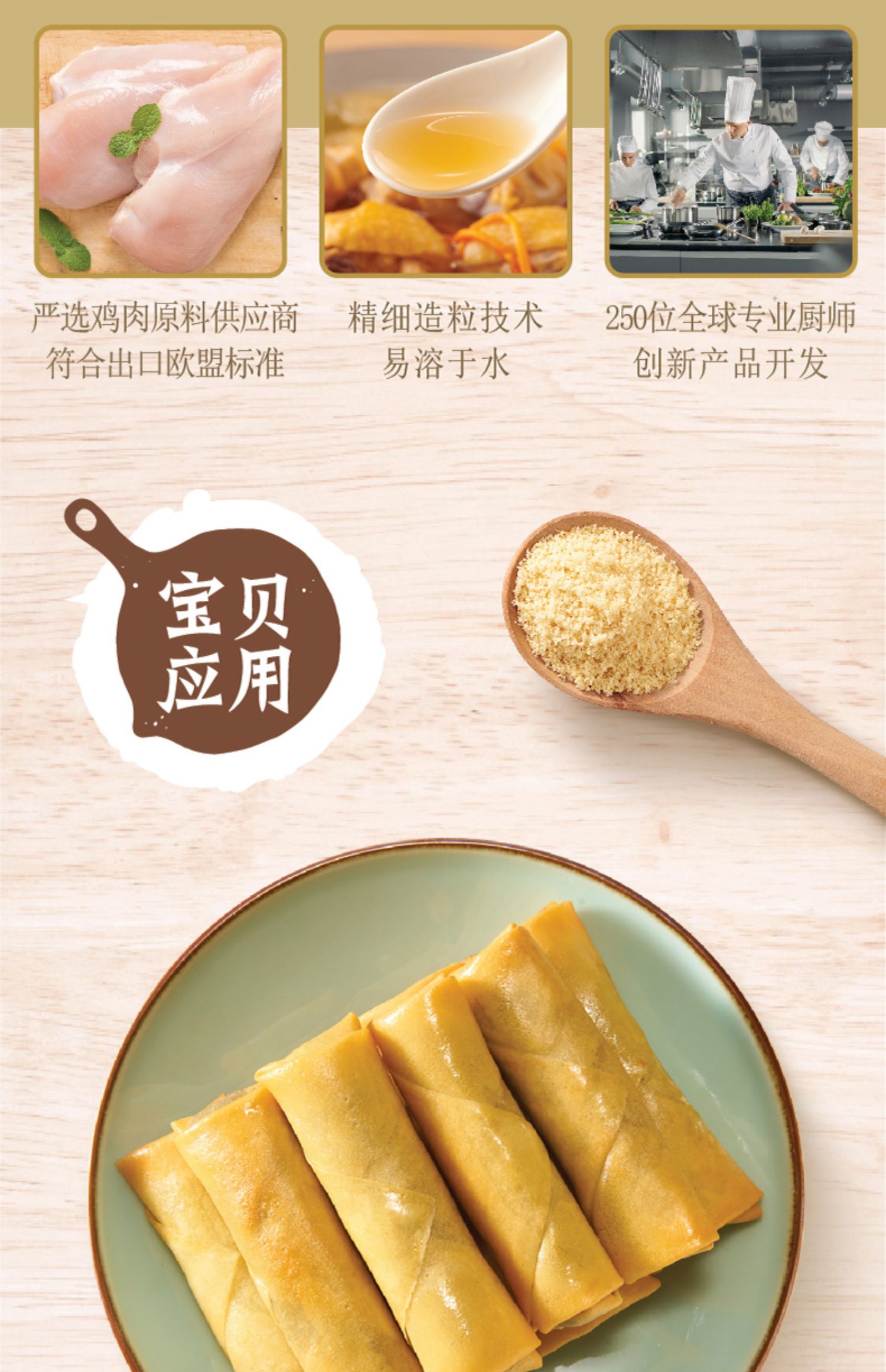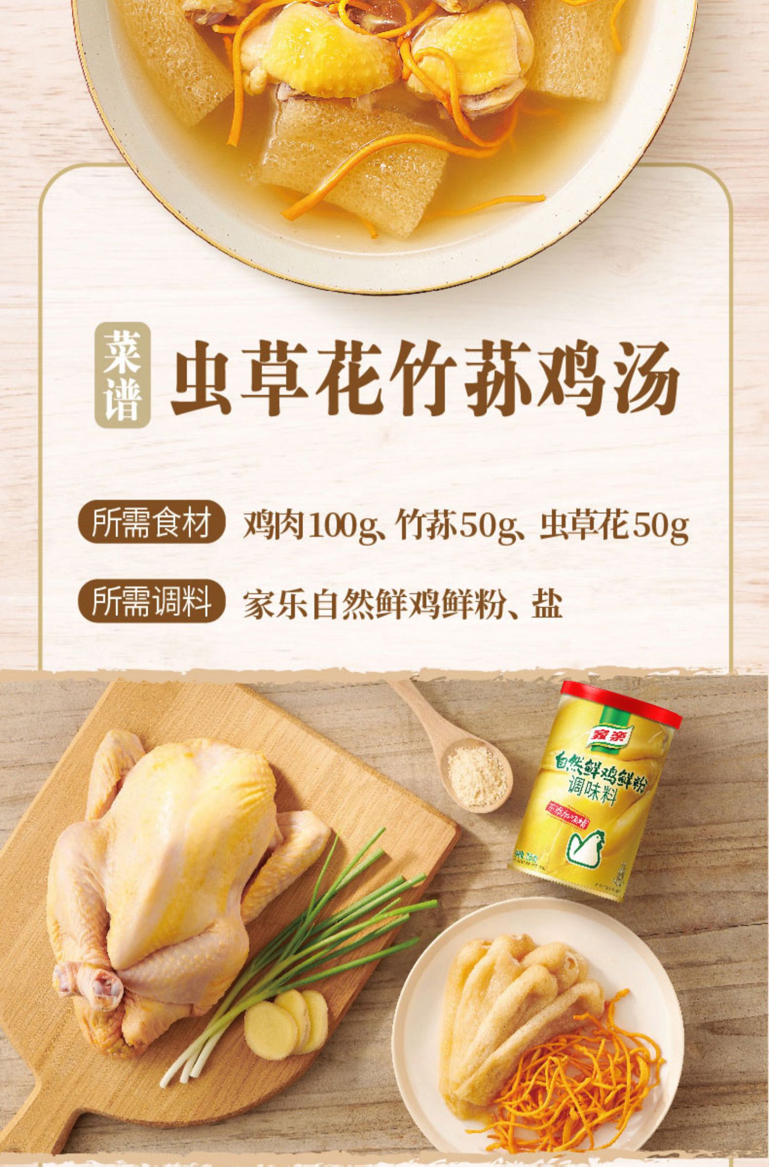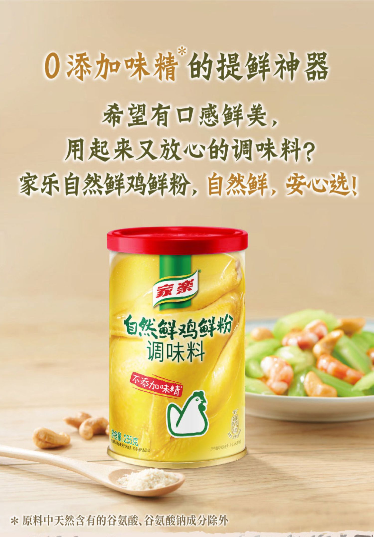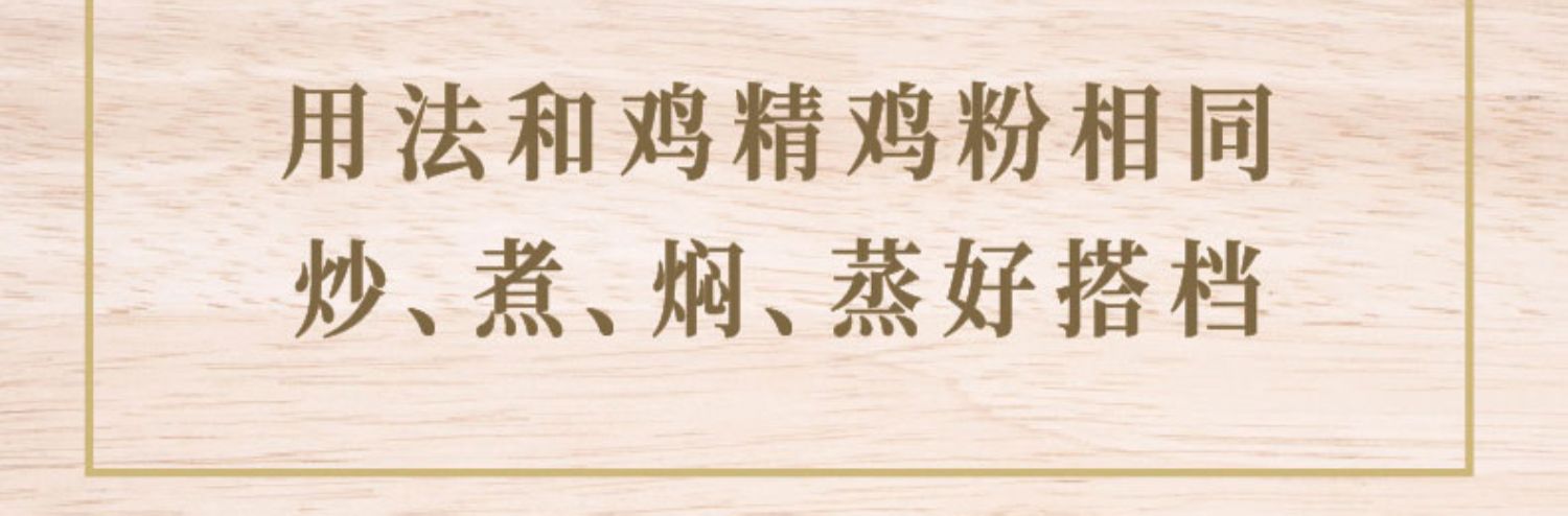 金罐升级自然鲜鸡香更浓,精细造粒技术,腌制快速入味,不添加防腐剂,让你吃到纯正的鸡鲜味,提香、增味,烹饪必备!