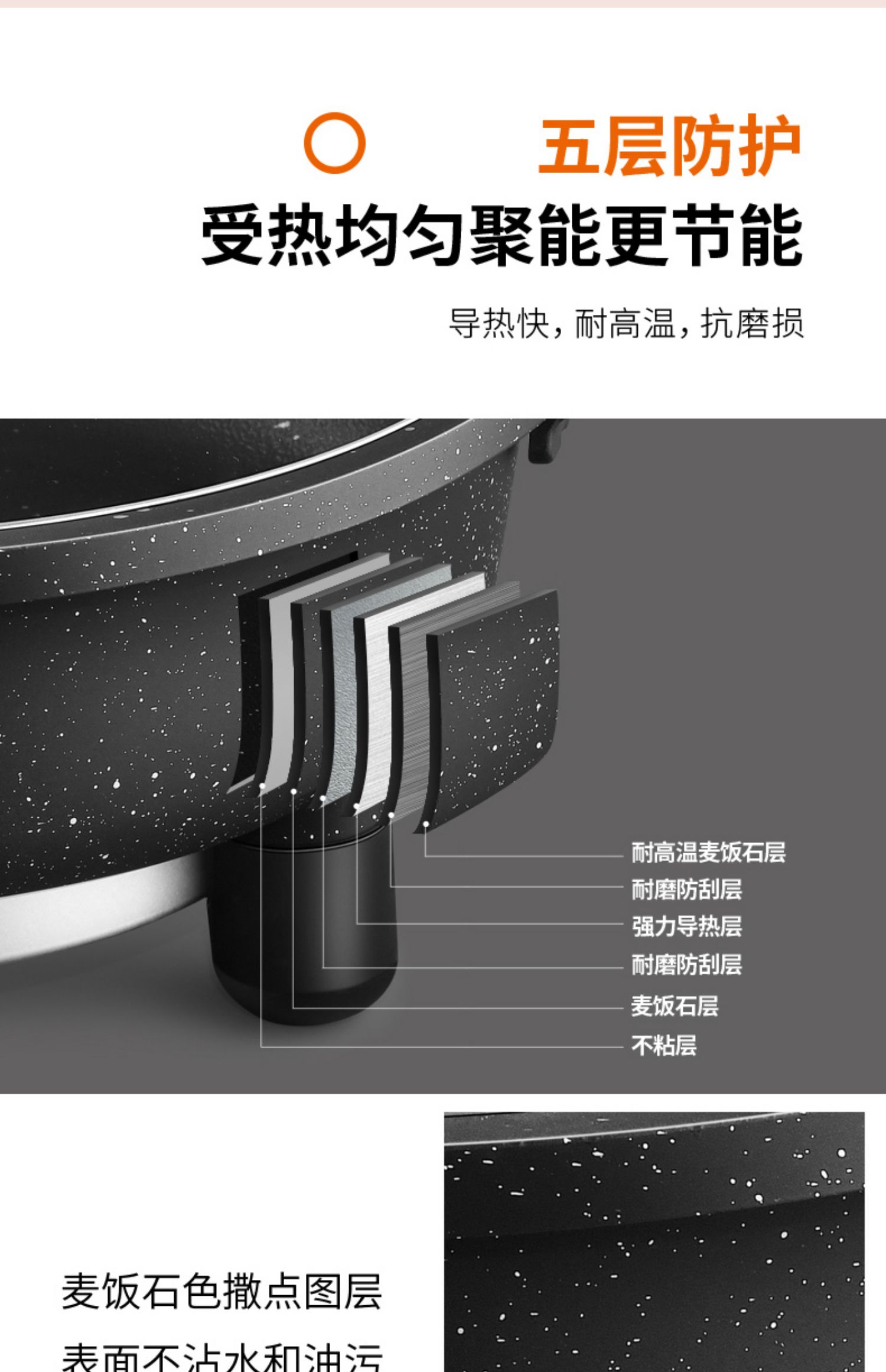 五层防护,导热快,耐高温,抗磨损,3L容量,一锅多用,食品级不沾内胆,1200w大火力,小巧易收纳【赠运费险】