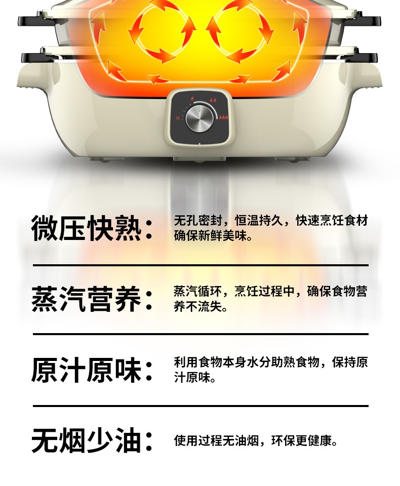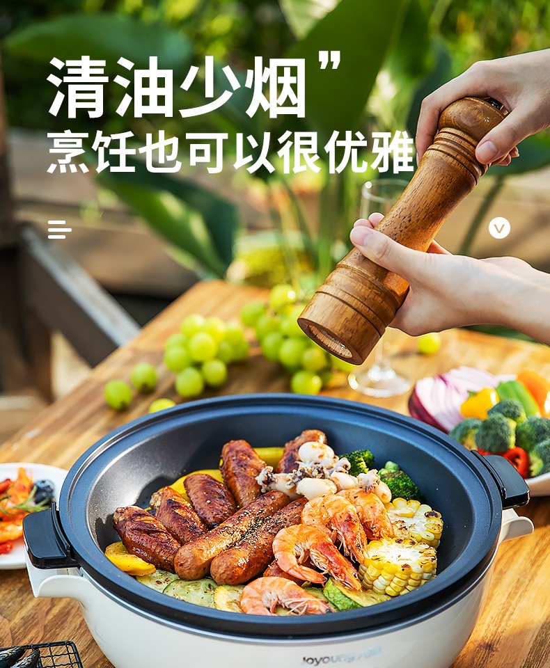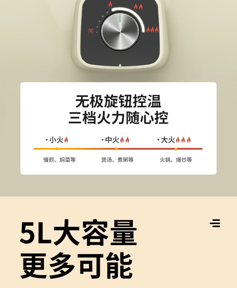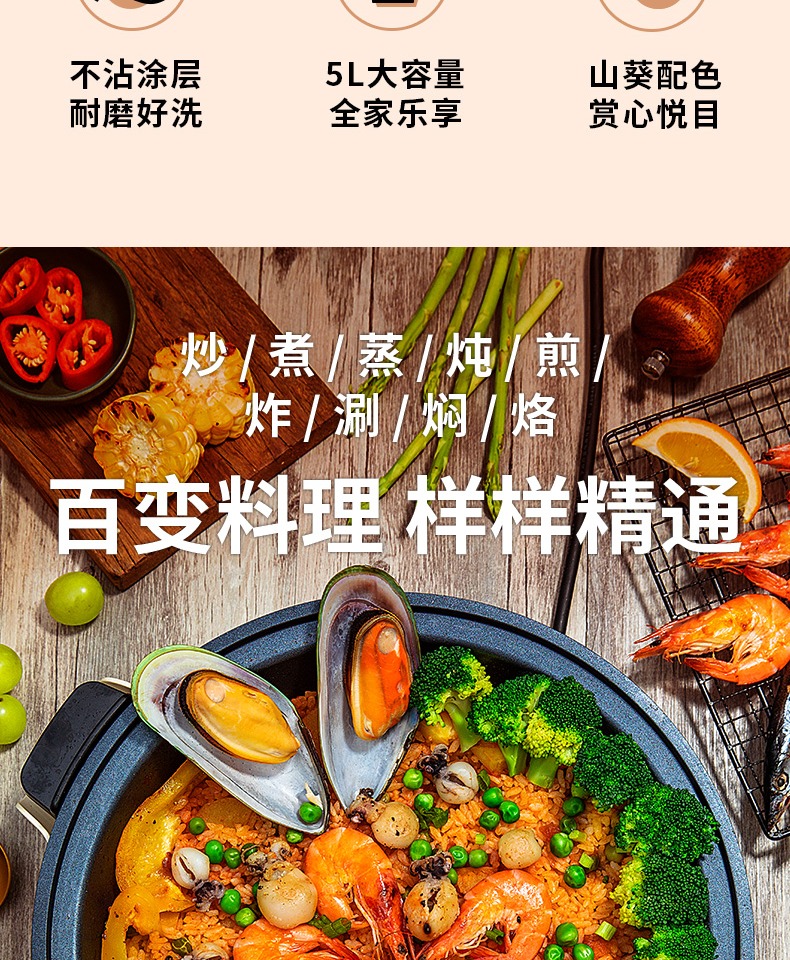 【三期免息,送多功能煎烤盘】无烟少油,无孔密封,多重火力,智能调节,5L大容量,2-8人全家乐享【赠运费险】