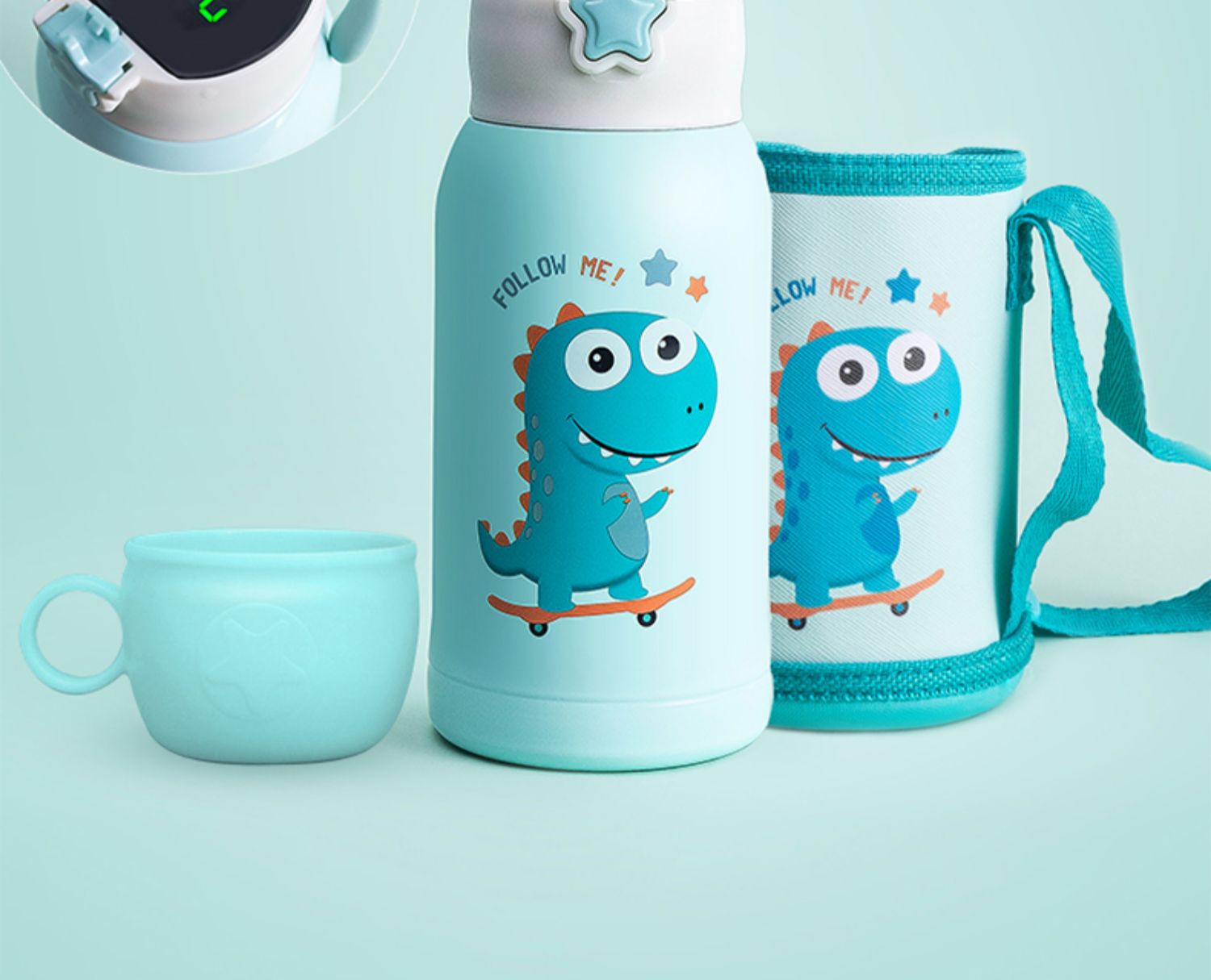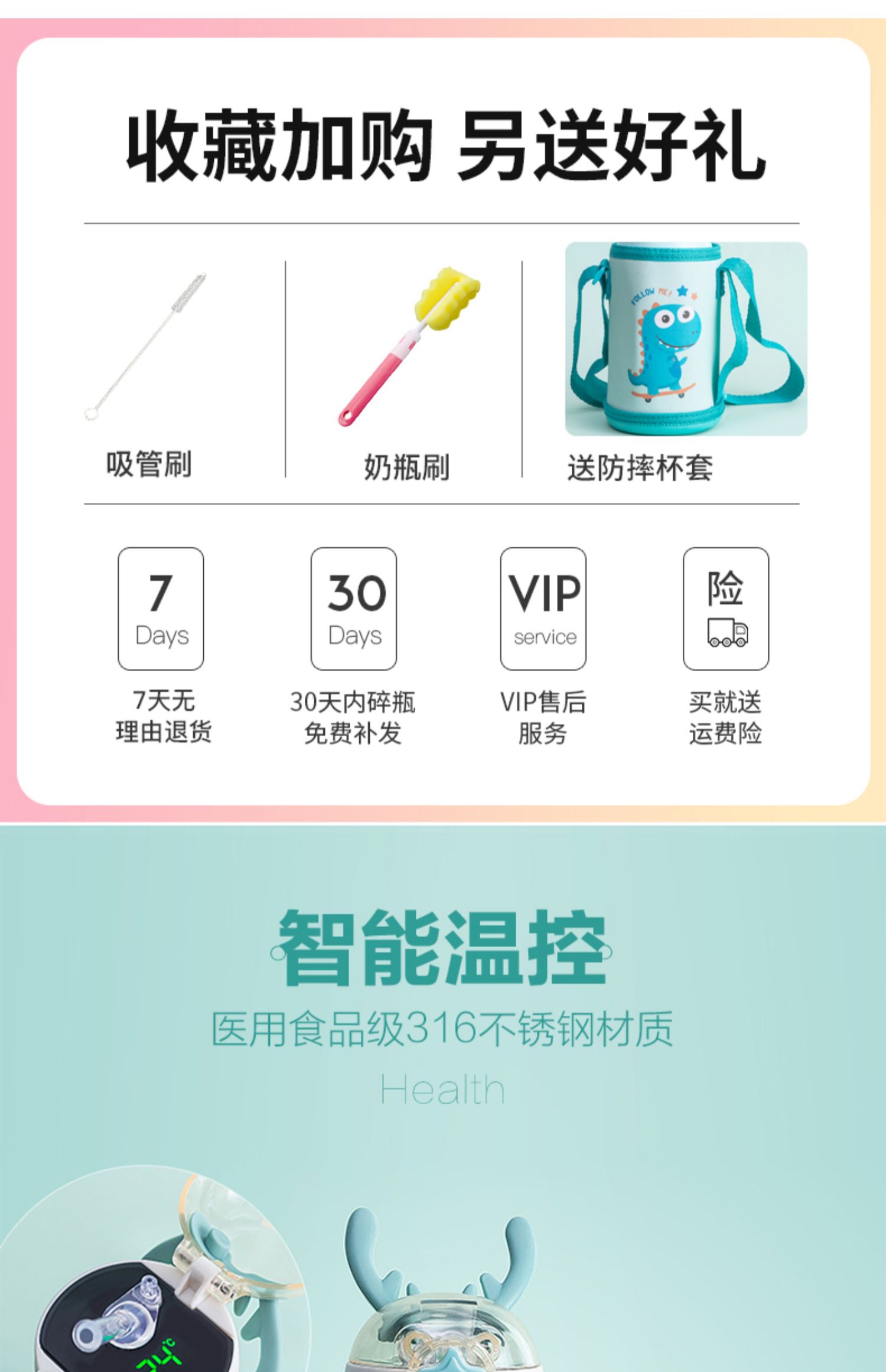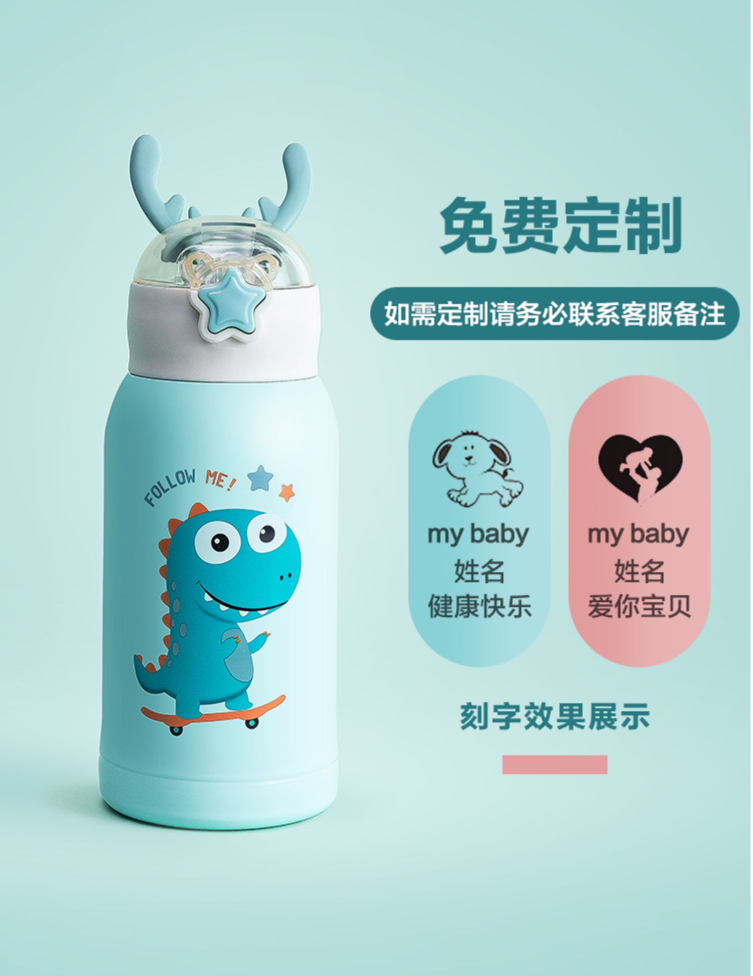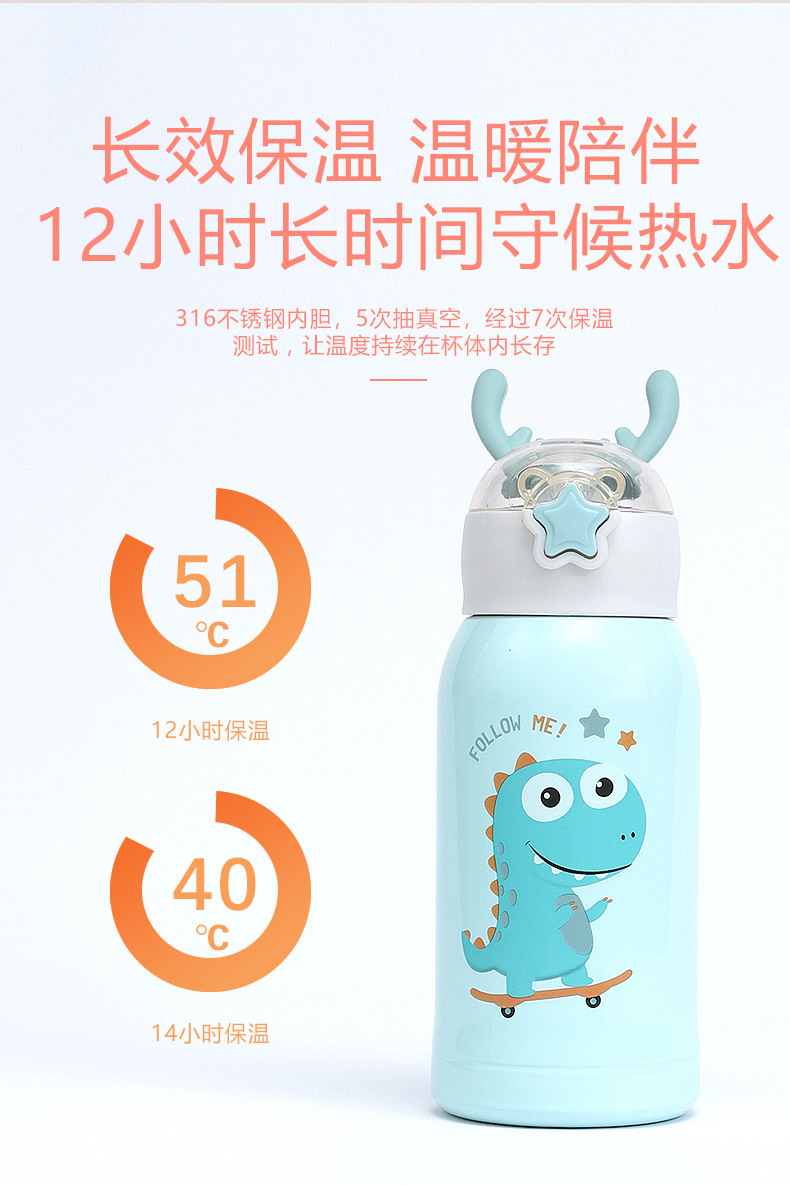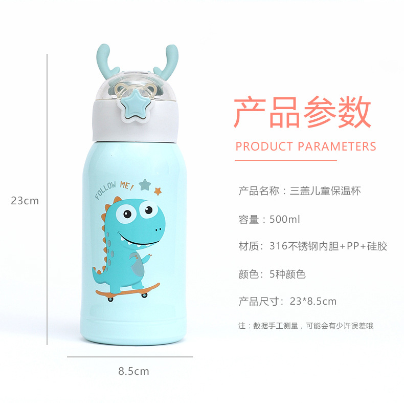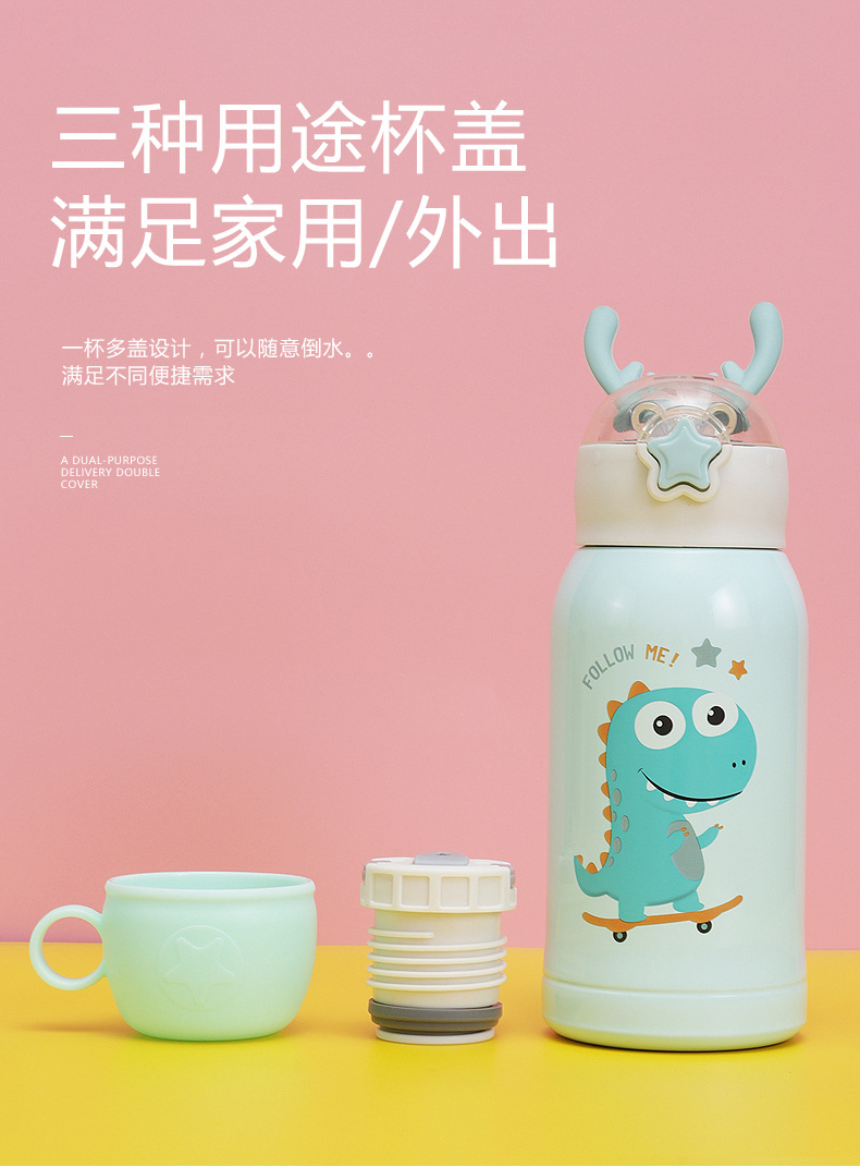 儿童保温杯带吸管316不锈钢,长效保温12小时,360°任意放置不漏水,食品级硅胶吸管,一杯四盖,四盖三用,防摔设计,一年四季的饮水需求~【七天无理由退换】