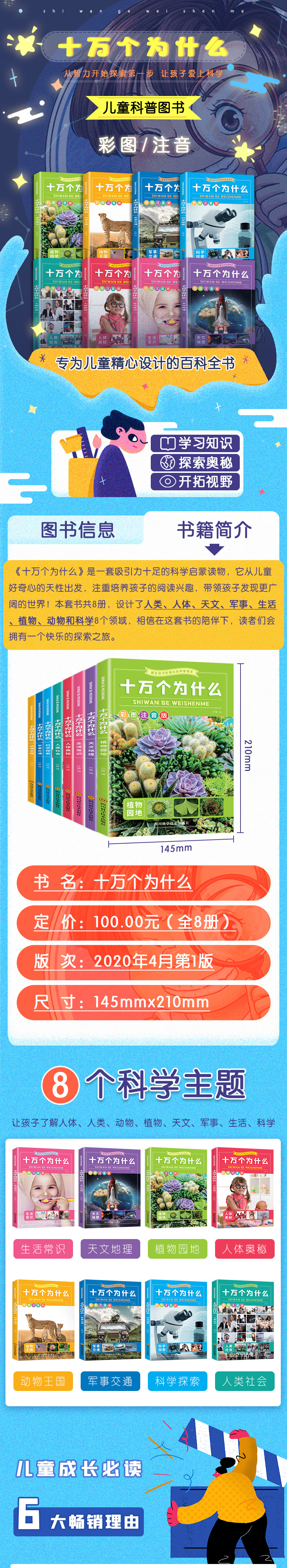 8册小学生正版十万个为什么。精彩有趣的插图,简洁易懂的语言,专业的解答,将儿童的感性认识与理性认识相结合,促进对知识的理解与领会。