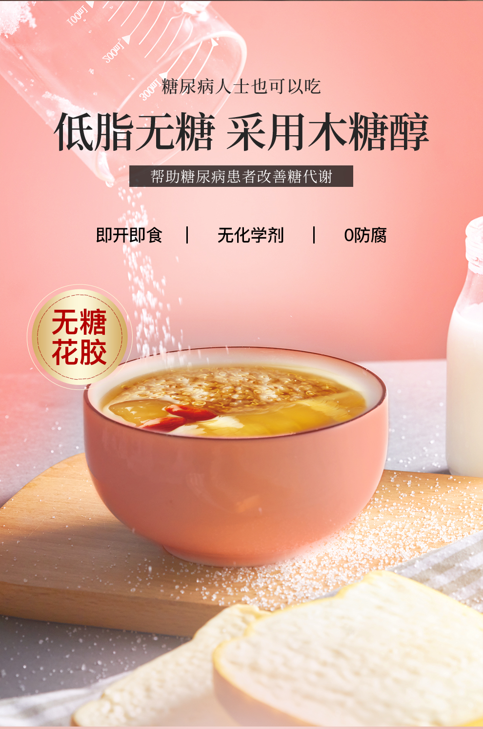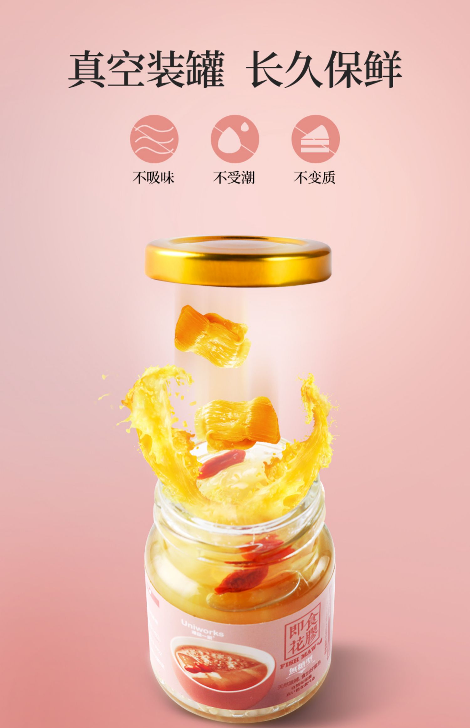 【枸杞冰糖口味花胶75g*3瓶】开盖即食,好吃还不腥,料足味美,121°C高温灭活细菌,真空密封锁鲜,每瓶含4g干花胶,女人如花,就得“胶”生惯养,补充胶原蛋白,多种营养原料,营养美味无添加!