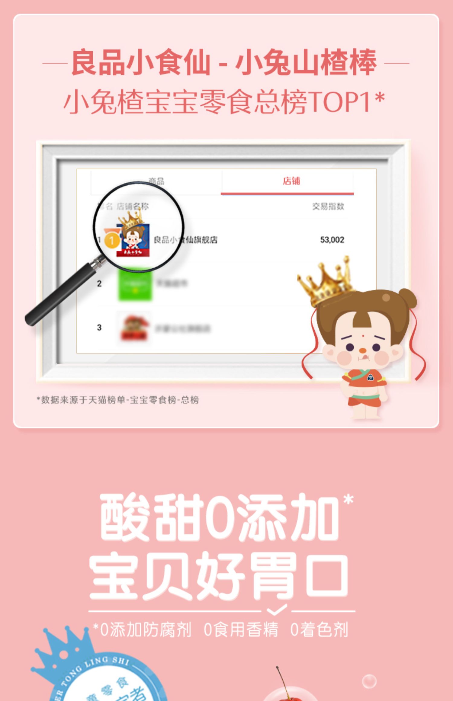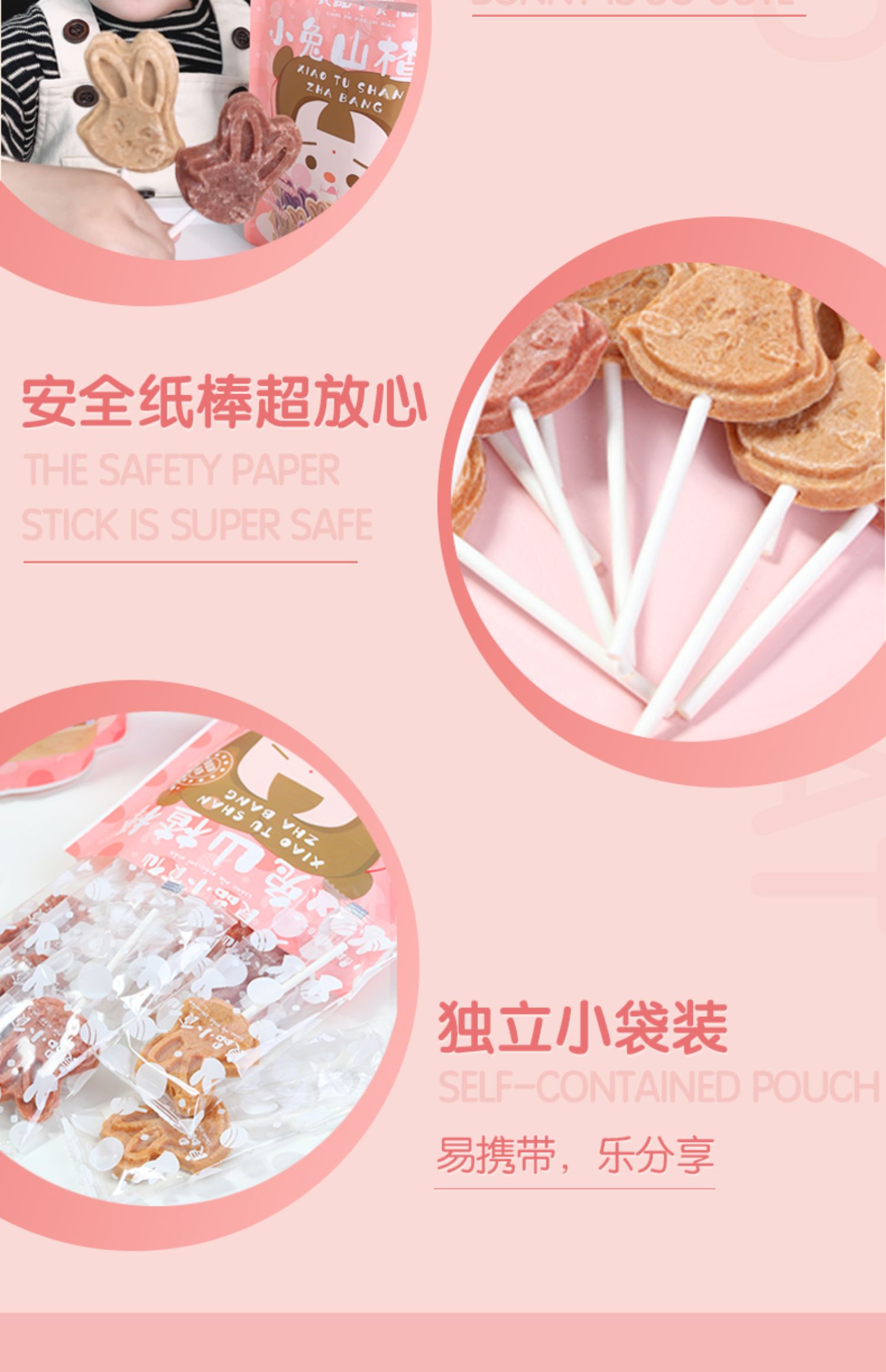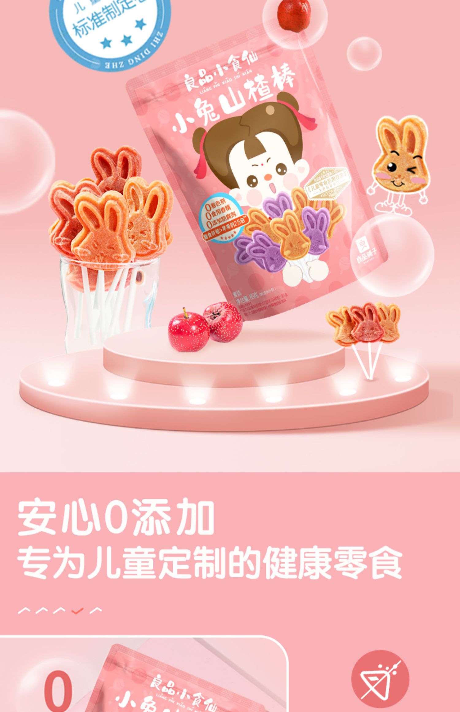 山楂制品棒棒糖宝宝零食。零食山楂类目销售前列,良品铺子旗下儿童零食品牌,只添加山楂,蓝莓,糖,专为3-12岁宝宝设计的健康山楂~
