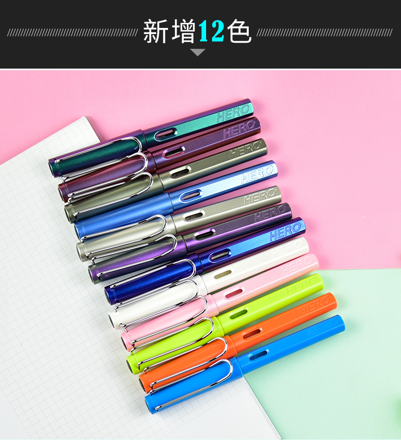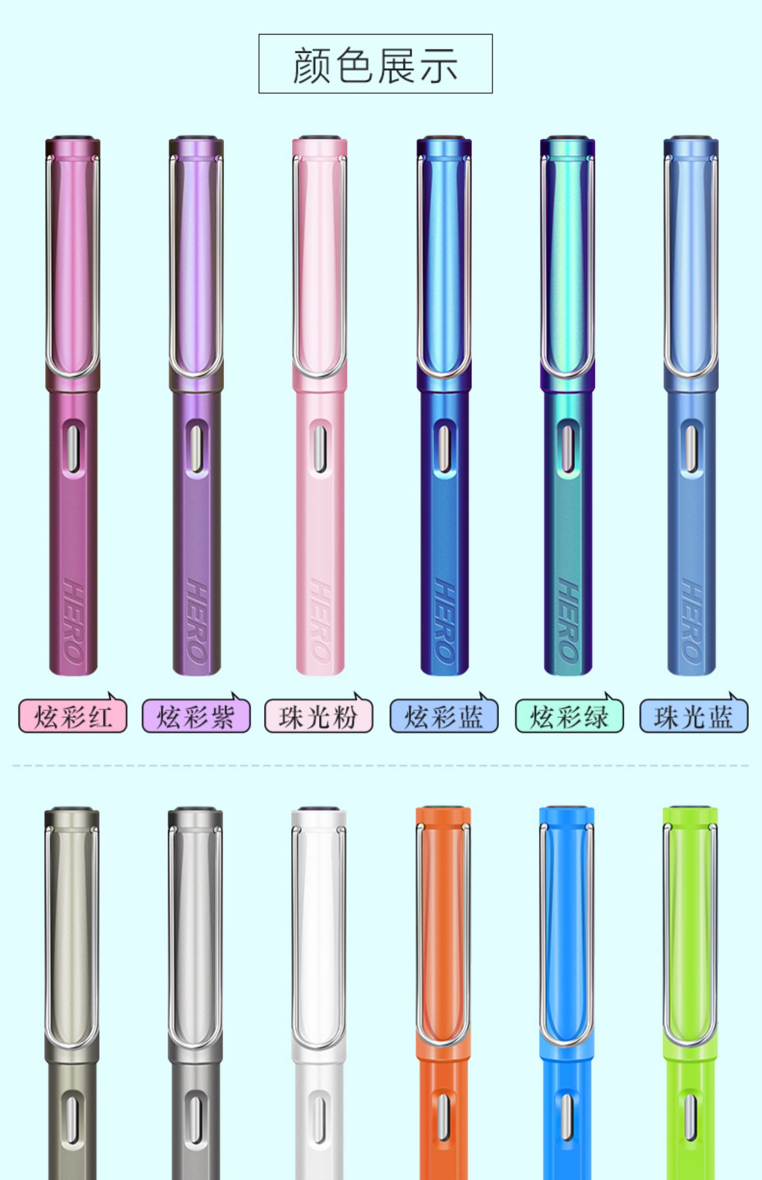 【送24只墨囊和一个吸墨器】官方正品,礼盒包装,英雄钢笔,多色可选,金属笔夹设计,书写流畅,正确握姿,新增12亮丽色彩。