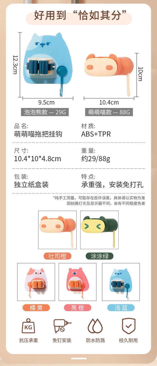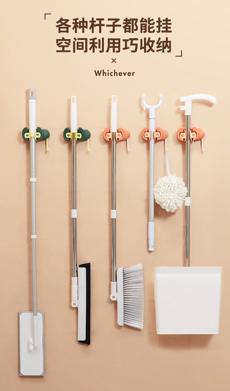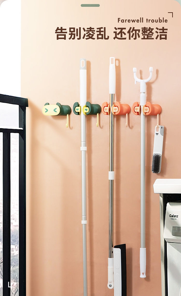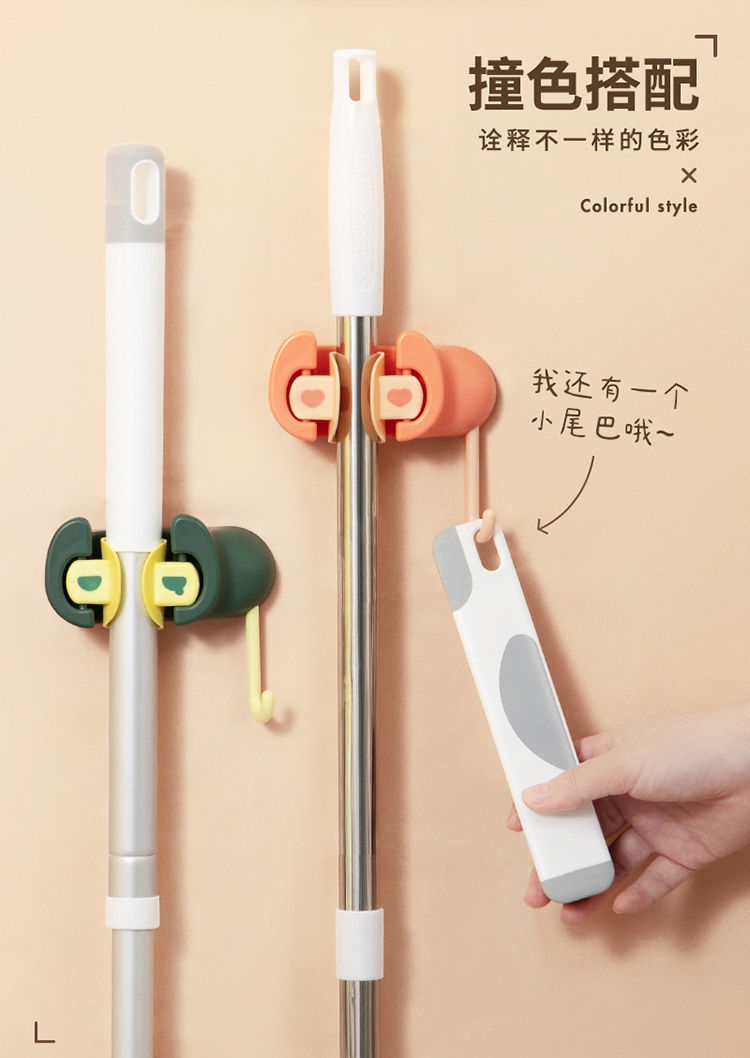 创意拖把挂钩,多功能免打孔拖把夹!免打孔的,不伤墙面~可以收纳拖把,扫把等,居家神器安在浴室特别美观~还是防潮防水的款,不易掉落!