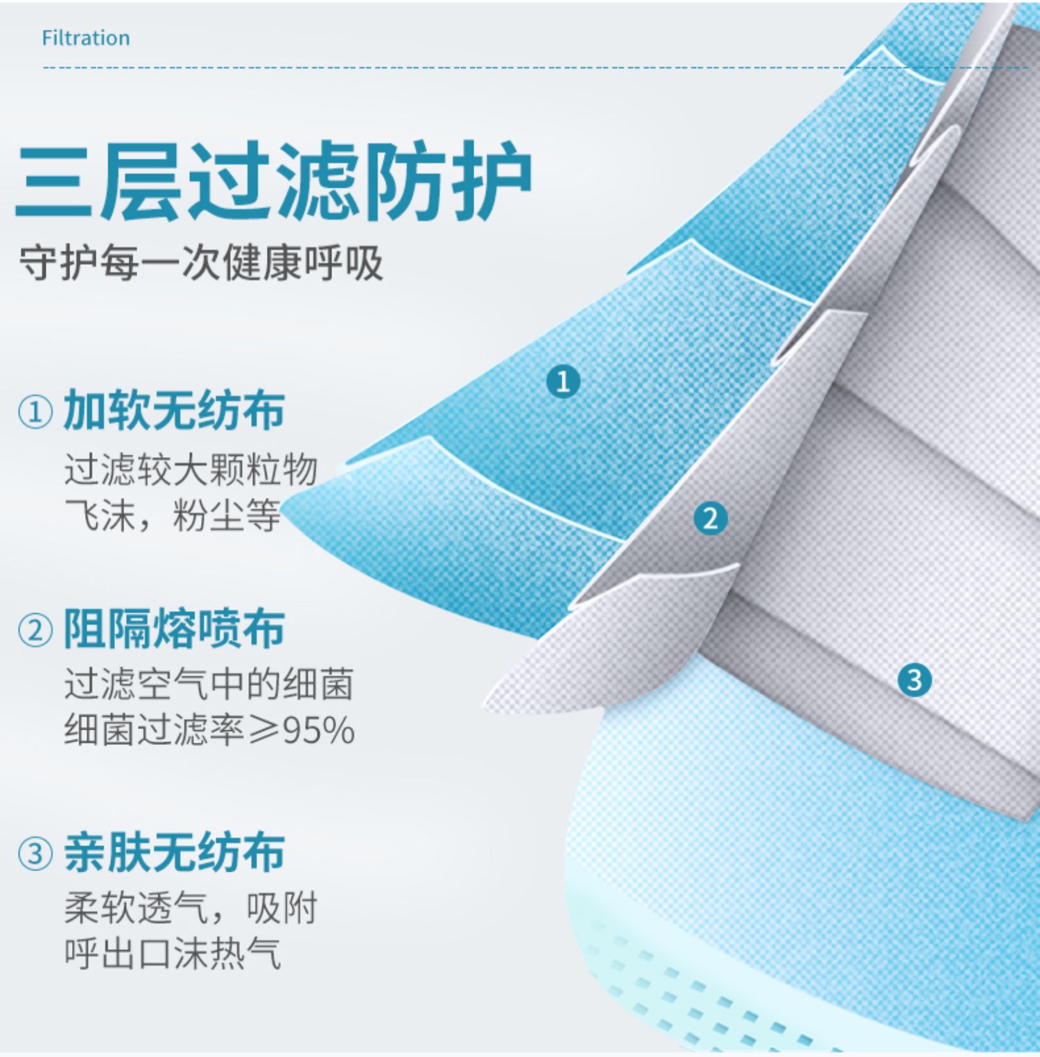 医用级一次性防护口罩,内含三层过滤含熔喷层,独立包装,防护更安全,全方位贴合面部~严格监工,合格证书齐备!防疫必备.