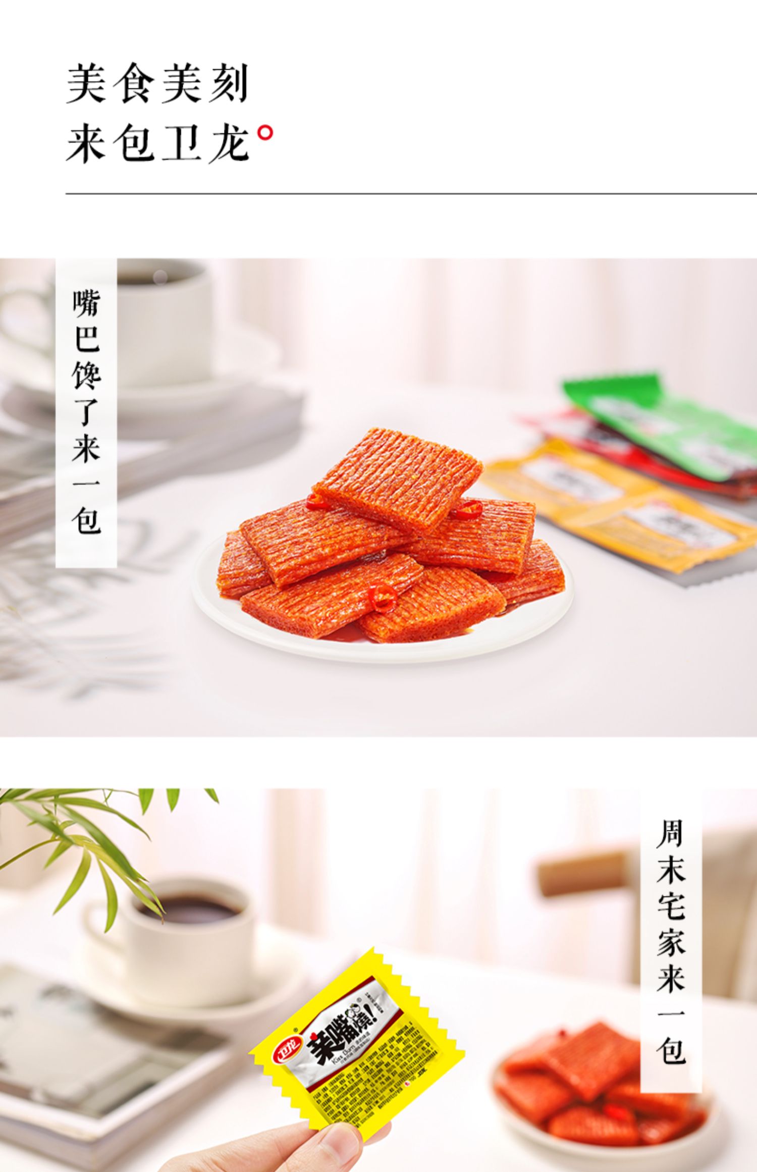 【详情页面下拉领取百亿补贴,专属价格11.9】小卖部热销,小孩大人都爱吃的零食~卫龙亲嘴烧辣条!每片约8mm,饱满厚实,韧性刚刚好!入口麻辣鲜香,越嚼越有味!川香、红烧、麦辣鸡汁3口味。