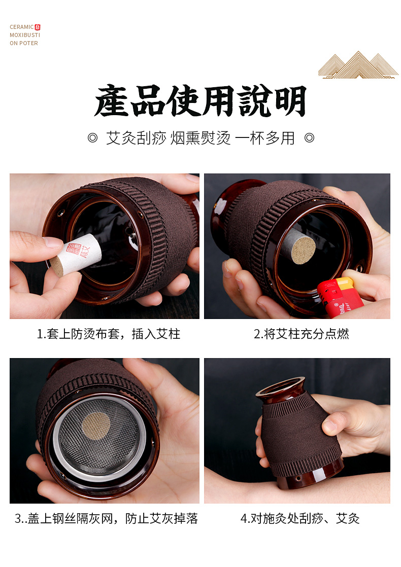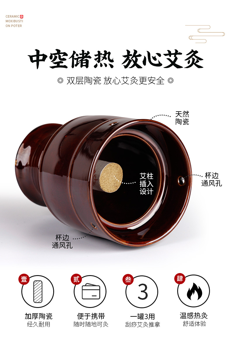 全新升级,艾灸刮痧,烟熏熨烫,全身可用,双层陶瓷,中空储热,双层隔热,杯口平滑,艾灸新体验!便于携带,给您带来舒适体验,正品保证。【七天无理由退换】