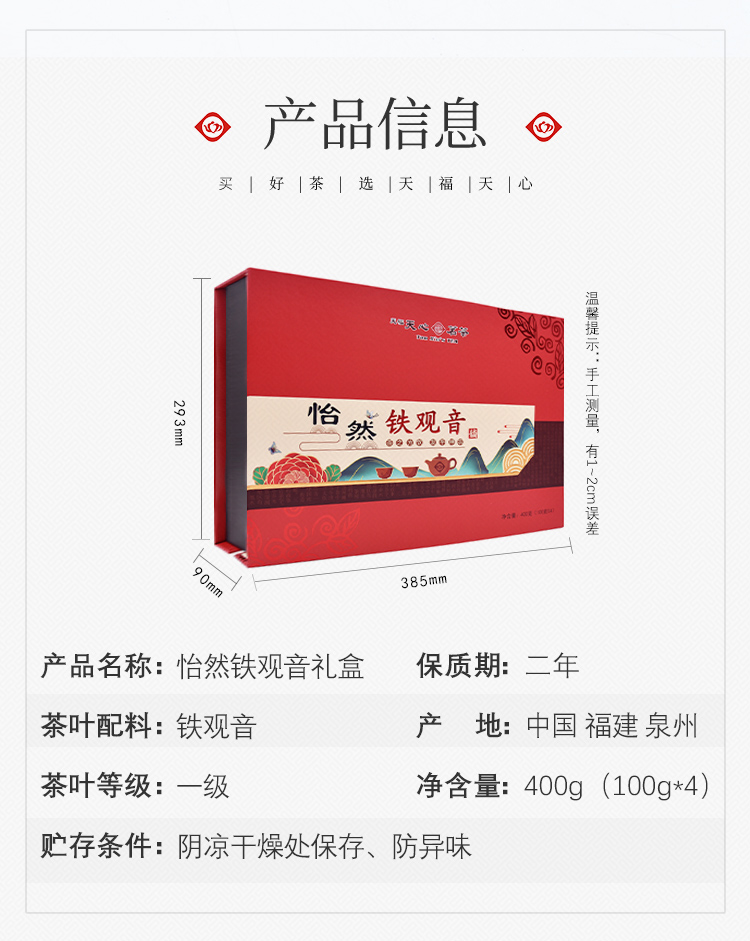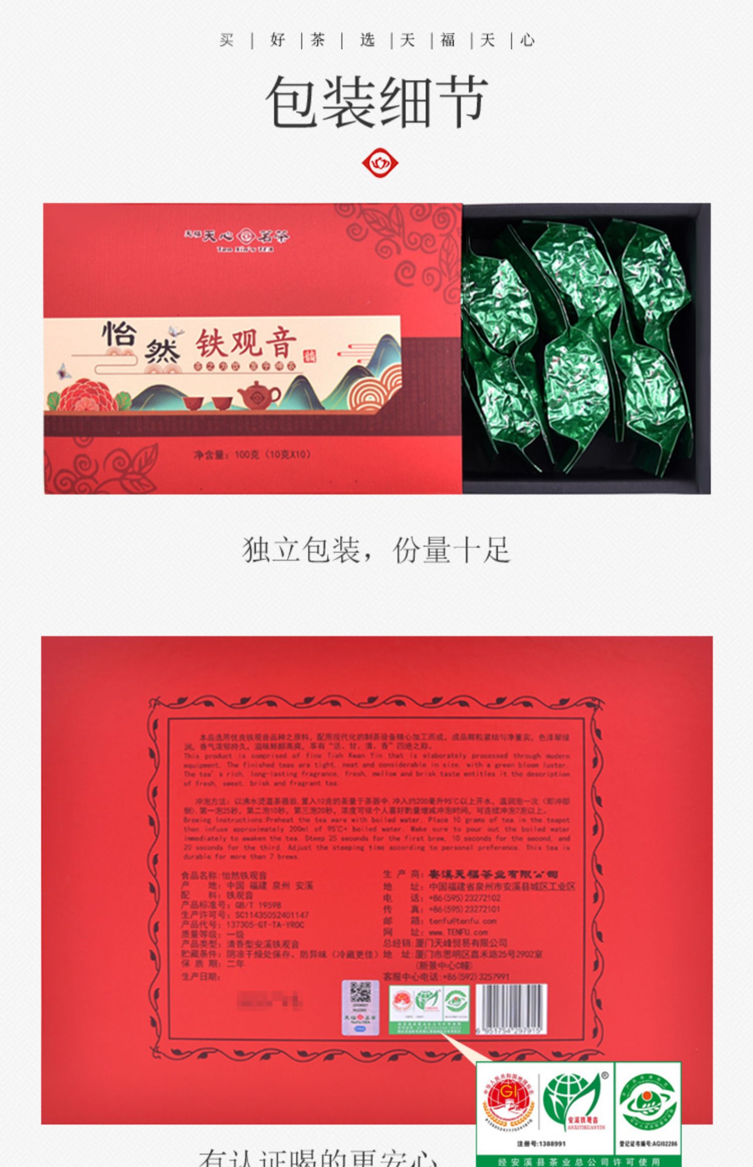 【天福天心茗茶】铁观音,正宗安溪原产,正味观音韵,秉承传统工艺匠心地道,坚持做好茶,圆整似蜻蜓头,香气浓郁滋味鲜醇,好茶耐泡,不止于七泡,大气礼盒,送礼自用都是佳选!【赠运费险】