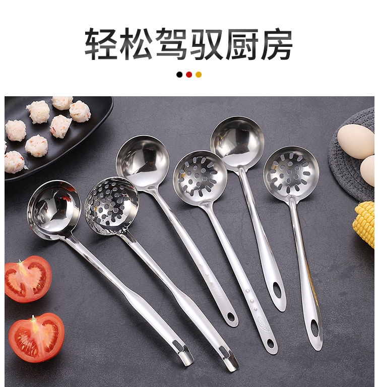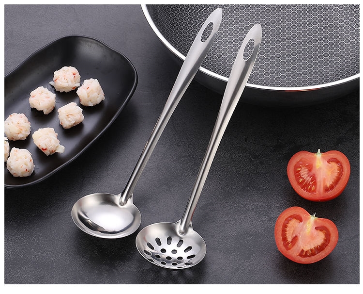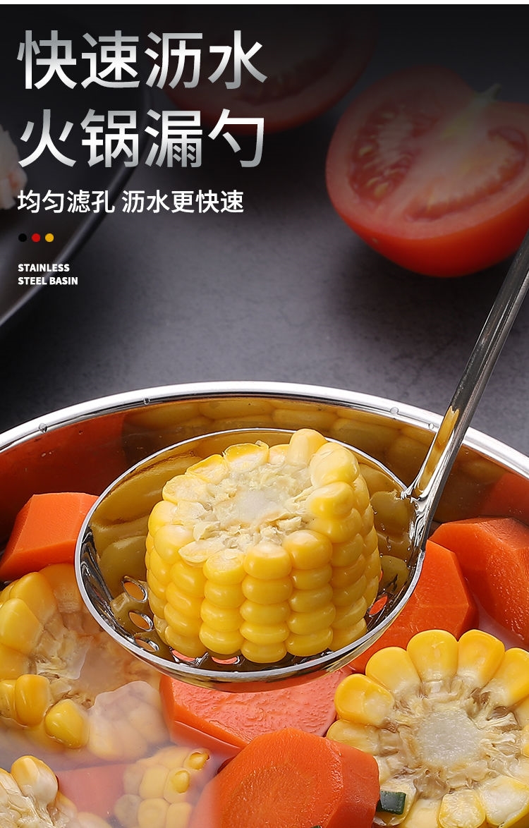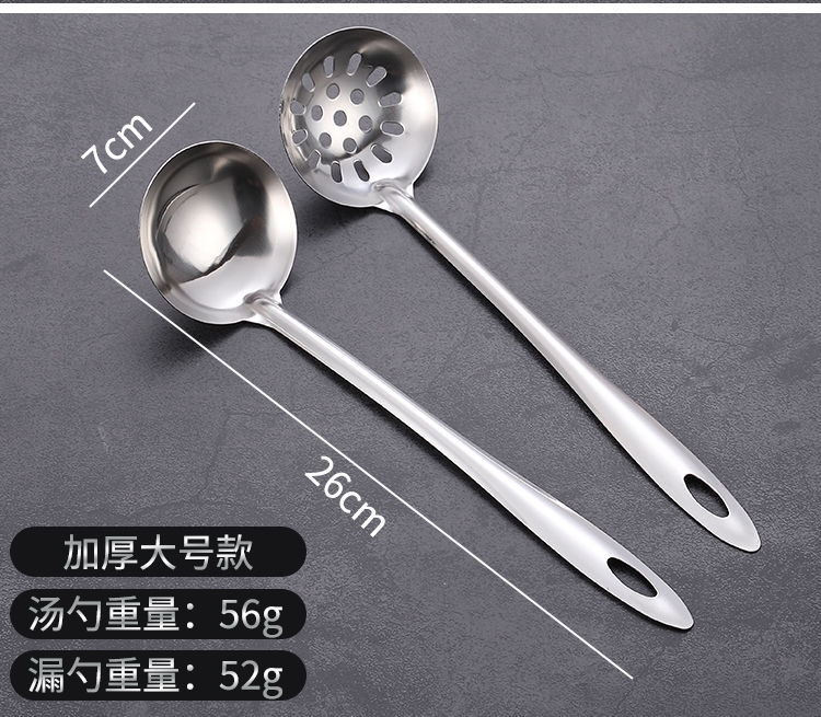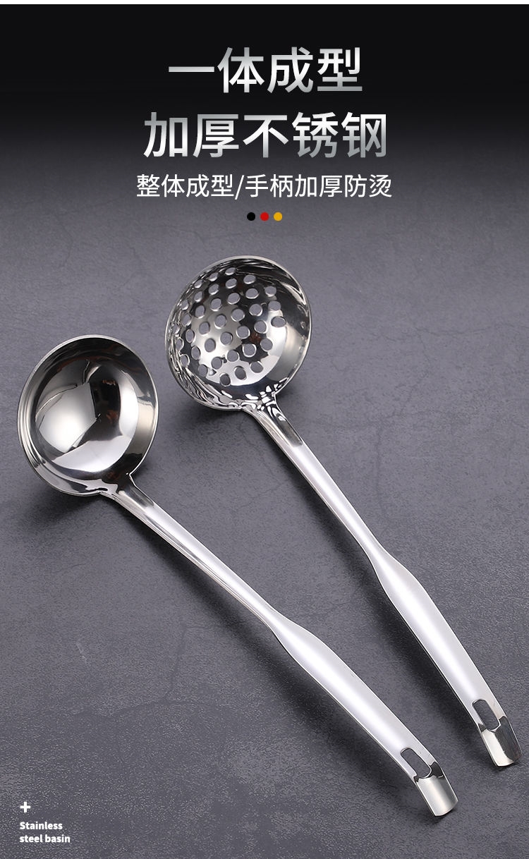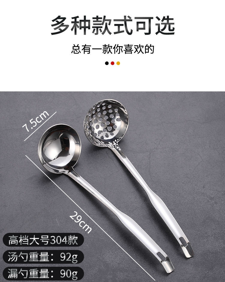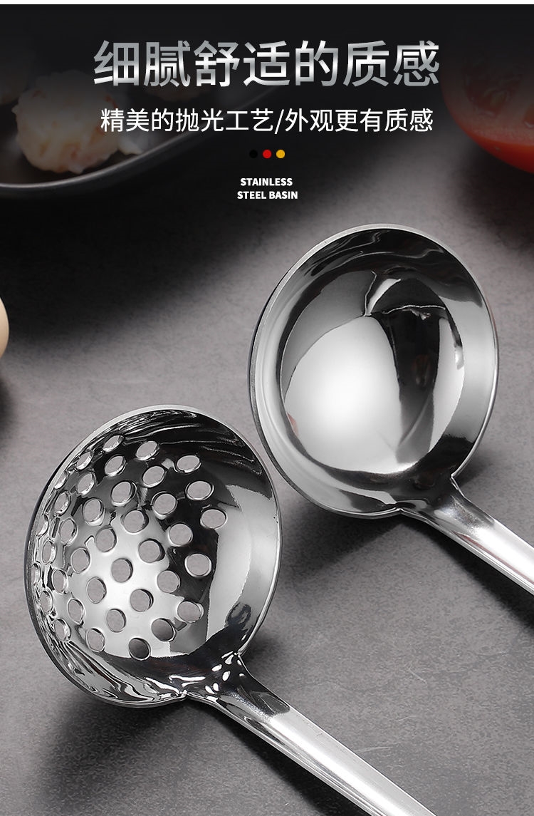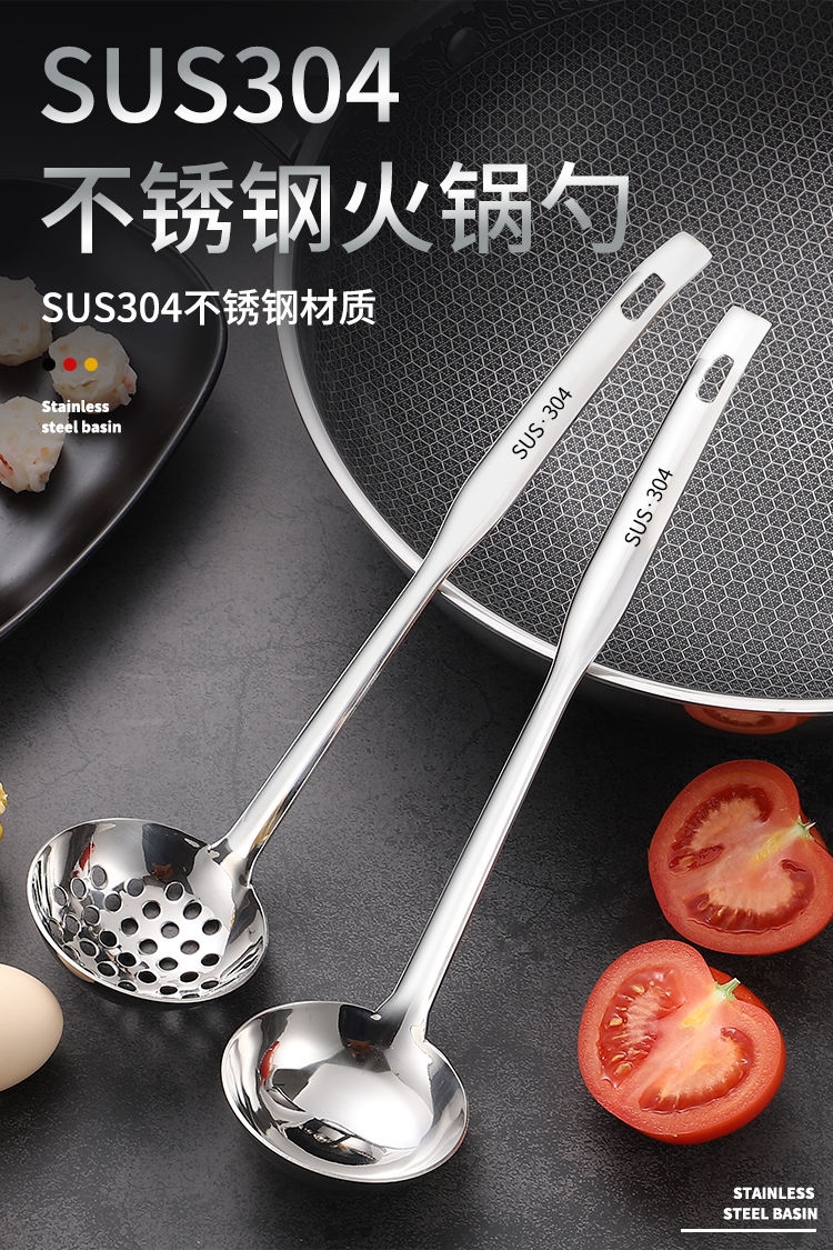 真304不锈钢火锅汤勺漏勺套装,终身生锈包退,一体成型,带挂耳。 好的美食还需要配合好精致的餐具享用哦~~~~