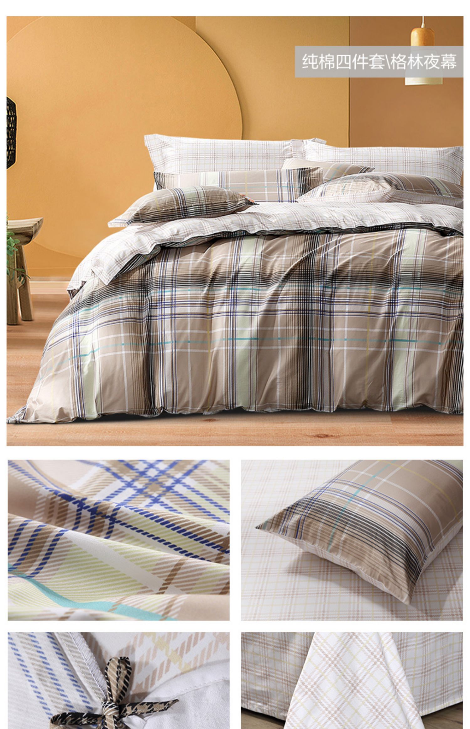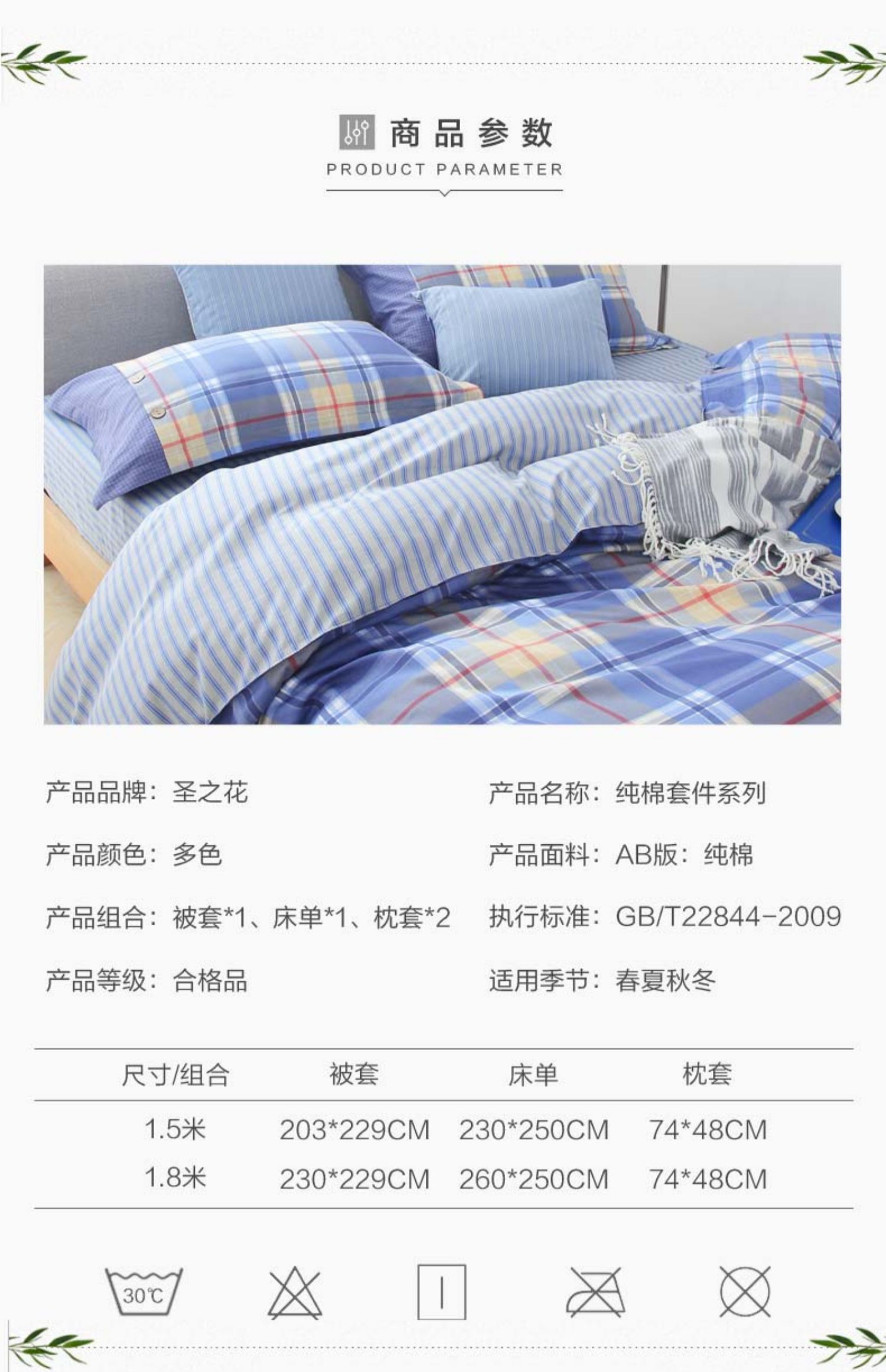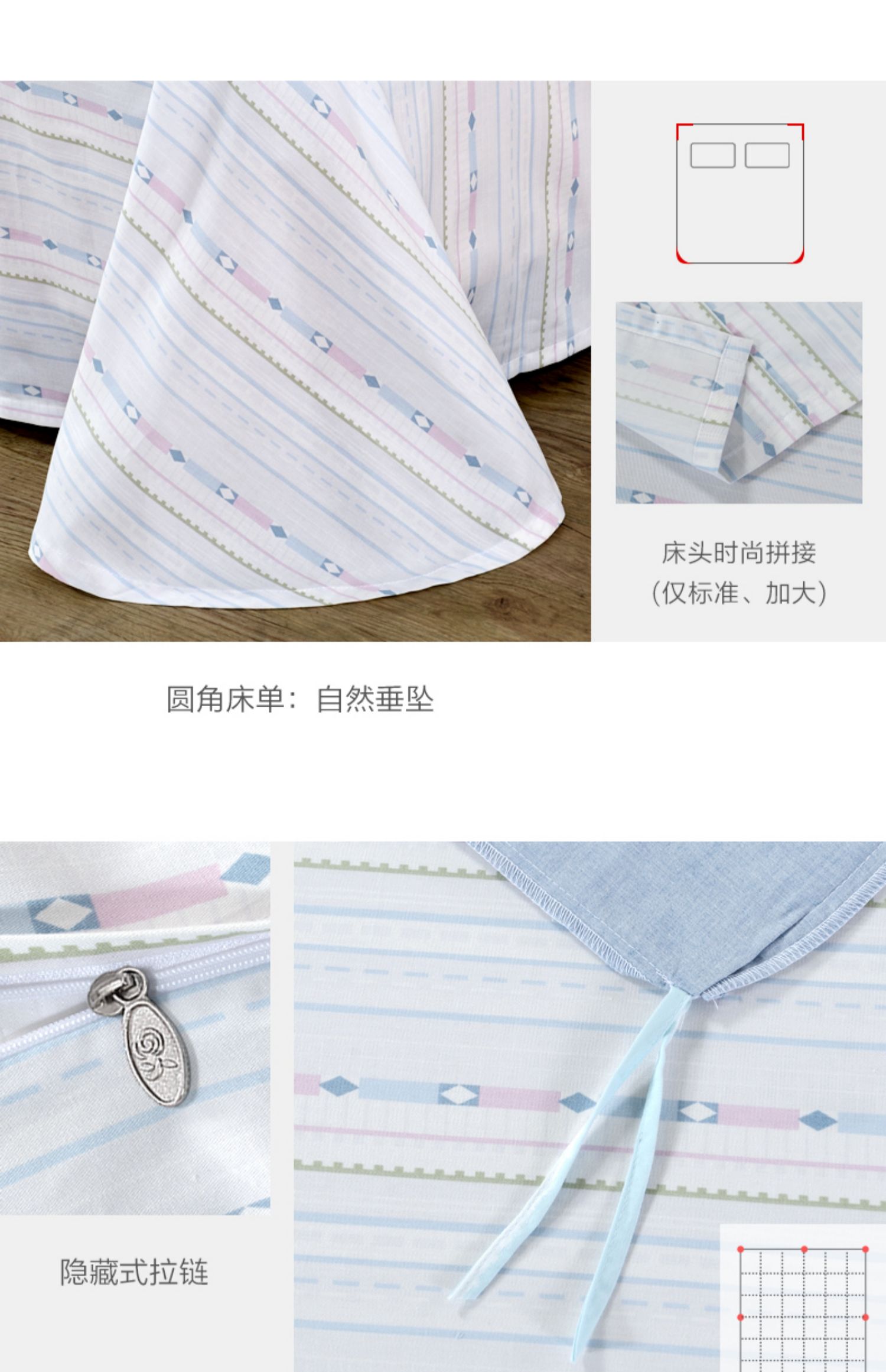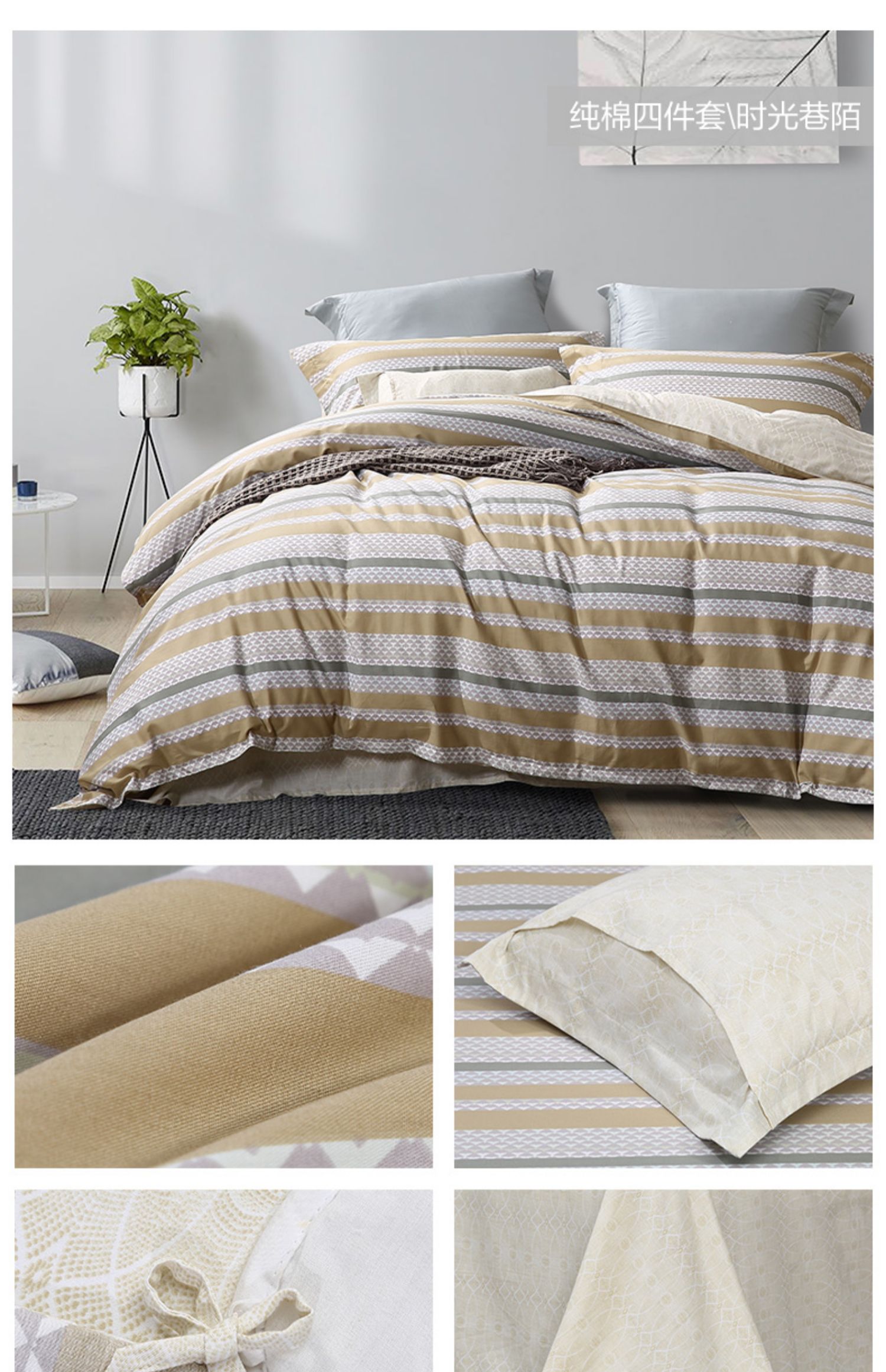 富安娜圣之花纯棉四件套,亲肤纯棉面料,触感细腻,条纹双面设计,色彩生活不褪色。严选质量,守护你的安全!