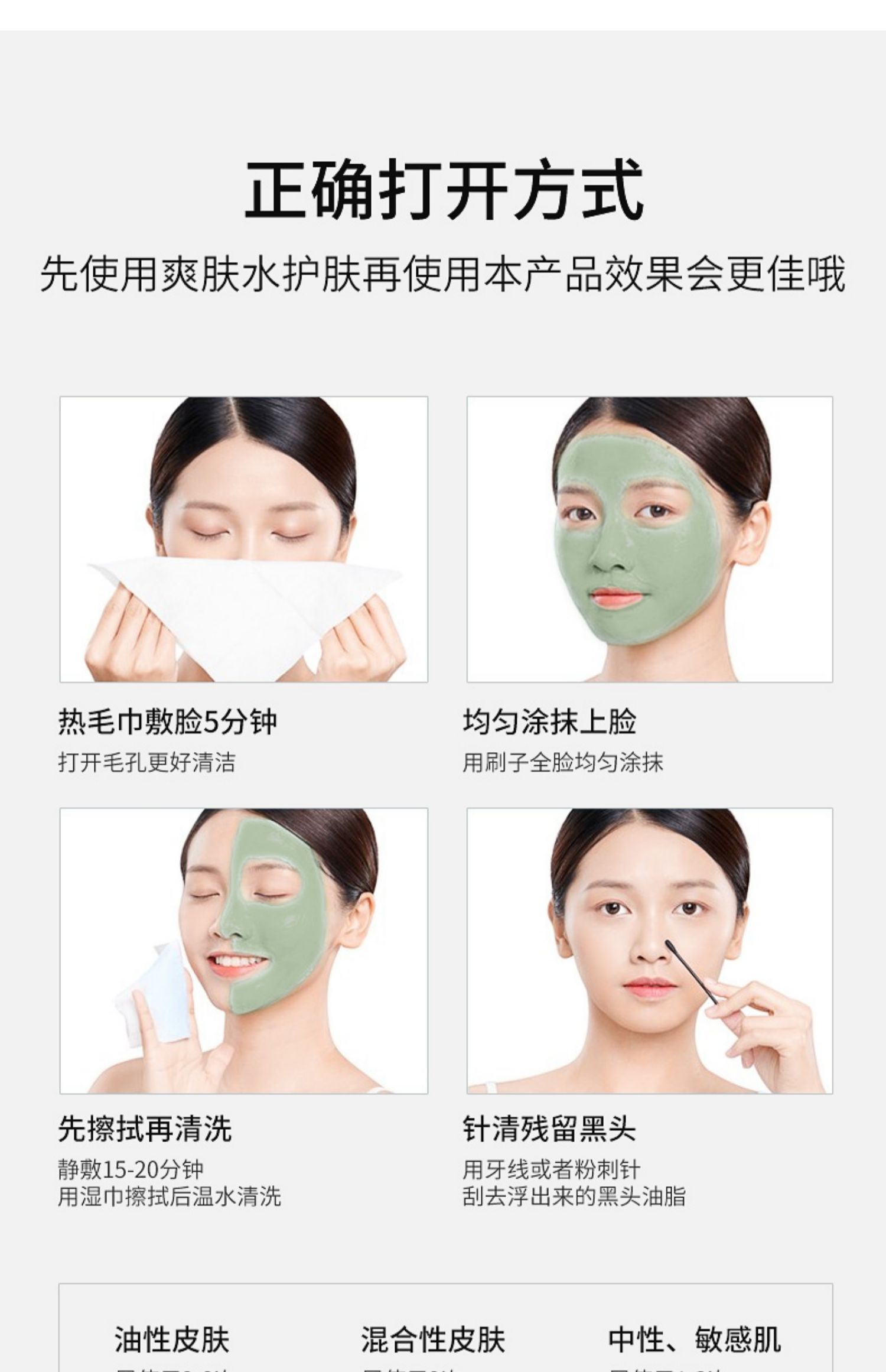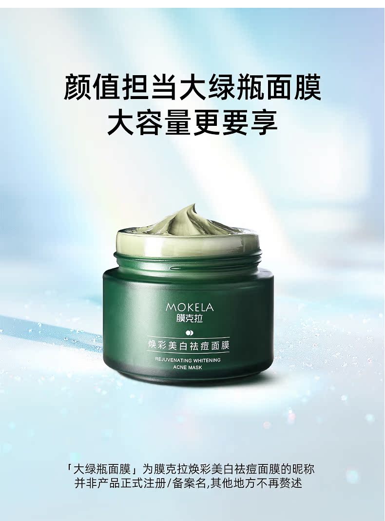 膜克拉旗舰店,3种保湿,12种修护氨基酸,深层清洁,淡化痘印!缓解黑头闭口,清爽控油,温和不刺激,干皮也能用的泥浆面膜货装!
