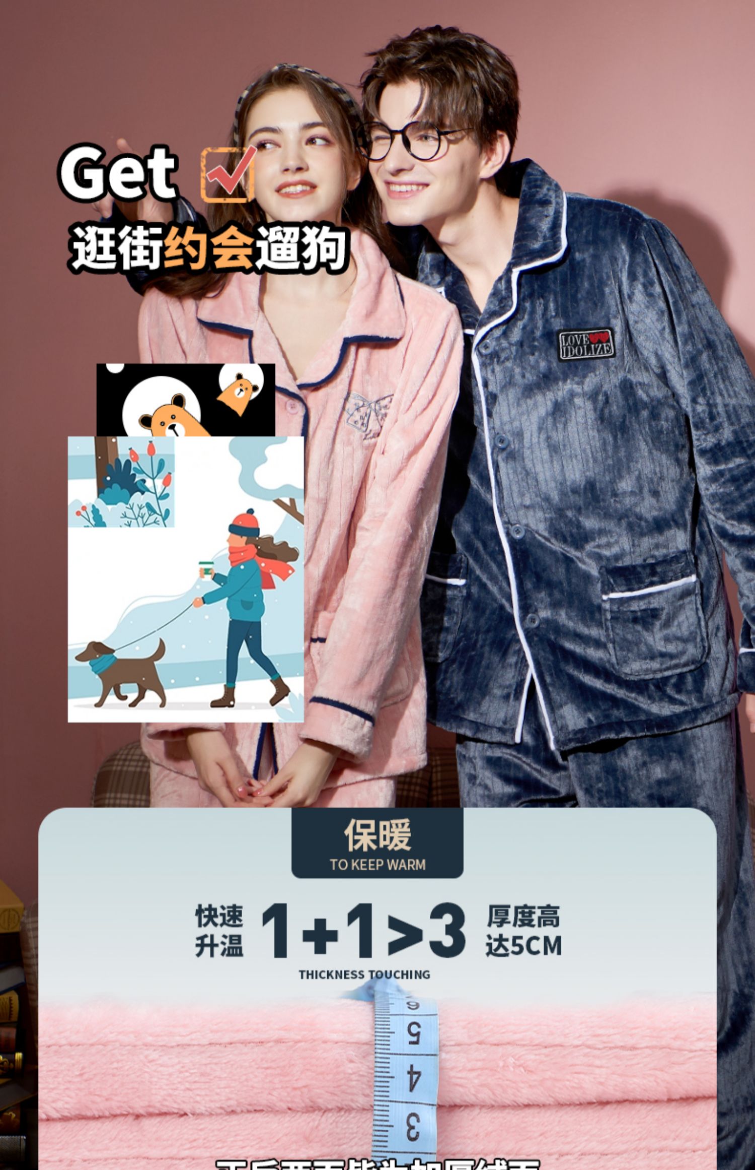 【赠运费险】寒冬居家穿,睡觉穿,遛狗穿不挨冻~雪俐加厚加绒情侣睡衣!男女多款任你挑,1套抢84!超划算~加厚双面绒,超细腻柔软触感,穿着贴肤,迅速暖和!