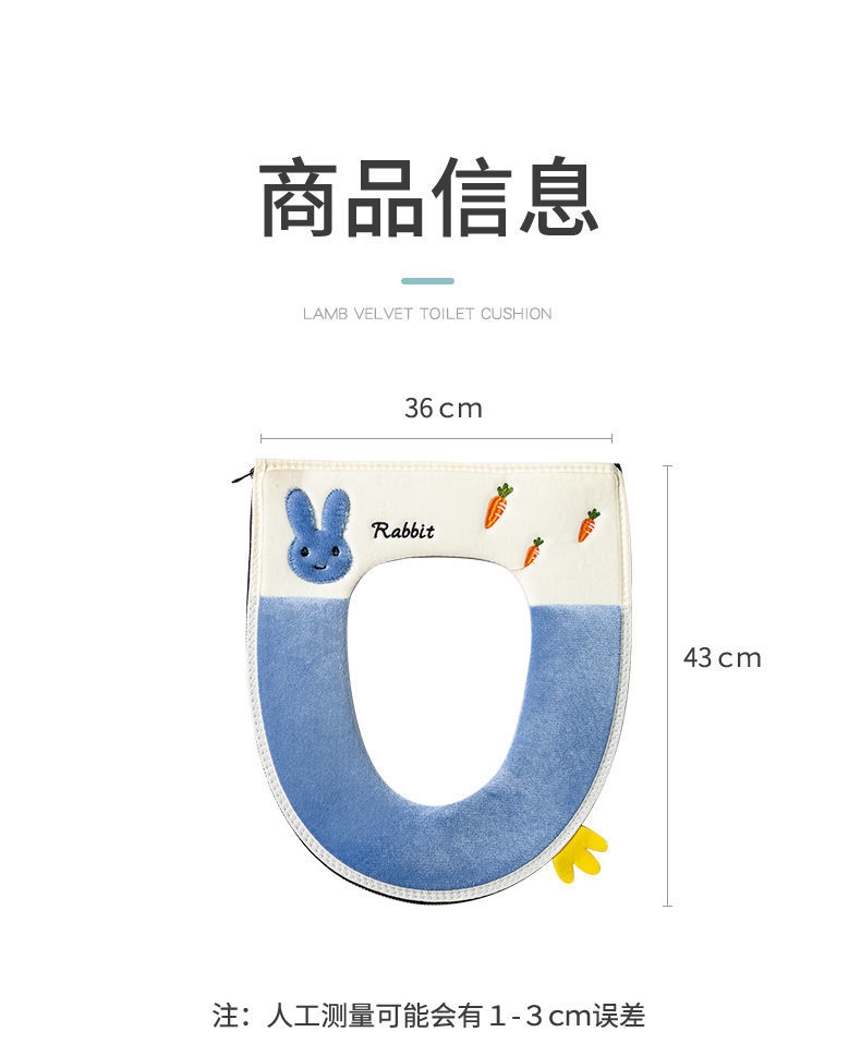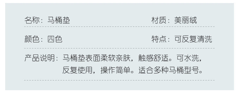 优选材质,亲肤体验健康卫生。不掉毛,不褪色防水,适用于各类型马桶上厕所pp不凉,给你暖心的呵护