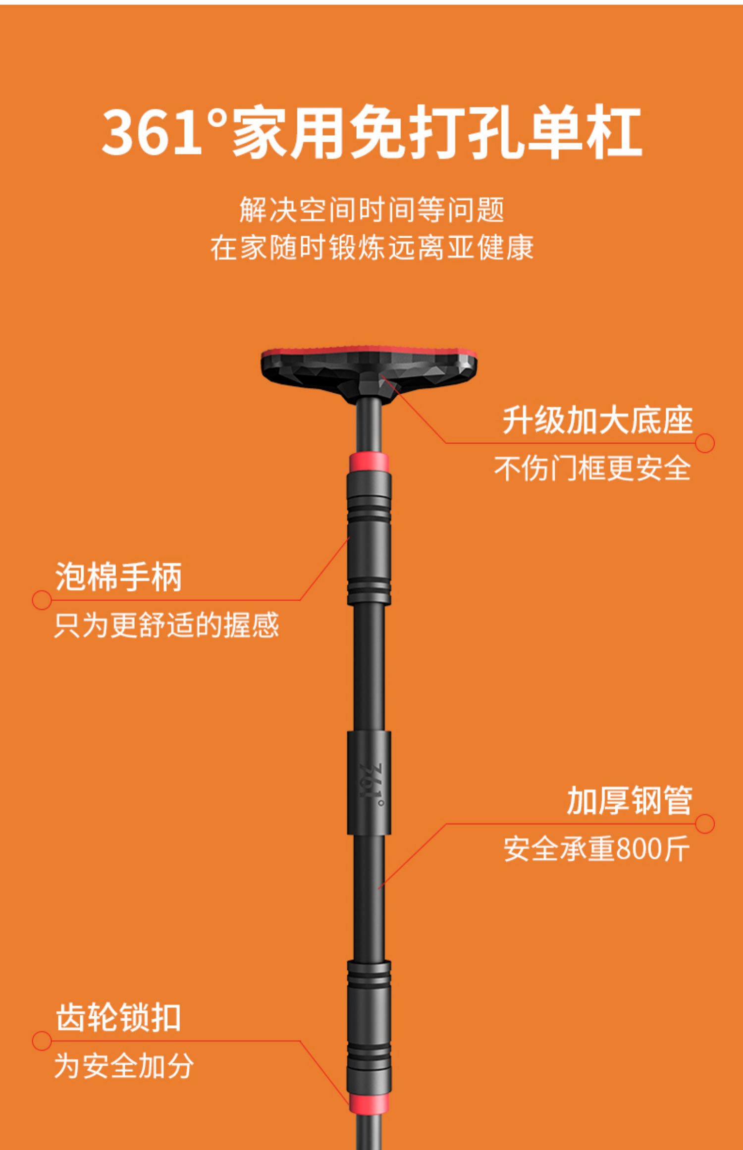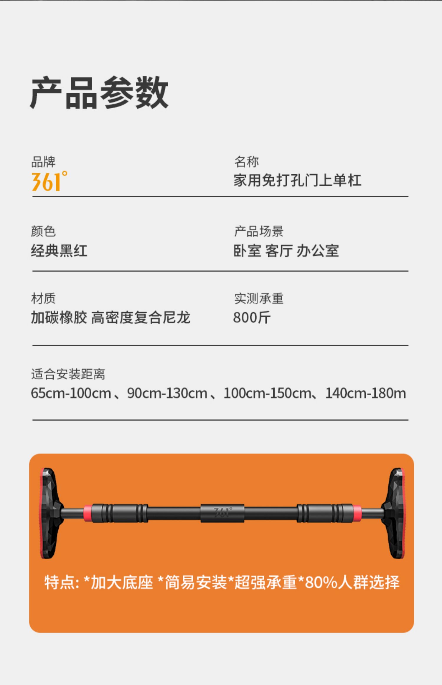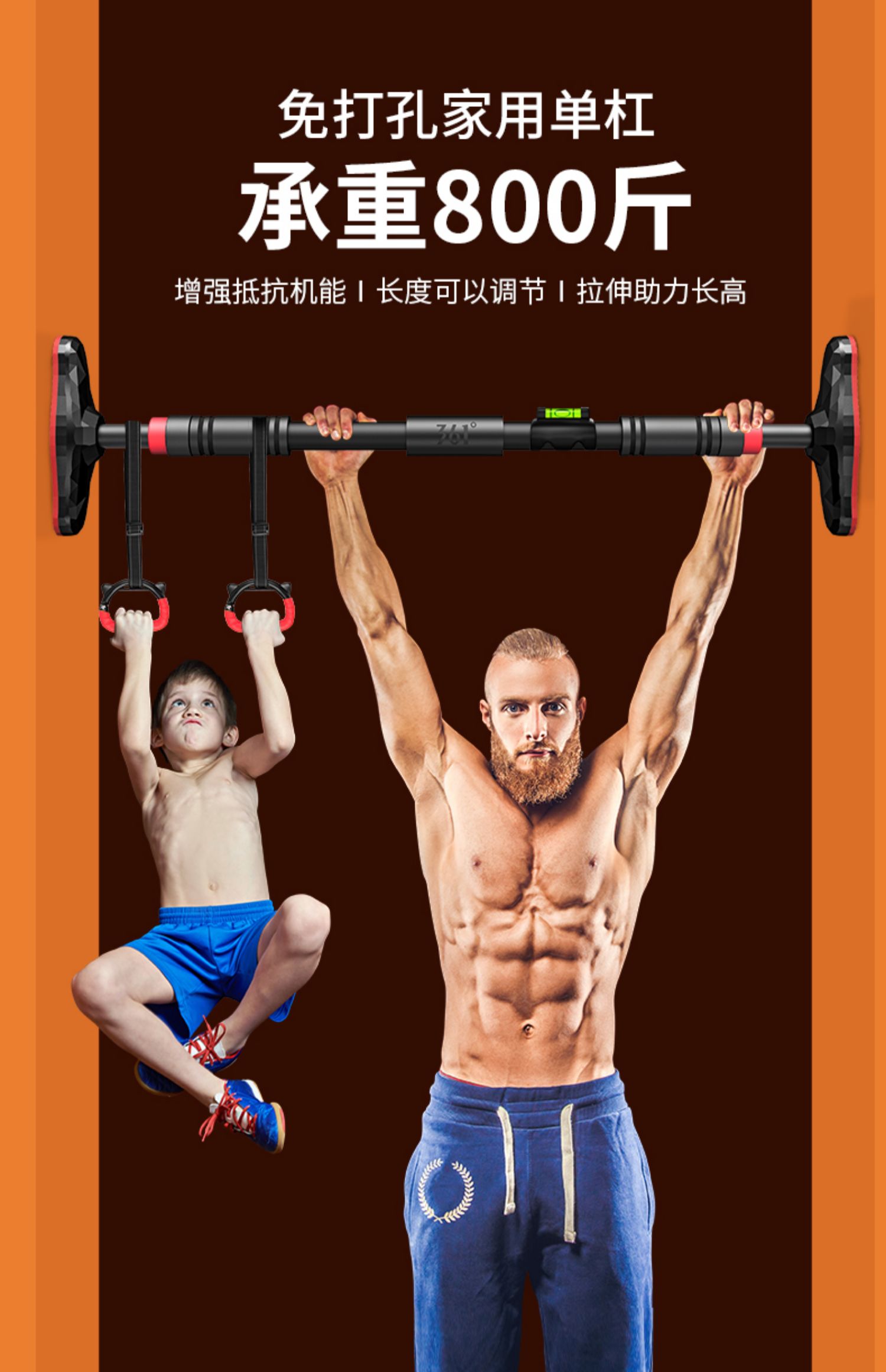 【免打孔,长短可调节,安装简便】361度家用单杠,室内引体向上,免打孔门上吊环,家庭墙体健身器材,多款可选。