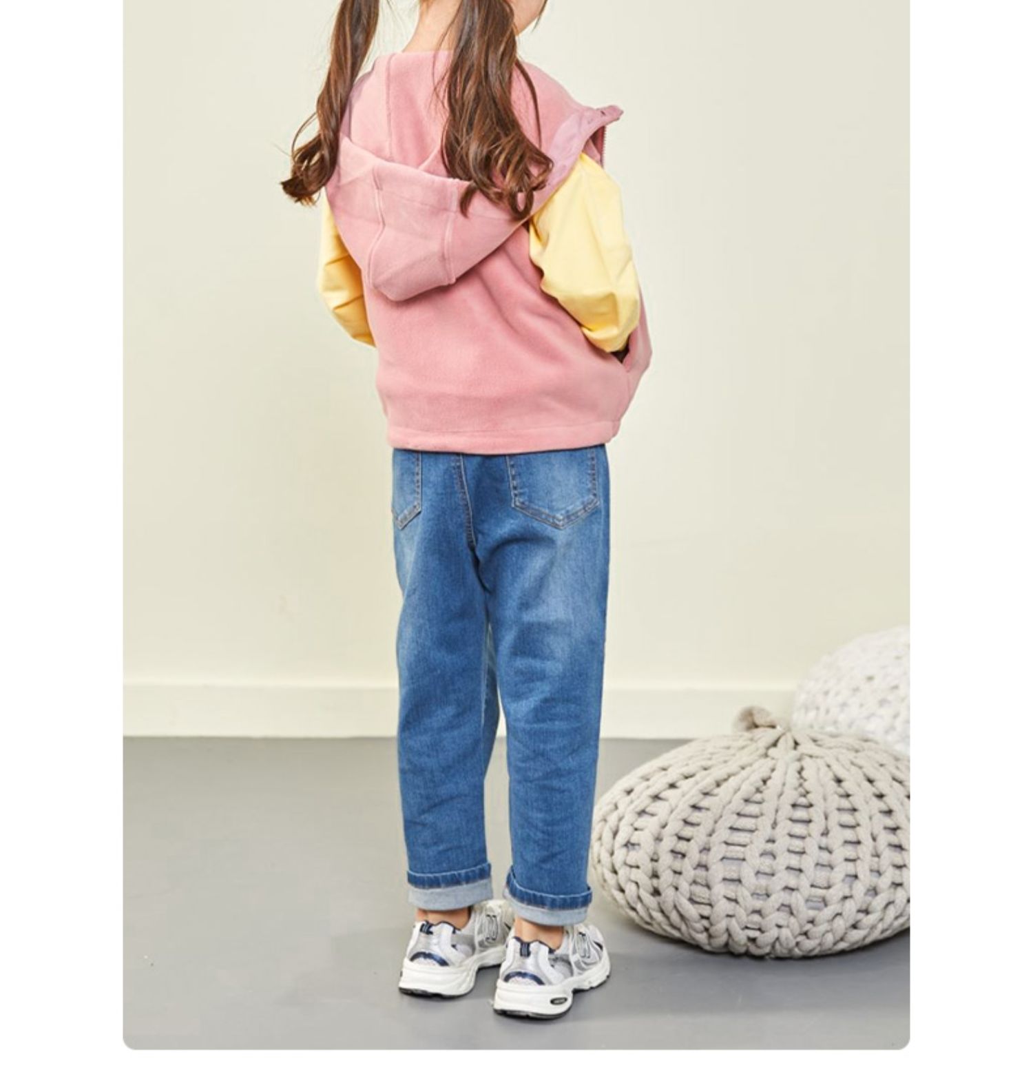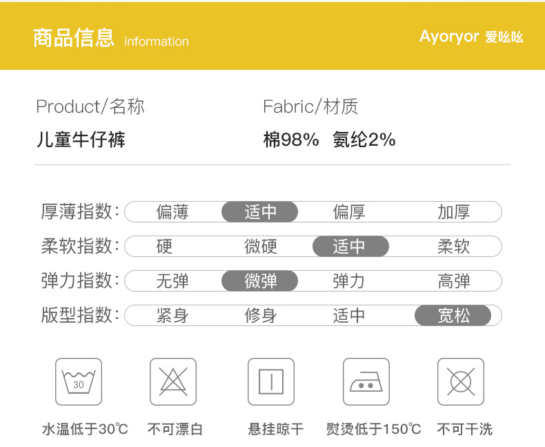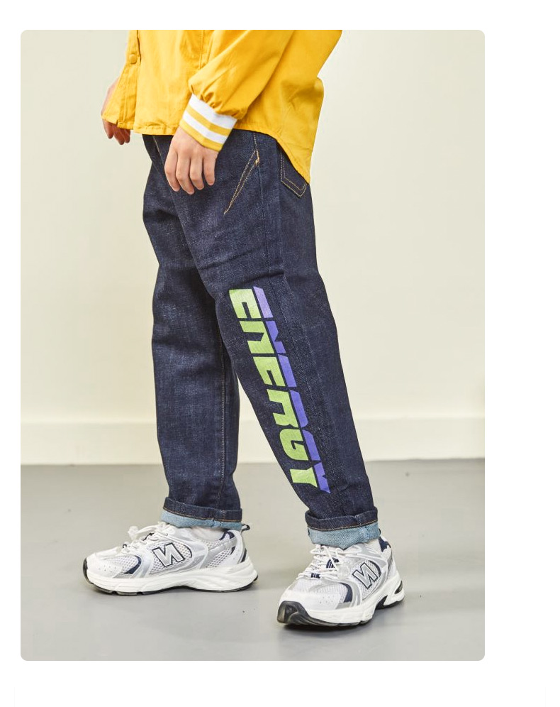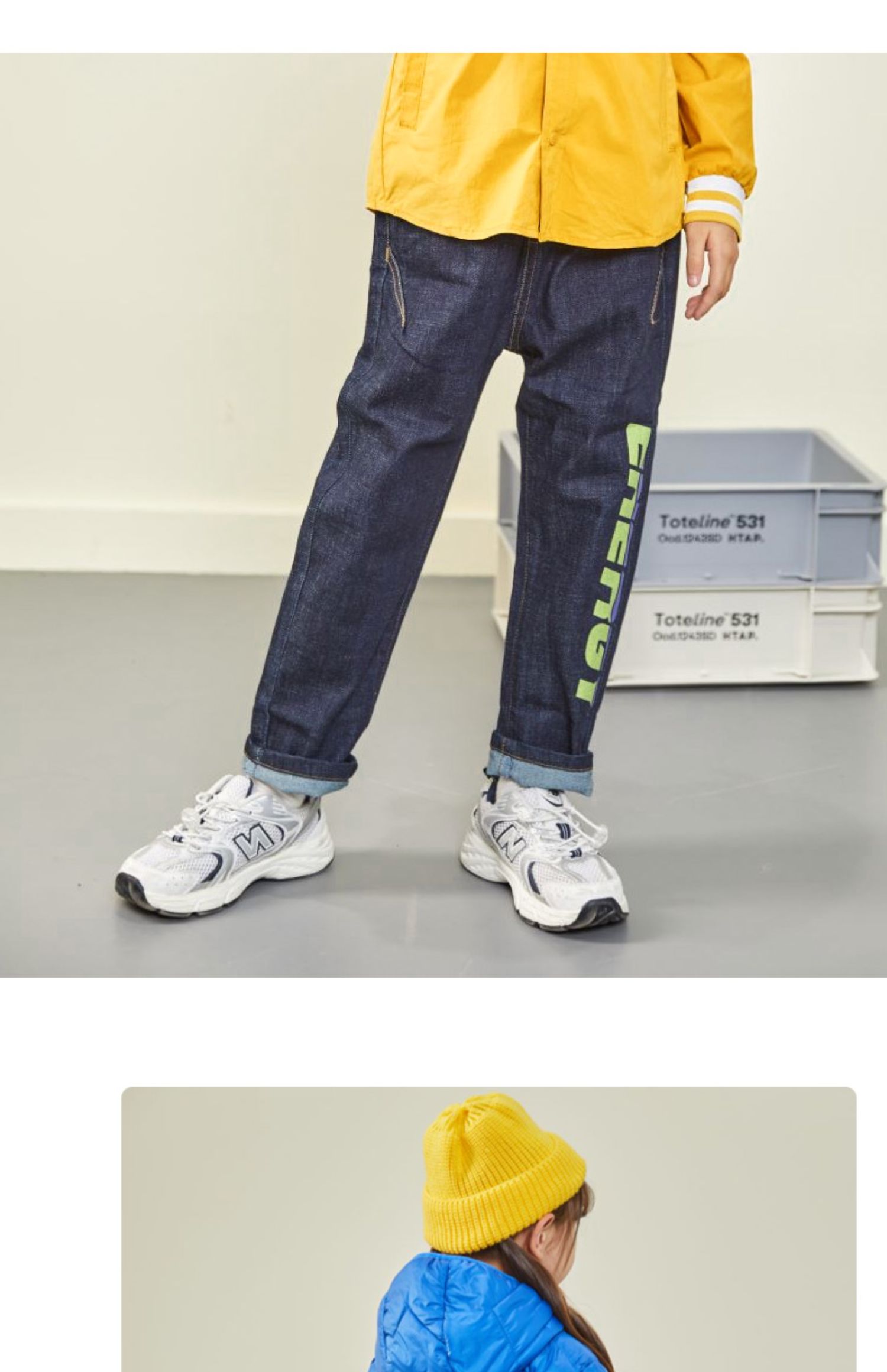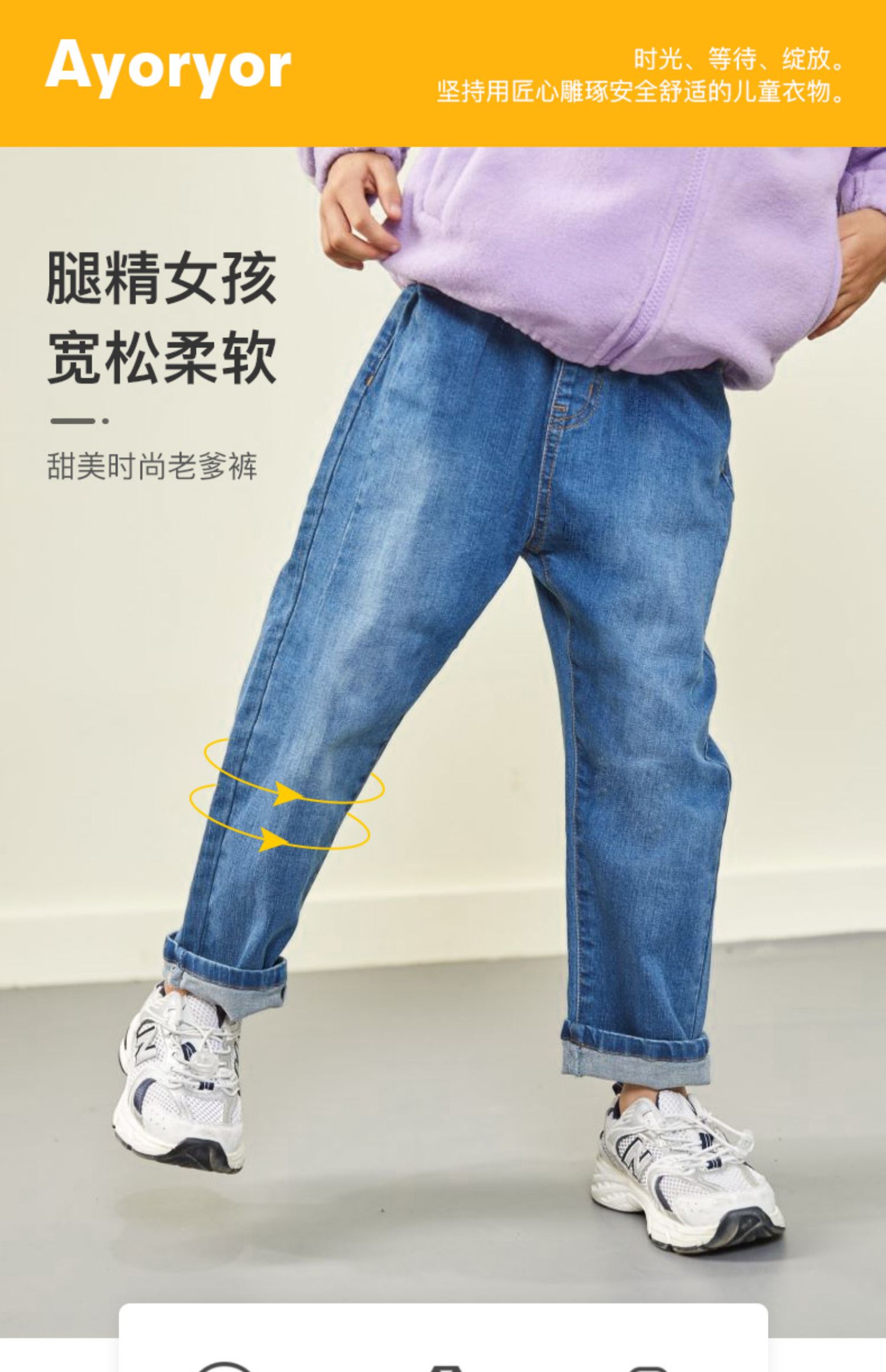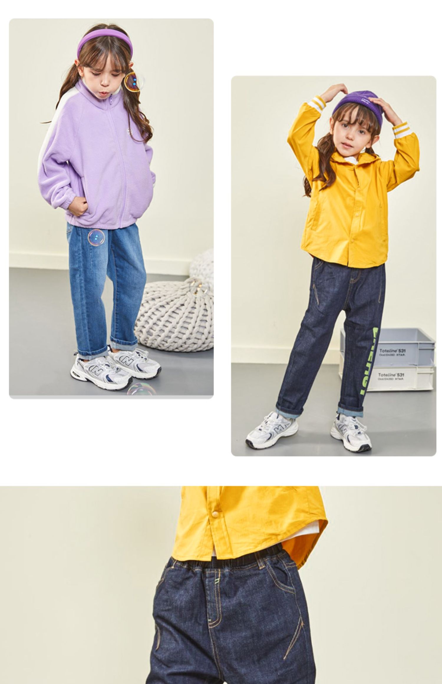 爱吆吆春季儿童牛仔长裤,精选优质纯棉面料,上身柔软舒适透气,水洗不褪色,松紧裤腰不勒人,宽松裤型,有肉宝贝也可以穿