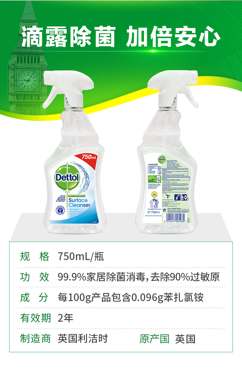 【拍两件,满2件8折,购买更实惠】滴露杀菌消毒喷雾750ml*2,多用途家用、室内、厨房、玩具消毒液,非84酒精。家居消毒,专业杀菌用滴露~