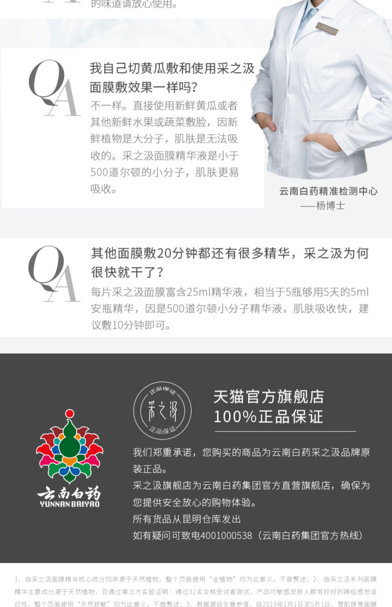 【云南白药】采之汲补水保湿面膜敏感肌女舒缓敏感水润焕亮面膜囤货装20片,药企品质,天然小分子,植物精粹易吸收,修护敏感,补水保湿【退货运费险】