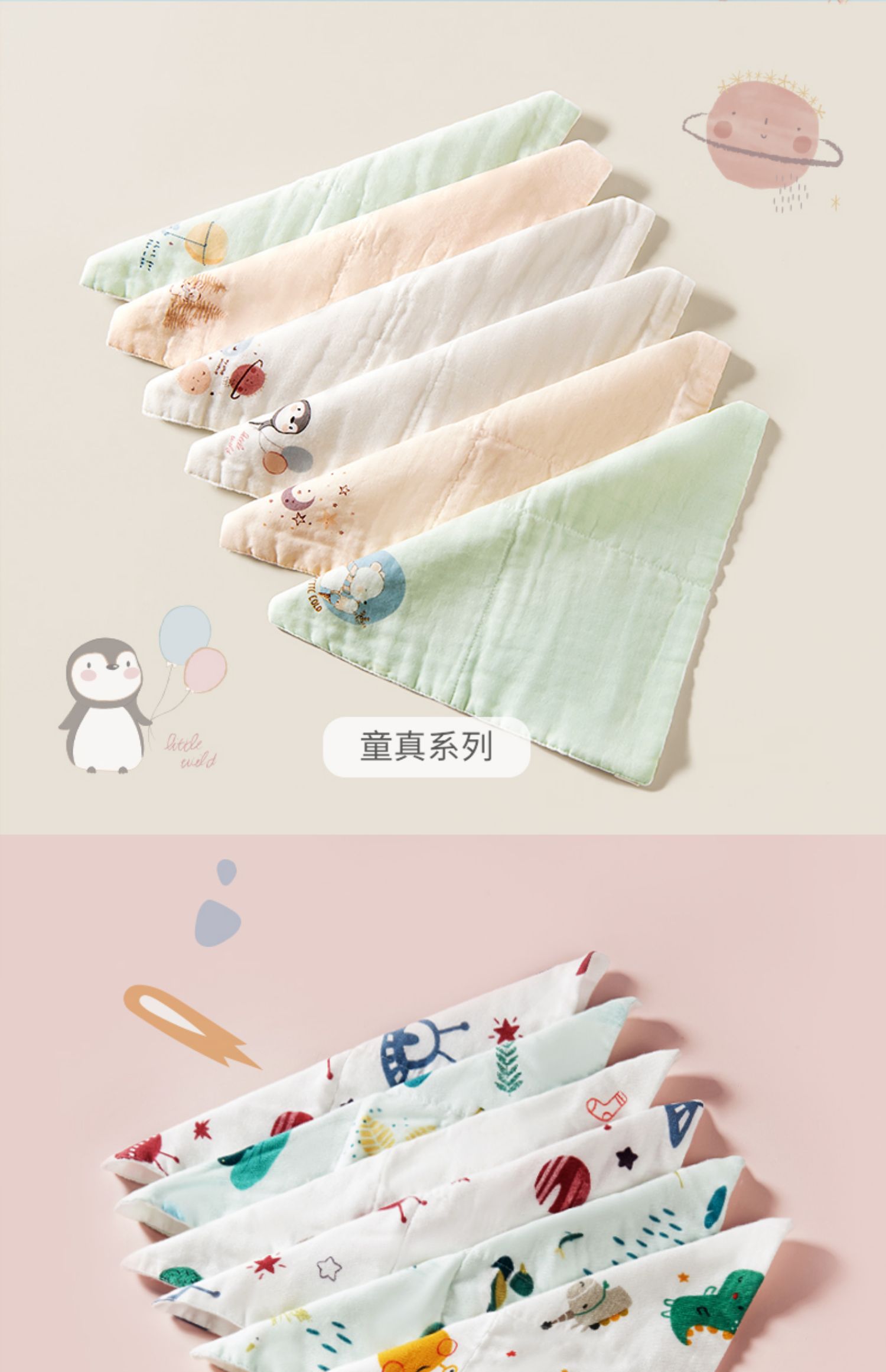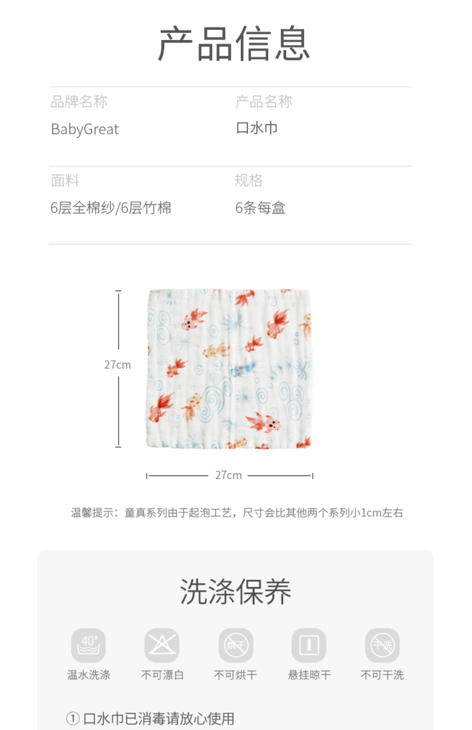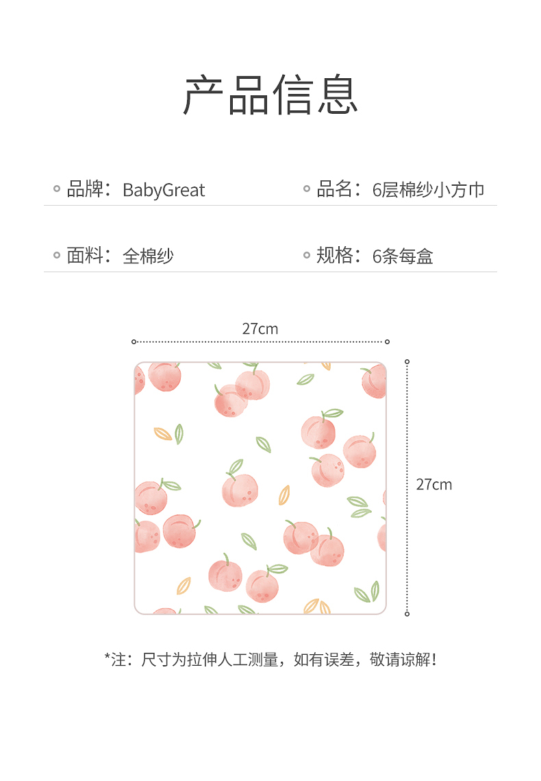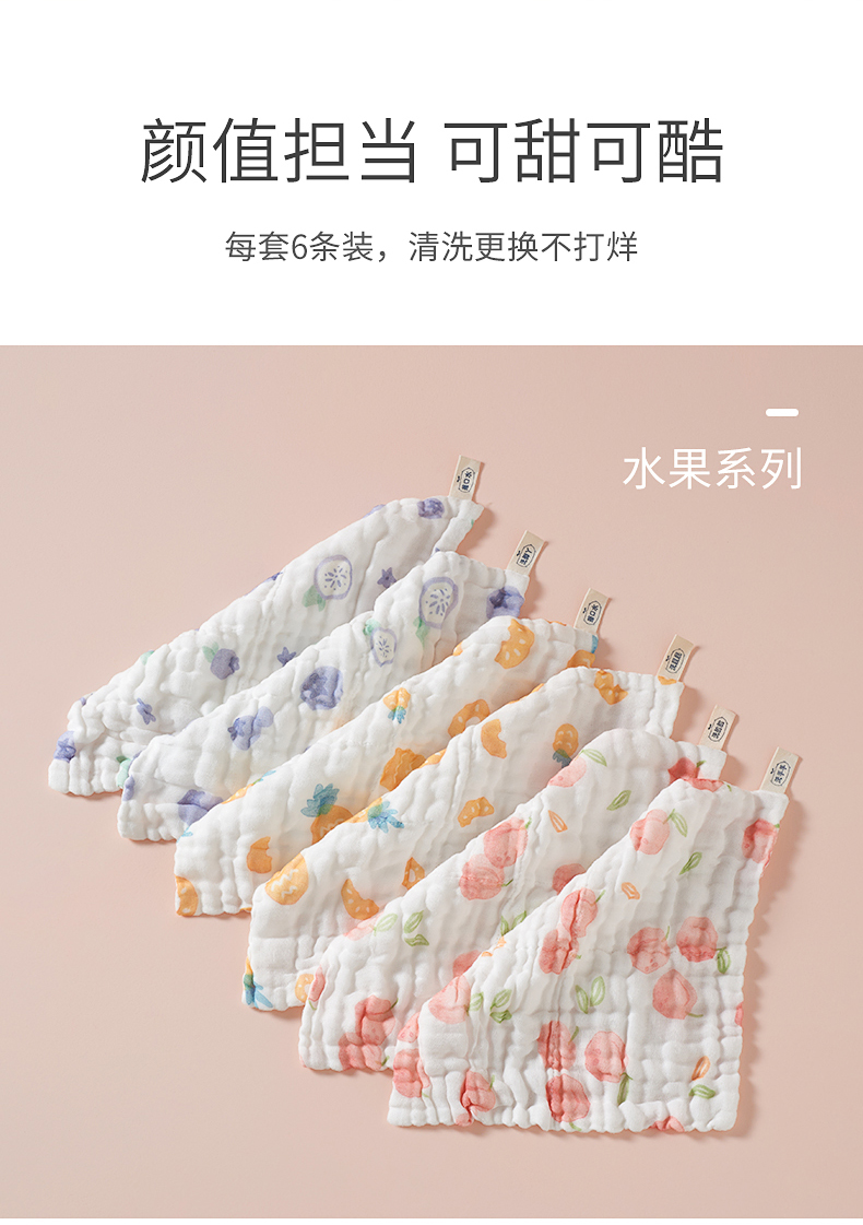 宝宝手帕小方巾,6层纯棉,升级抗菌款,A类标准,透气柔软亲肤,吸水性好,触感柔滑不易掉毛,不含荧光剂,亲和肌肤,超强透气性,呵护宝宝柔嫩肌肤。