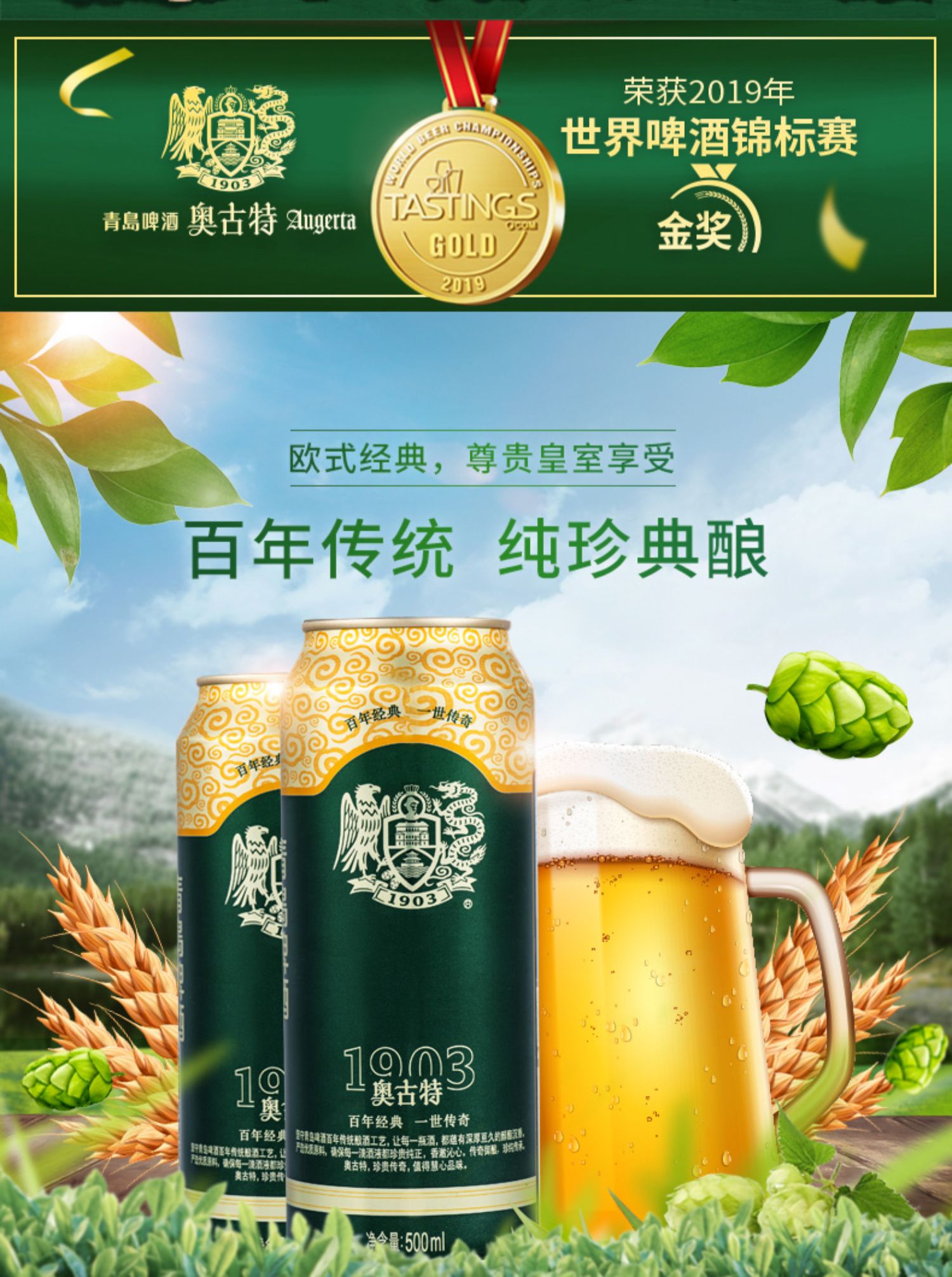 【三八女神节跨店满减】【两件八五折】【买就送大白鲨*12罐】青岛啤酒奥古特500ml*36罐,百年酵母,传世麦香,国粹精品,风靡全球,畅想健康,众多好评,好口碑值得信赖~